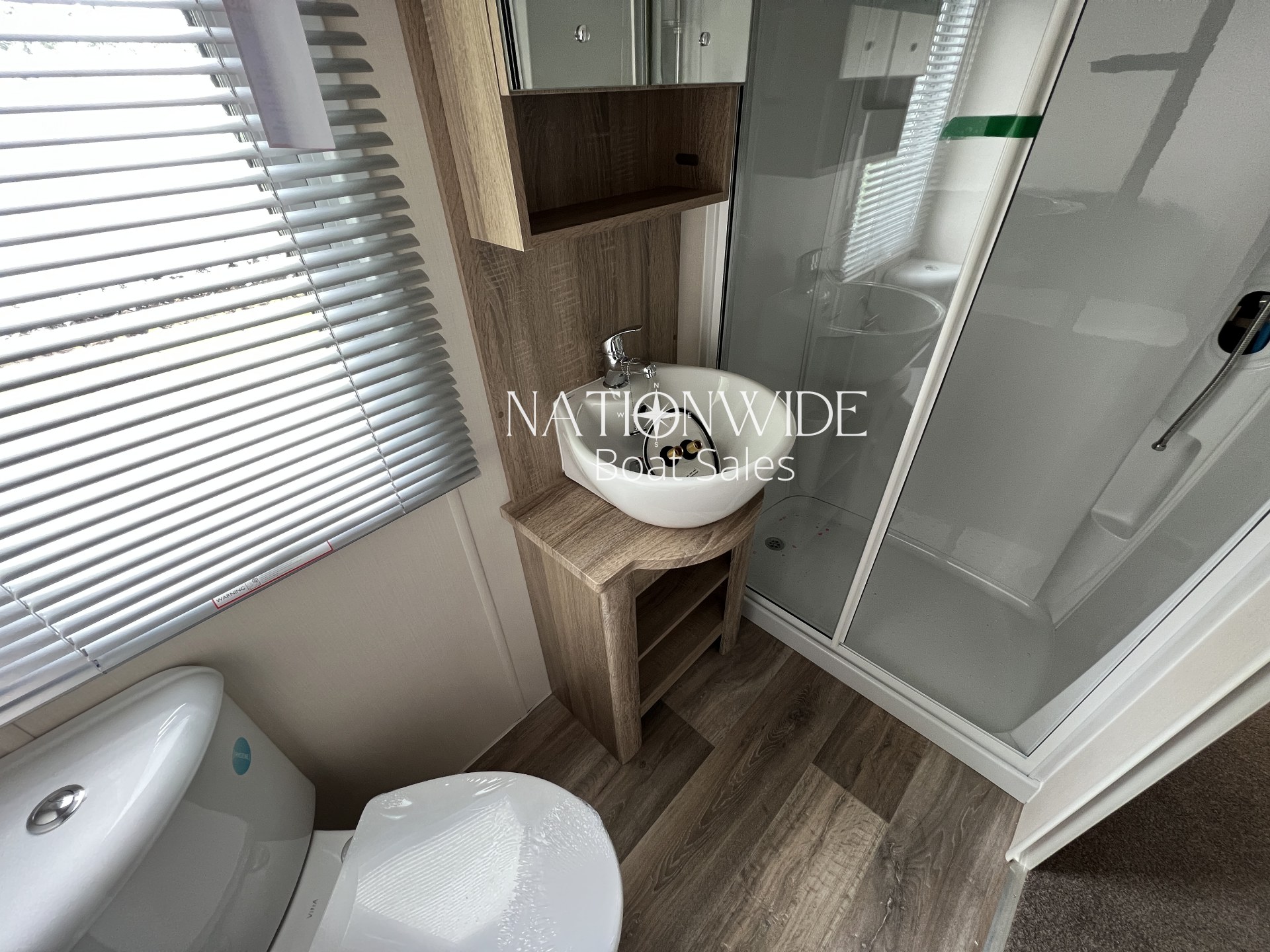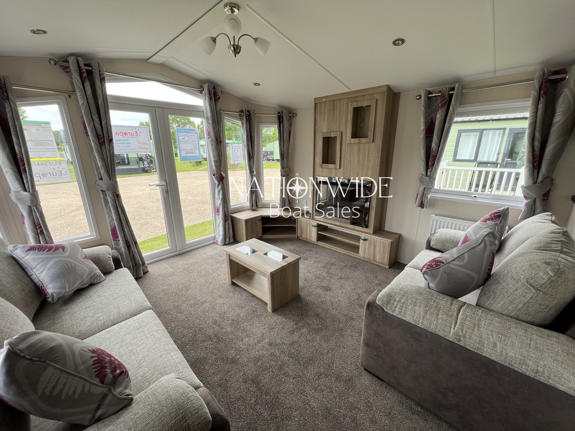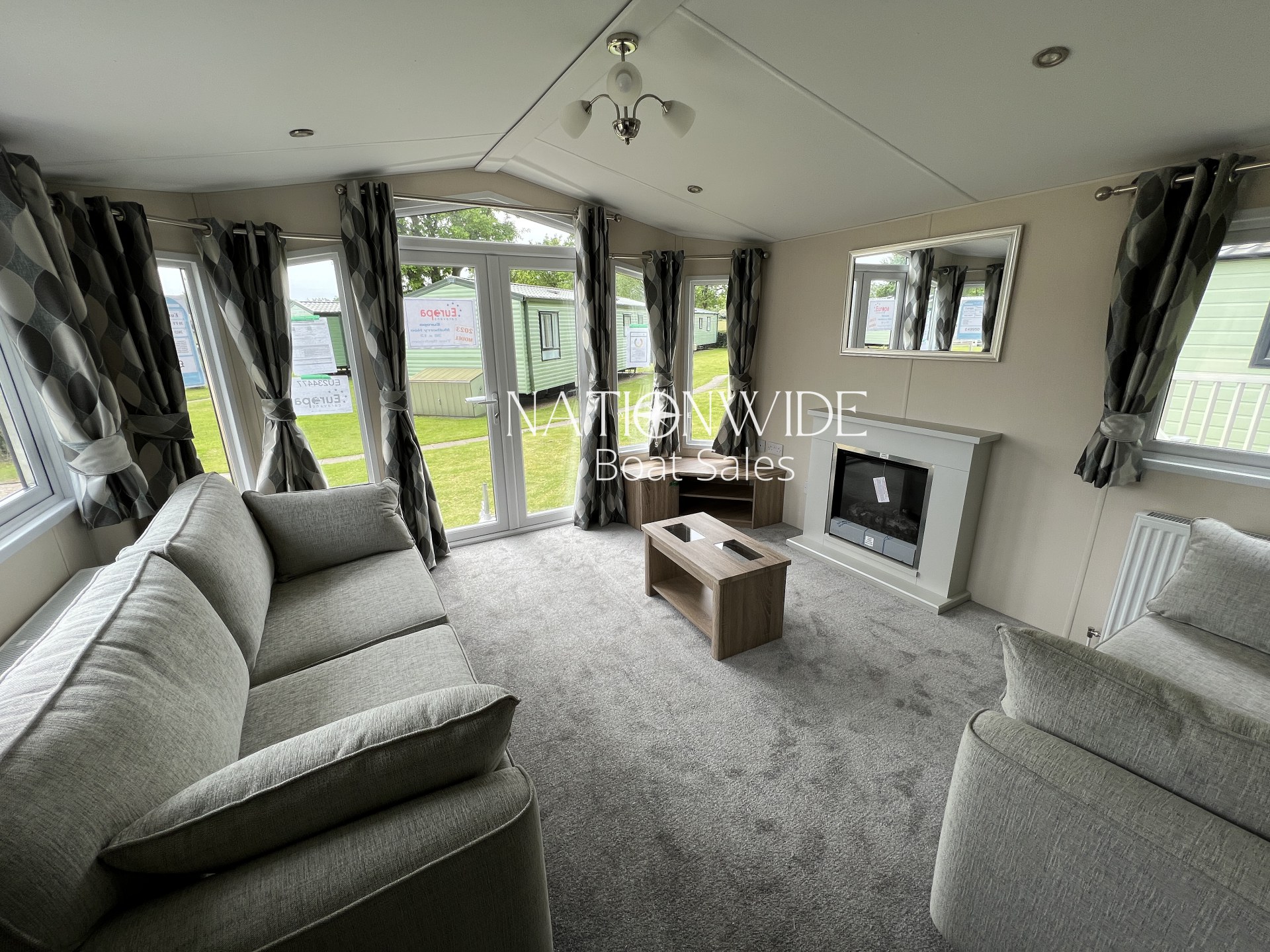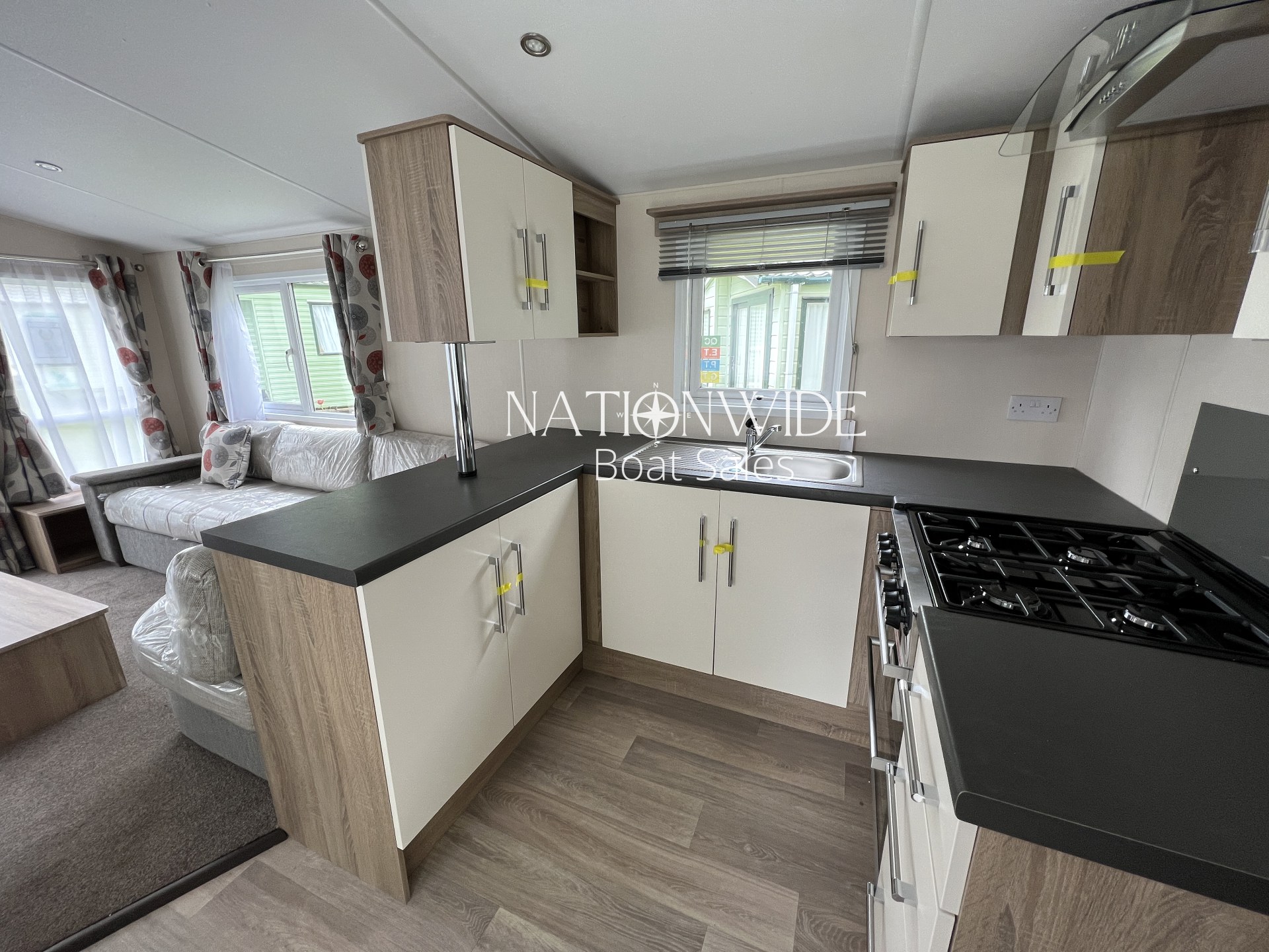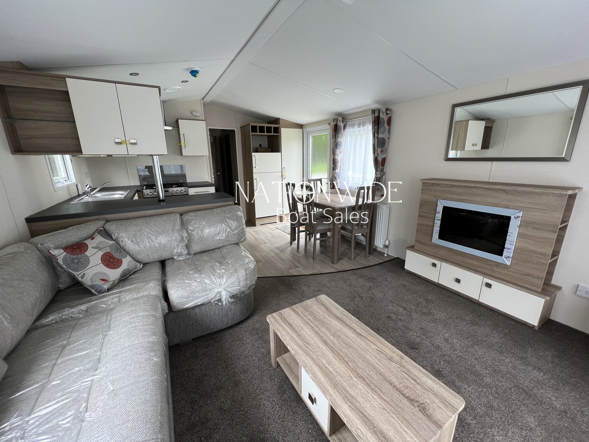 With the benefit of double glazing and central heating along with outlook doors. Mulberry Neo offers a contemporary design with the latest colour scheme with graphite windows. The kitchen area boasts an integrated fridge/freezer, integrated microwave and a cooker.