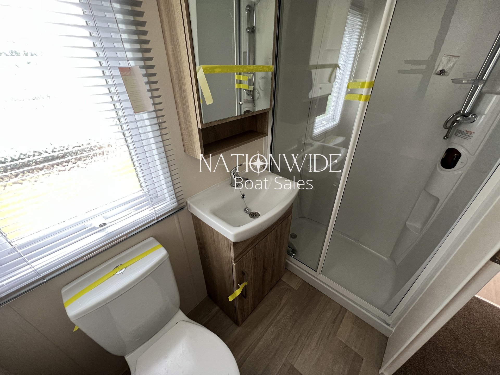 Offering 2 bedrooms, the Master bedroom provides ample storage along with a vanity area, master bed and an ensuite toilet with vanity basin. The second bedroom provides 2 single bunks and ample storage. Within the bathroom we can find a toilet, vanity basin and shower.
