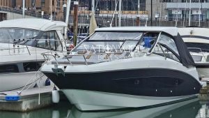 Say hello to 'Ava Louise', a pilot edition of the Beneteau Flyer 10. She's powered by two Mercury Verado V8 four-stroke engines, boasting 300HP. This means she can reach speeds up to a thrilling 40 knots, with a comfortable cruising speed of 22 knots.