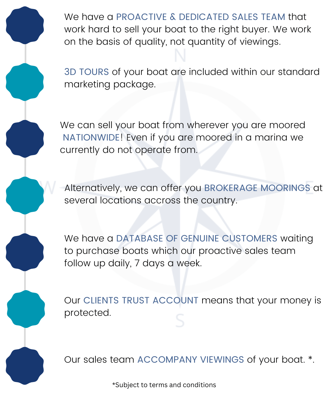 We have a PROACTIVE & DEDICATED SALES TEAM that work hard to sell your boat to the right buyer. We work on the basis of quality, not quantity of viewings.