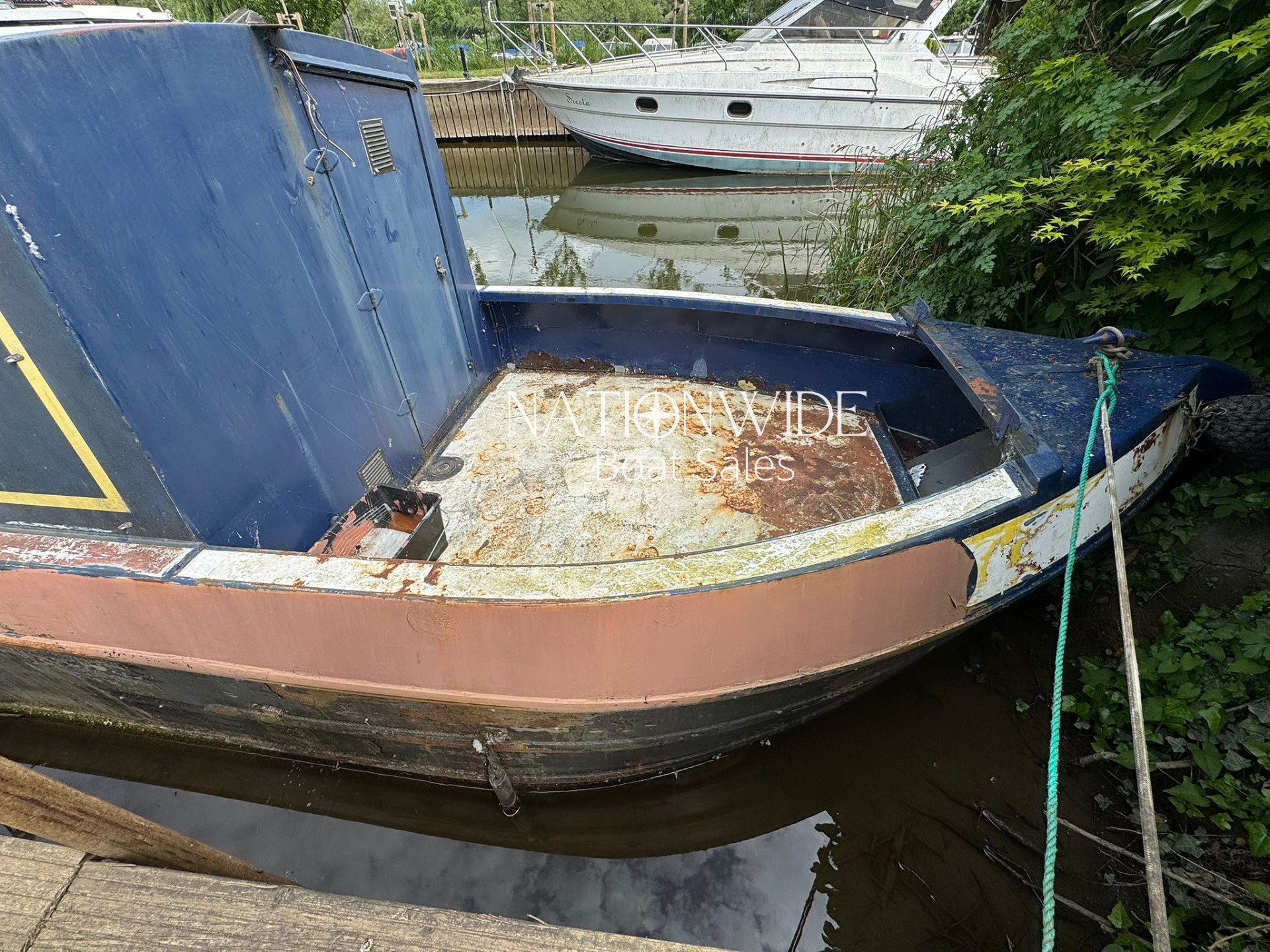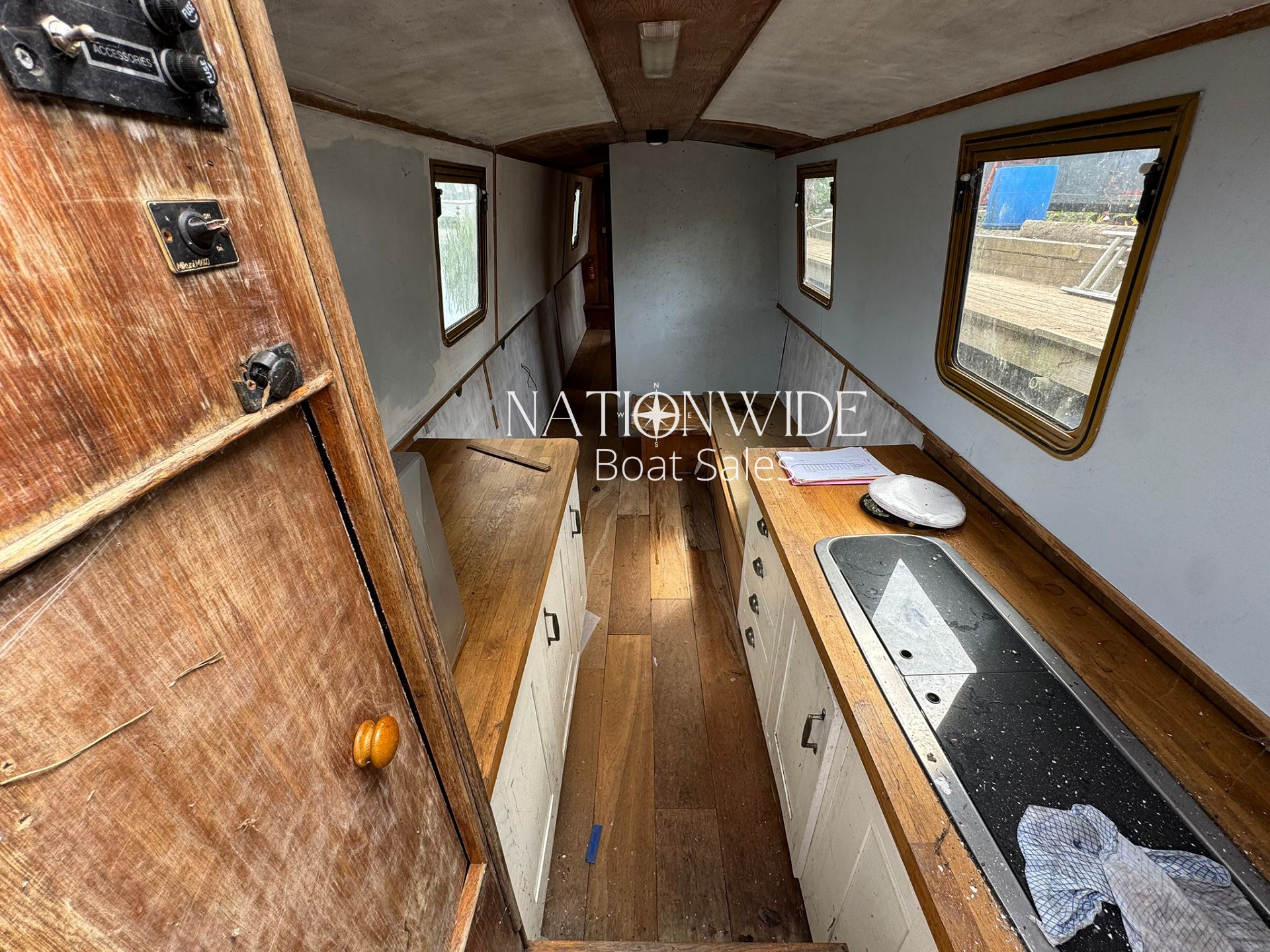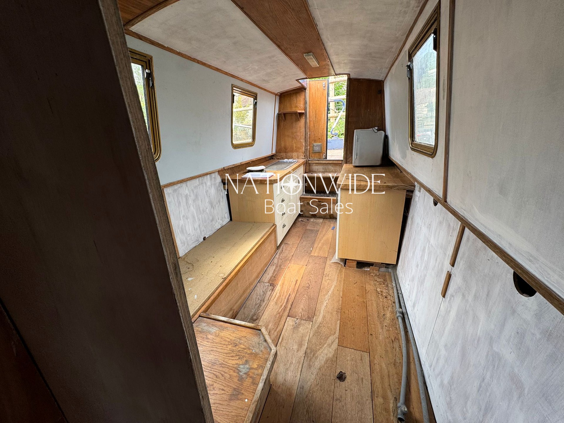 The interior is ready for a complete refit. There is space for a bathroom to be reinstalled, and the existing seating area can convert to a bed. The woodwork needs tidying and varnishing, and the exterior requires a full repaint and blacking, all of which is reflected in the price.