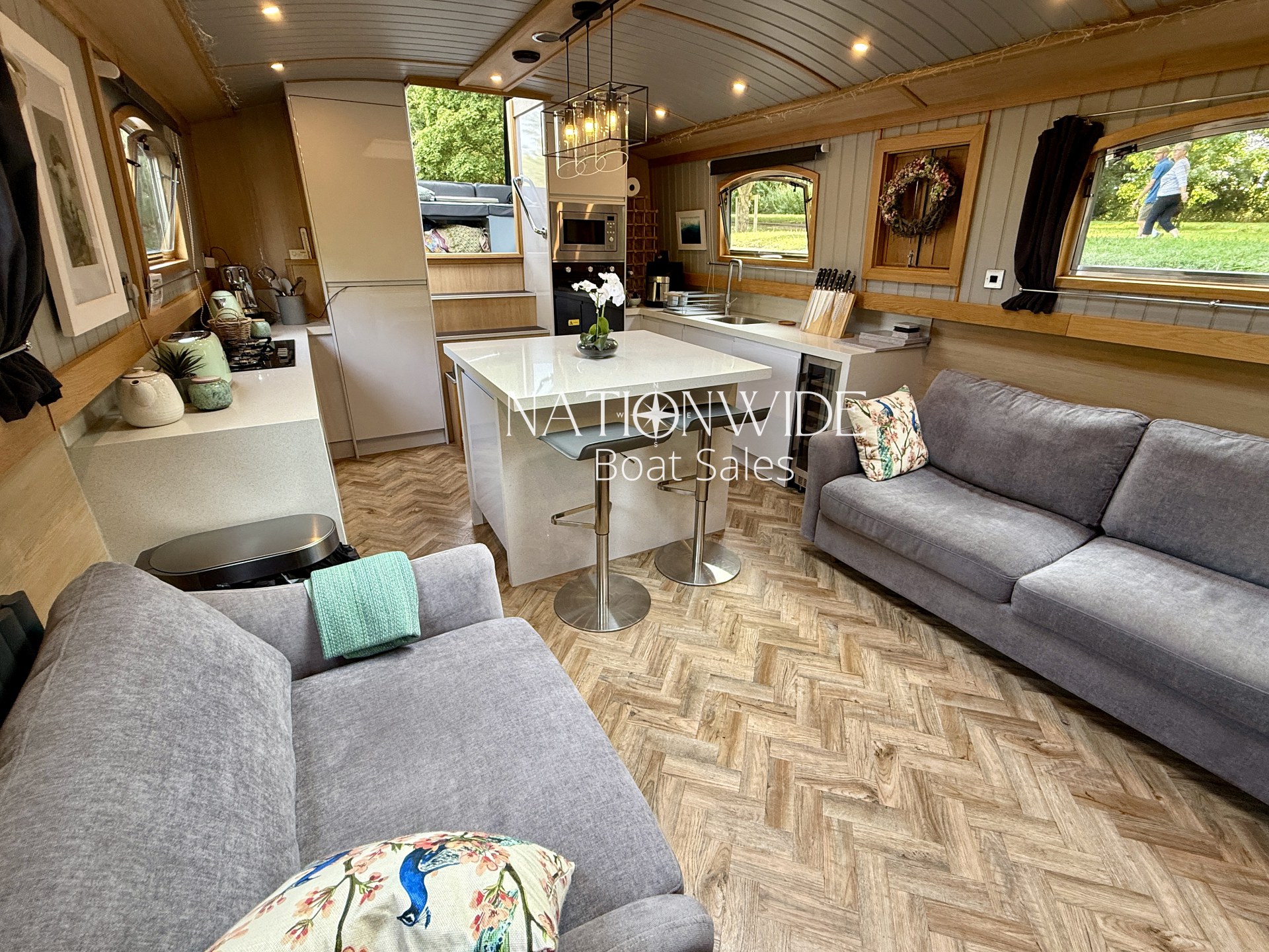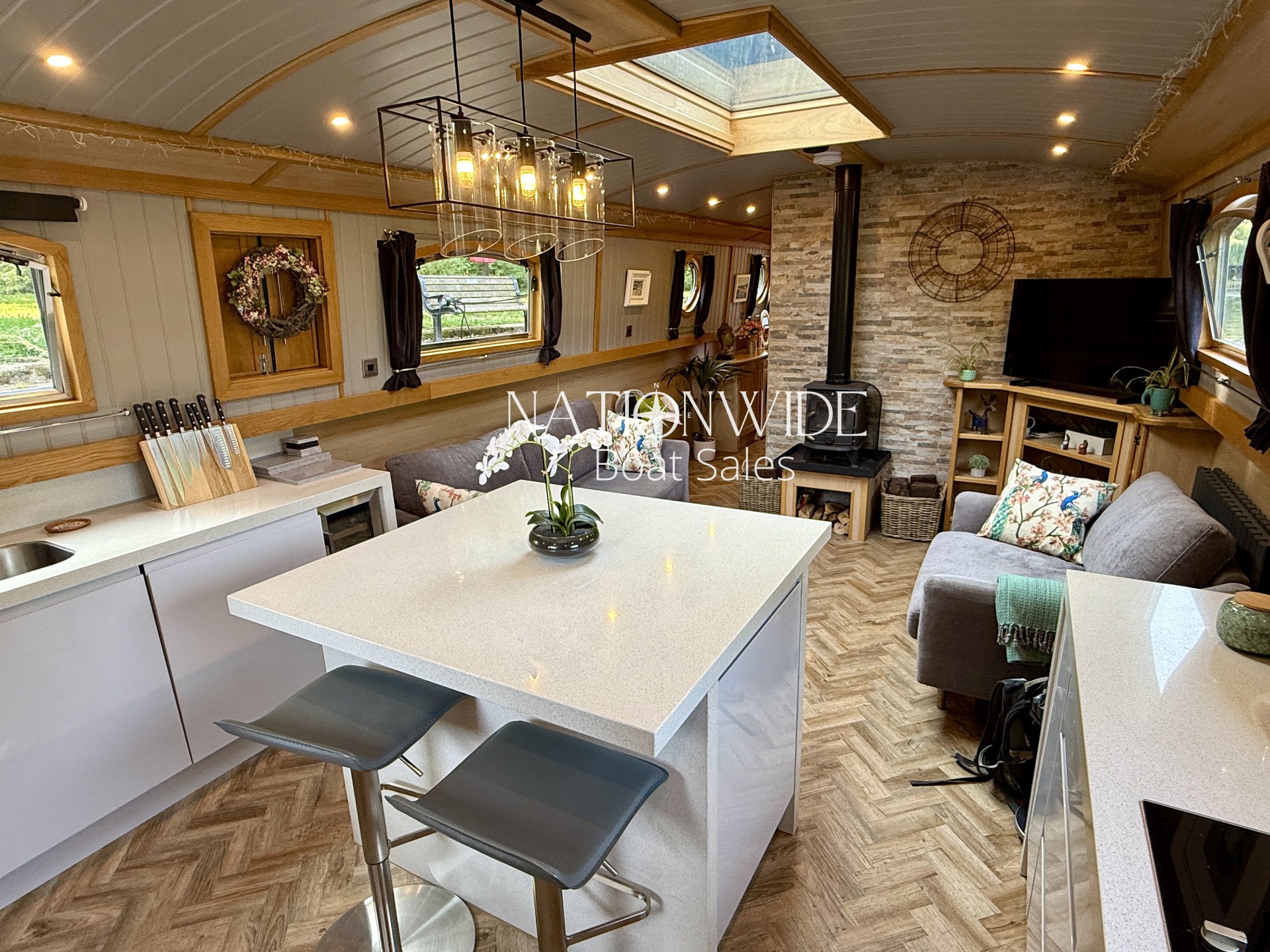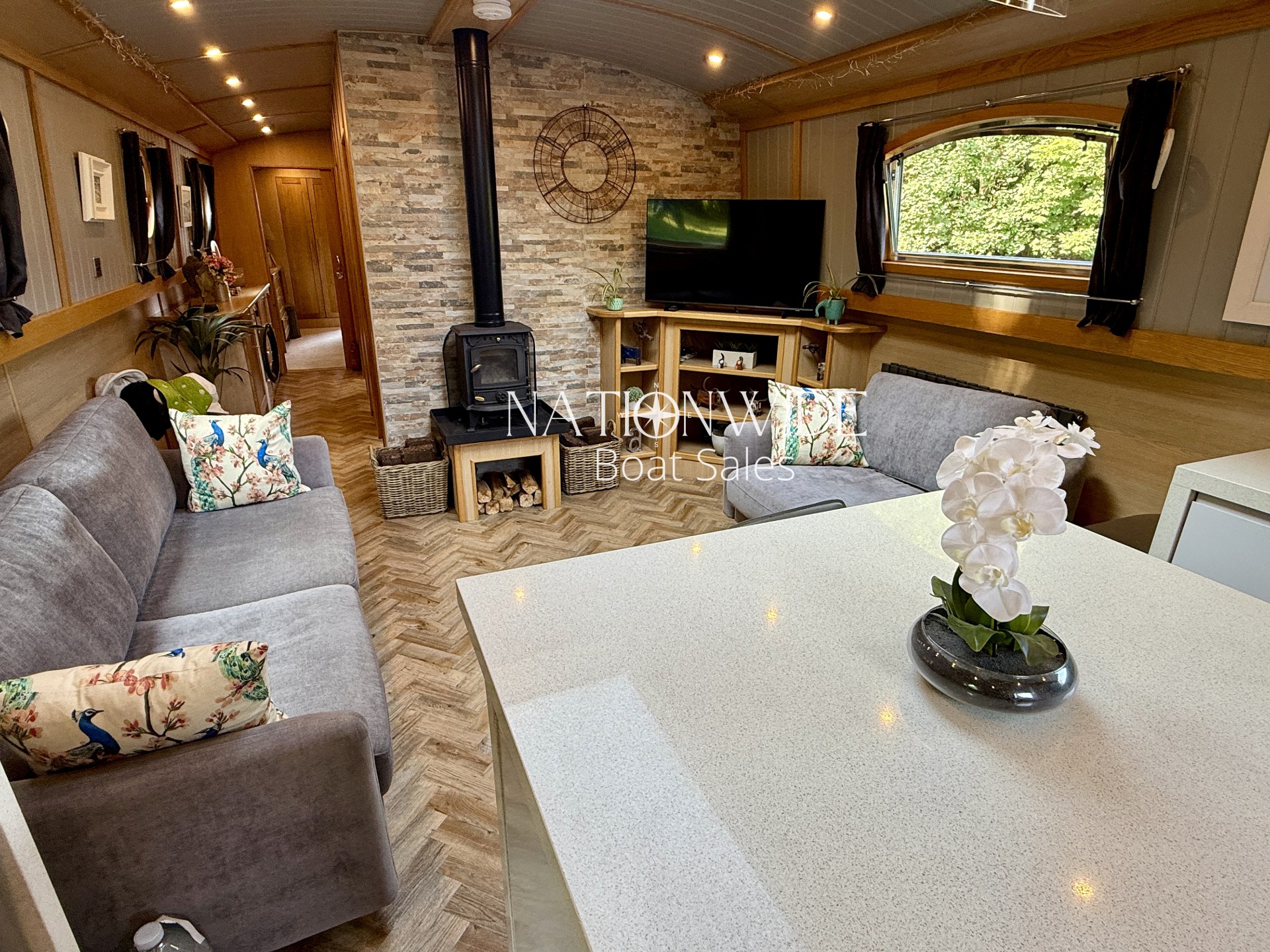 A contemporary widebeam designed for modern waterside living, As You Like It is a 60ft by 12ft 6in Cruiser built in 2022 by The Bespoke Boat Company. Combining thoughtful craftsmanship with a generous layout, she offers the space, comfort, and equipment needed for year-round life aboard.