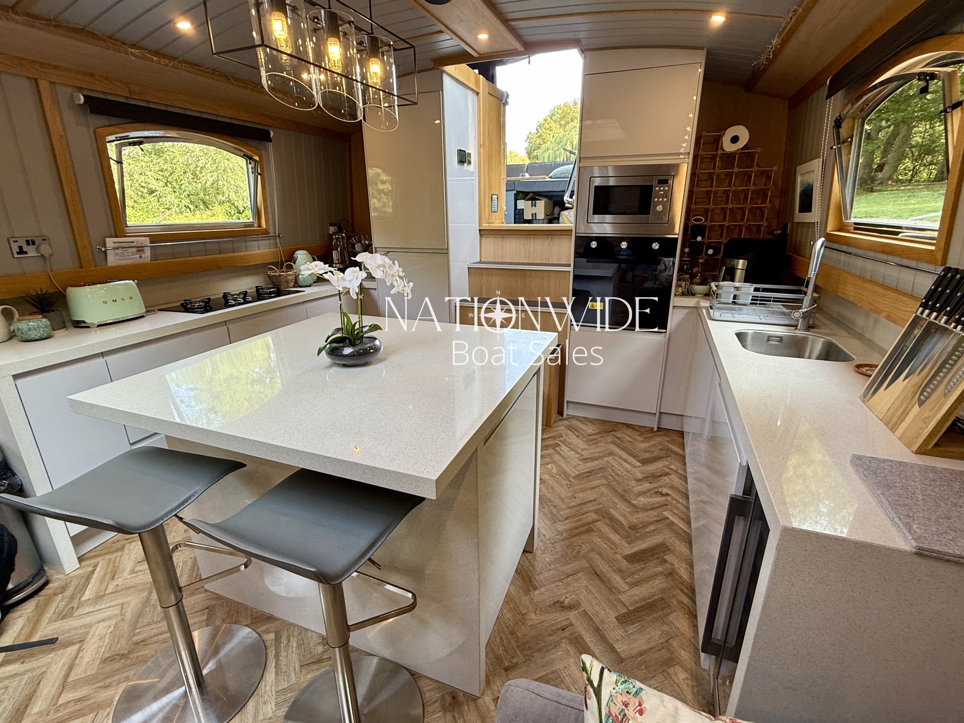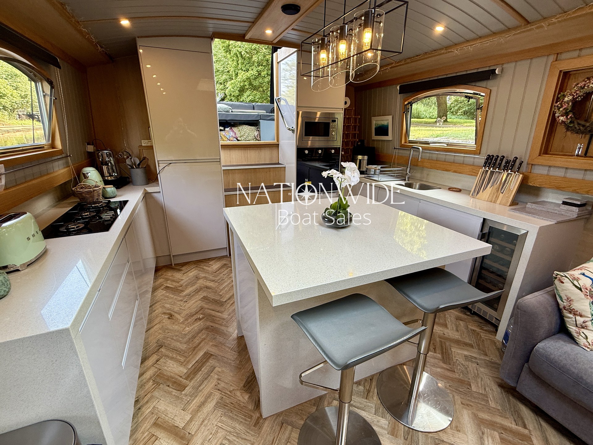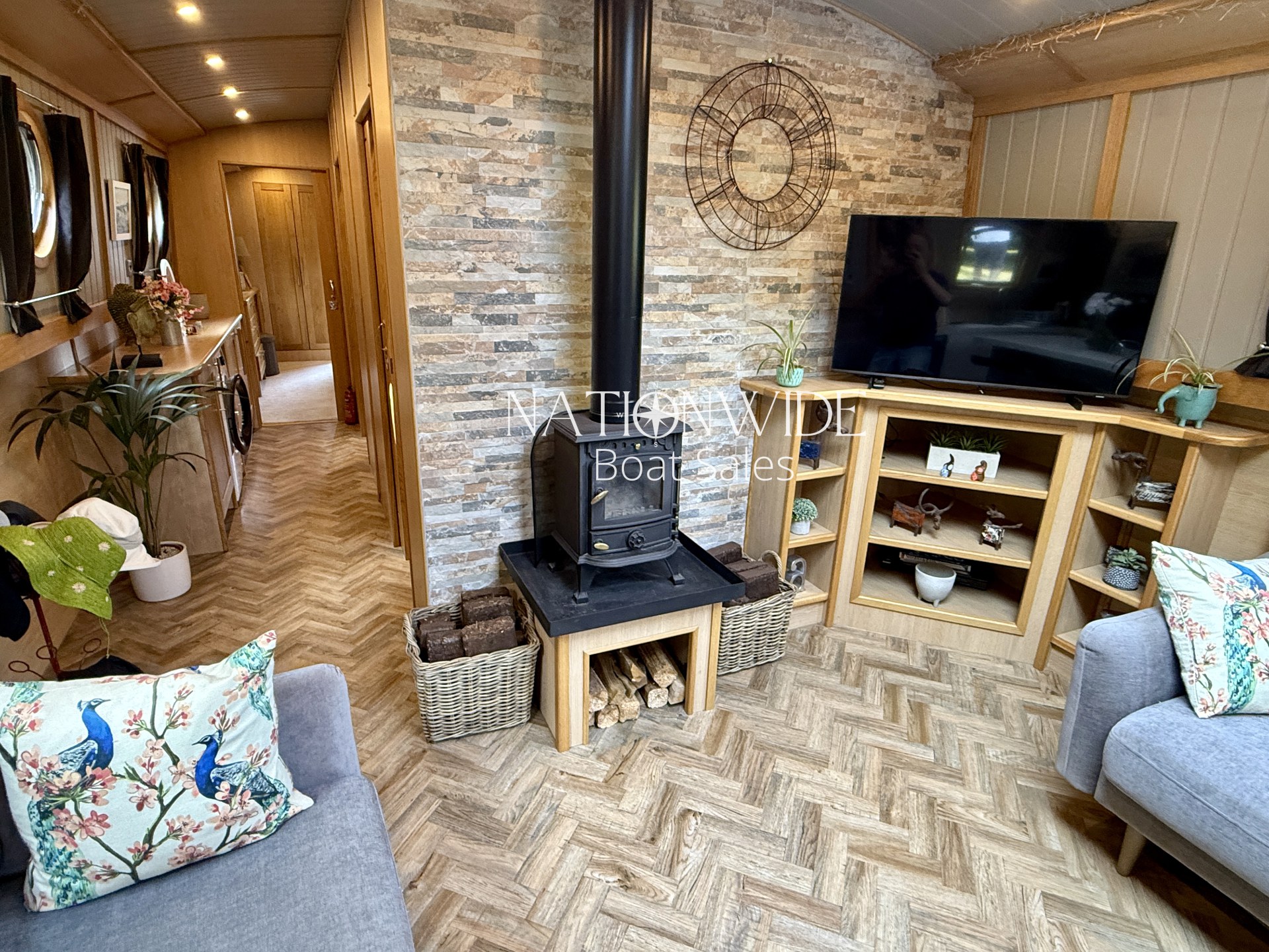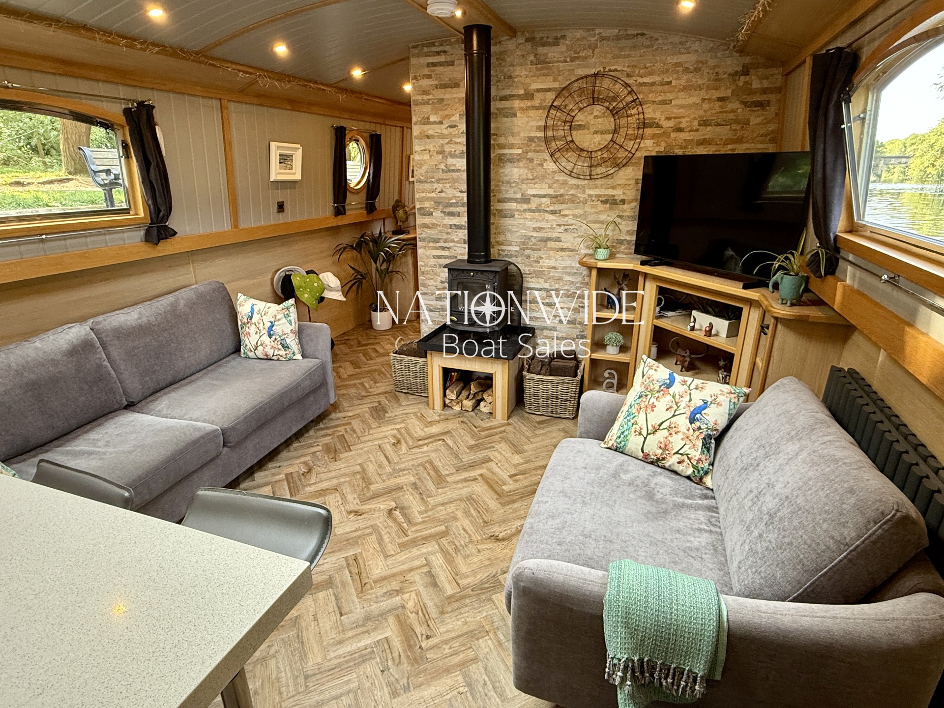 A contemporary widebeam designed for modern waterside living, As You Like It is a 60ft by 12ft 6in Cruiser built in 2022 by The Bespoke Boat Company. Combining thoughtful craftsmanship with a generous layout, she offers the space, comfort, and equipment needed for year-round life aboard.