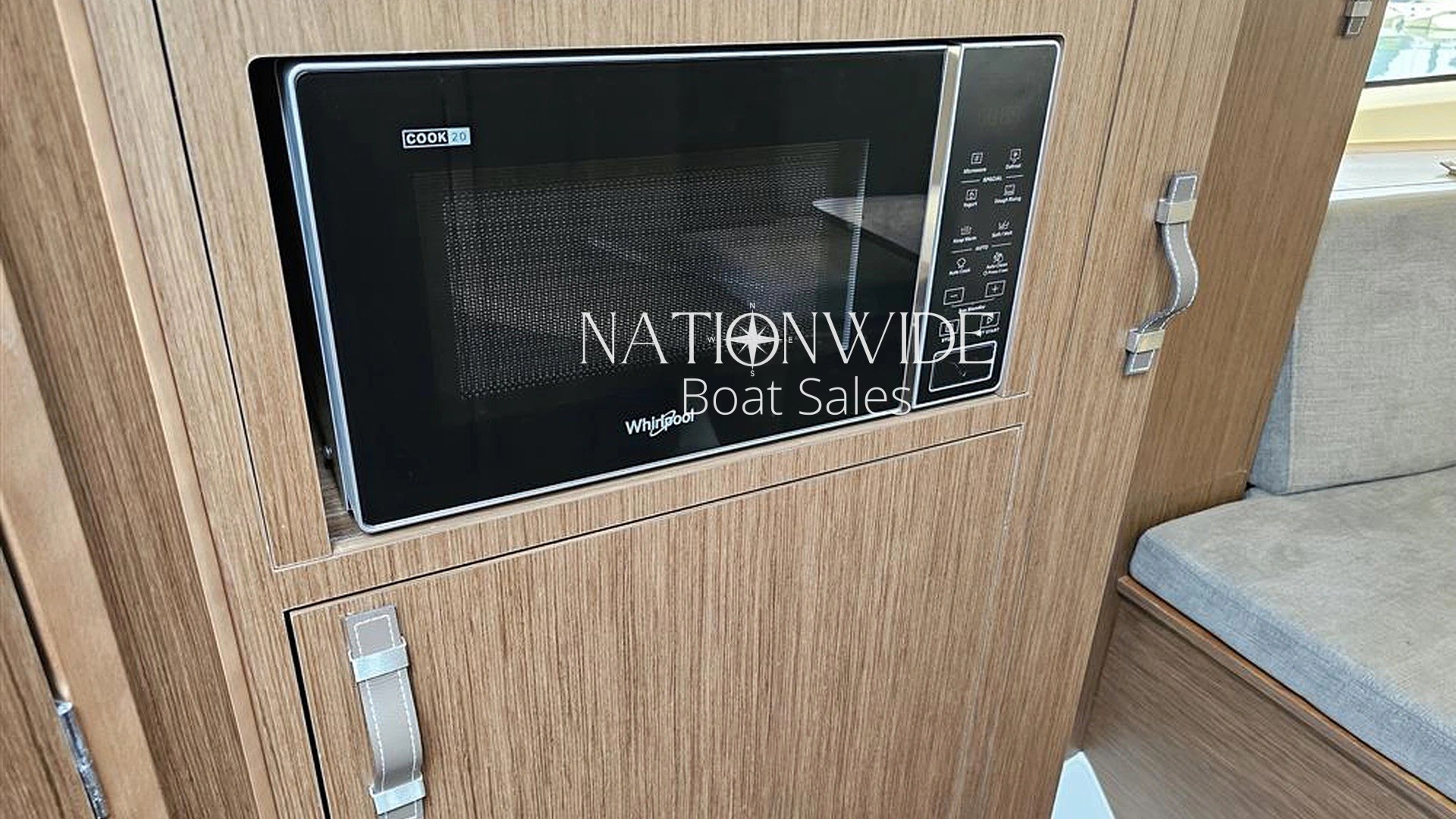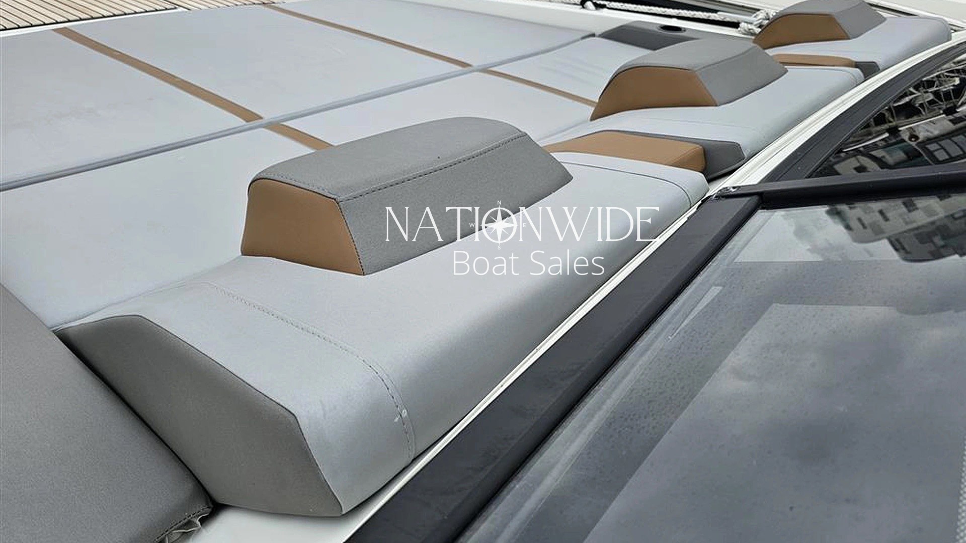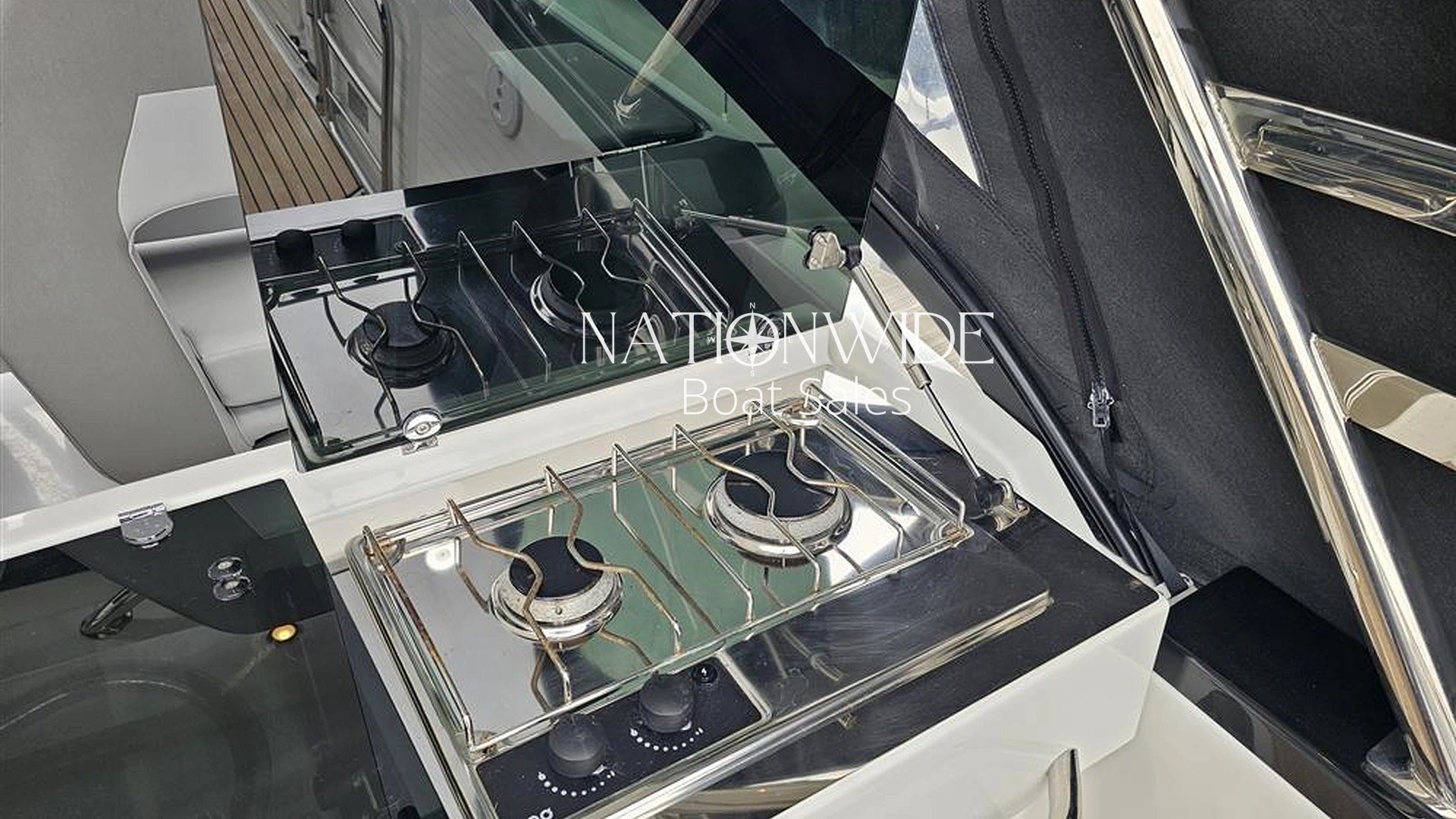 Her impressive inventory includes a Skyhook digital anchor, Joystick controls, SidePower bow thruster, Simrad 18inch/GPS/Plotter, Garmin DCS/VHF radio, Zipwake auto trimtabs, Plastimo compass, Fusion Stereo with cockpit speakers, a twin burner hob, sink, two fridges, a microwave combi oven, electric sea toilet, saloon table, cockpit roll up camper cover, electric windlass, fenders and warps, and she’s even copper coated.
