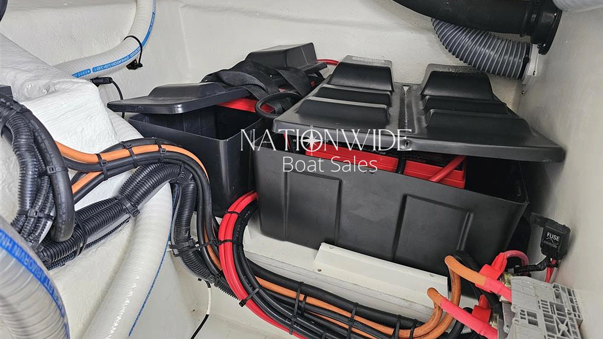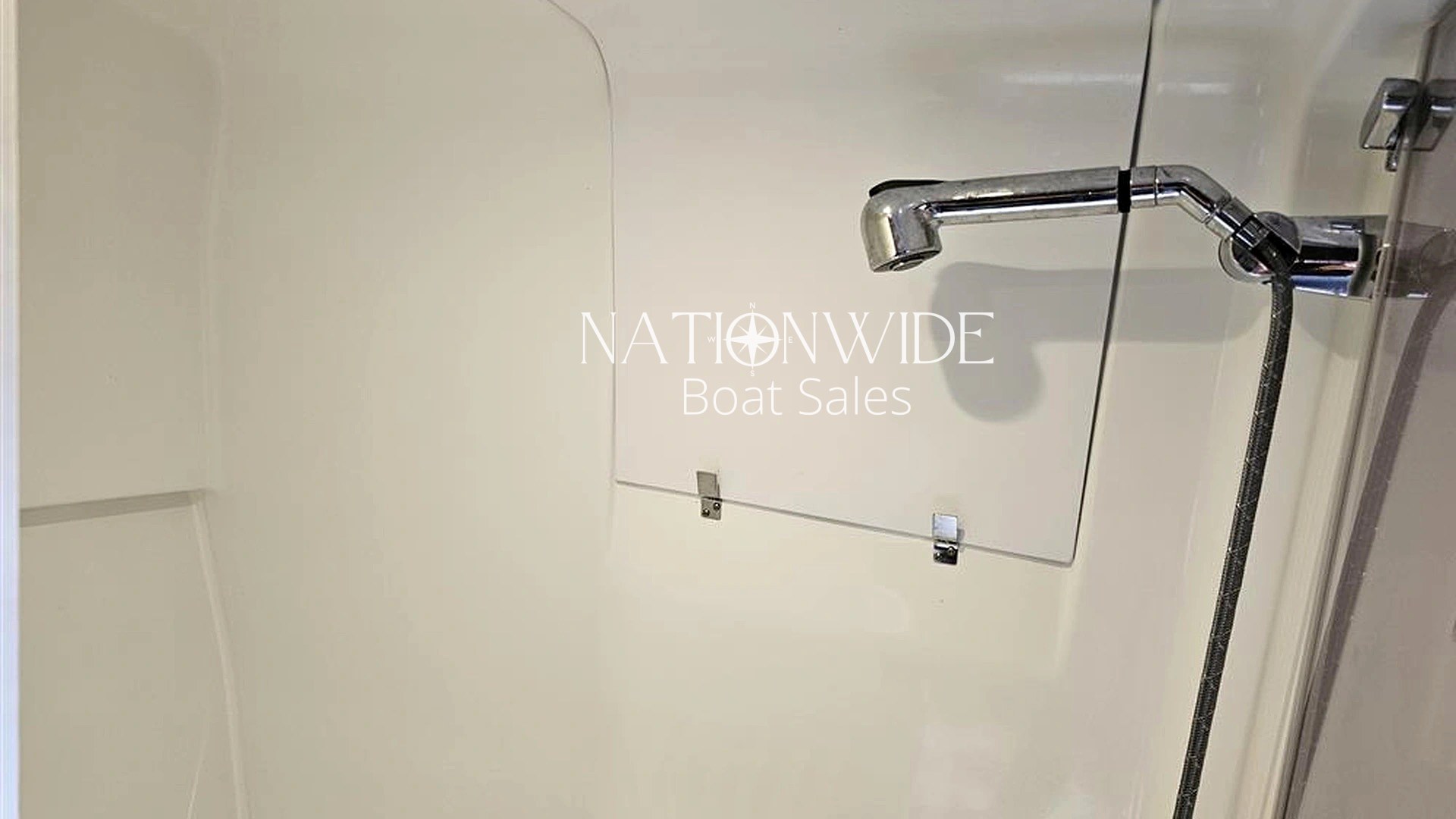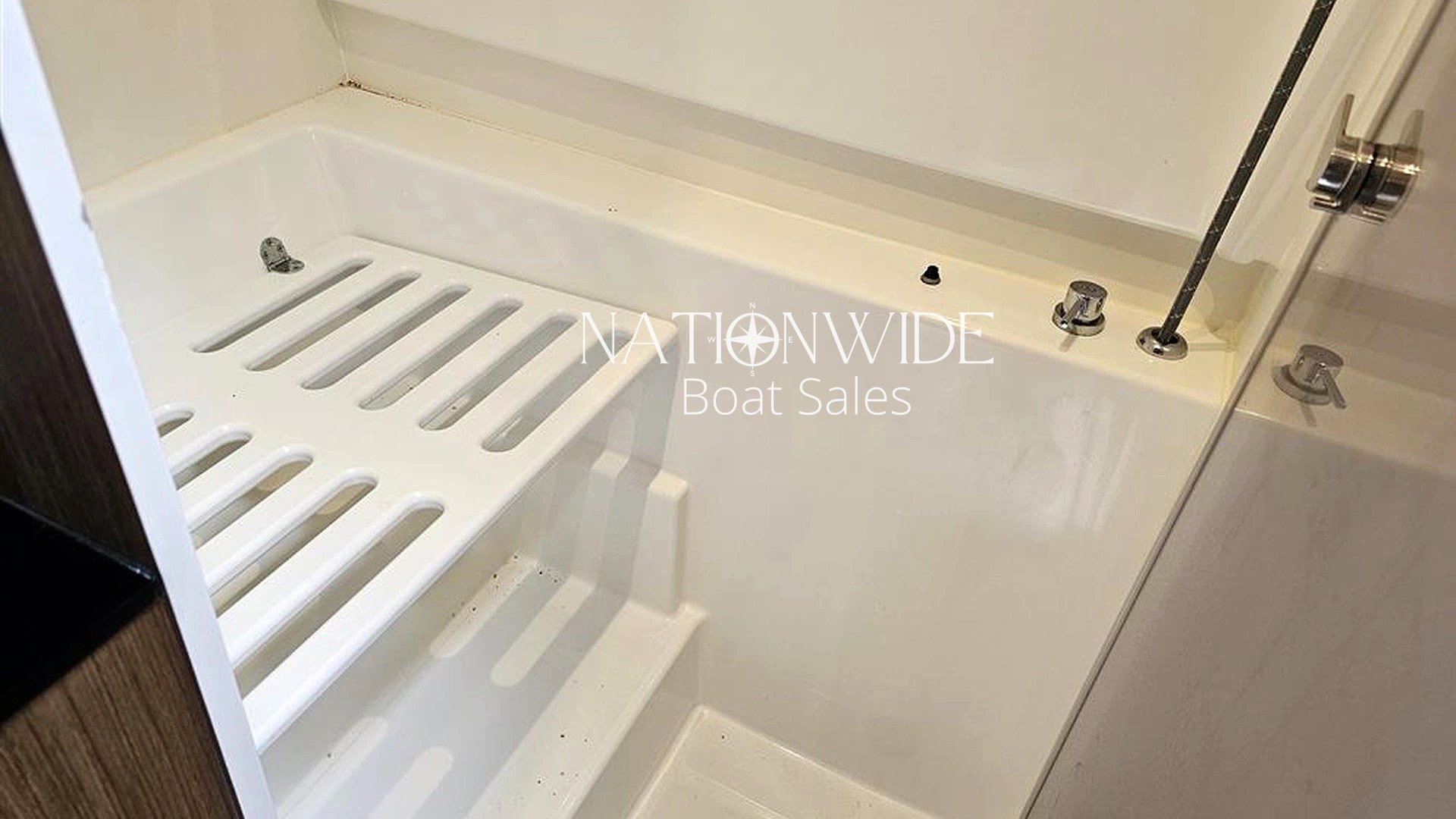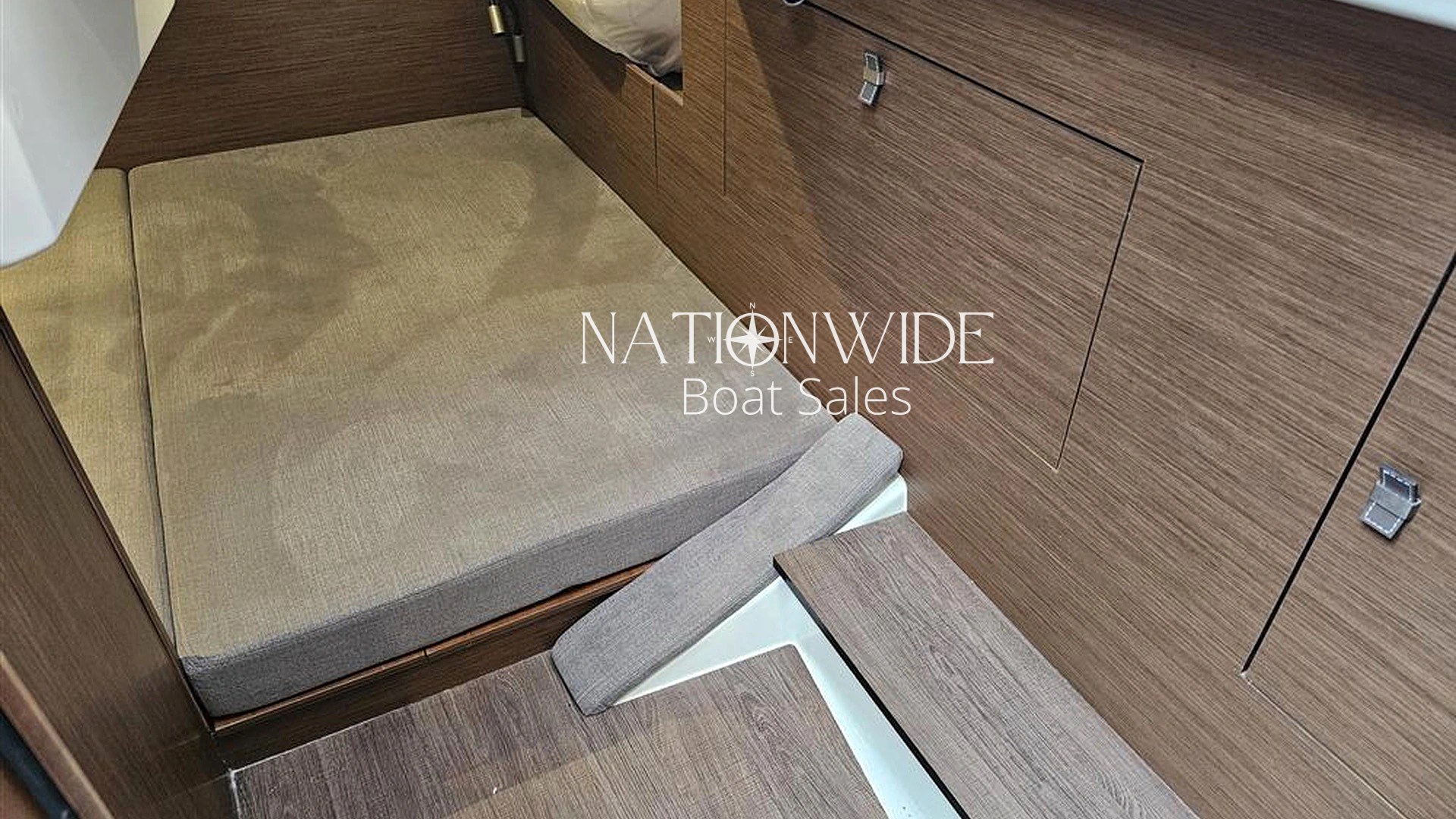 Her impressive inventory includes a Skyhook digital anchor, Joystick controls, SidePower bow thruster, Simrad 18inch/GPS/Plotter, Garmin DCS/VHF radio, Zipwake auto trimtabs, Plastimo compass, Fusion Stereo with cockpit speakers, a twin burner hob, sink, two fridges, a microwave combi oven, electric sea toilet, saloon table, cockpit roll up camper cover, electric windlass, fenders and warps, and she’s even copper coated.