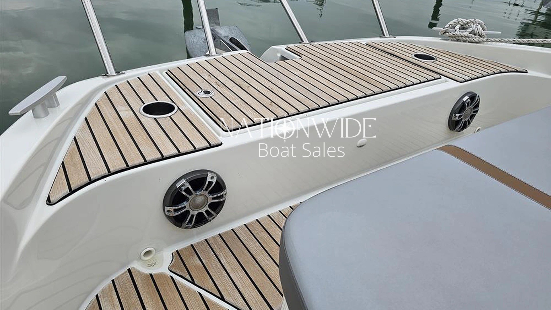 Say hello to ‘Ava Louise’, a pilot edition of the Beneteau Flyer 10. She’s powered by two Mercury Verado V8 four-stroke engines, boasting 300HP. This means she can reach speeds up to a thrilling 40 knots, with a comfortable cruising speed of 22 knots.