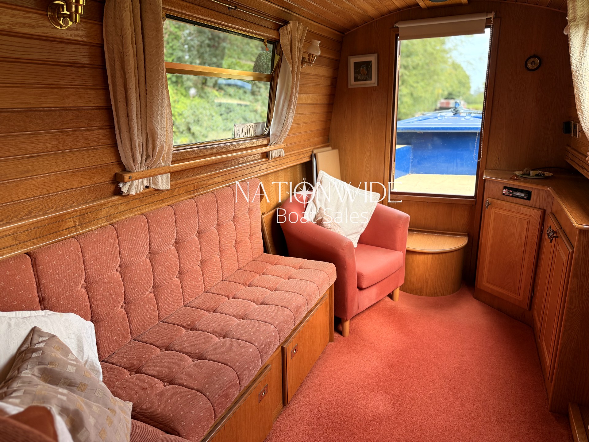 Her well-balanced layout begins with a sociable cruiser stern, offering ample space for relaxed cruising. Inside, the cabin sides are finished in oak tongue and groove with a mix of carpet and laminate flooring underfoot, creating a warm and inviting interior. Spray foam insulation and top-opening windows ensure year-round comfort, while thoughtful touches make her a practical and homely choice for extended cruising.