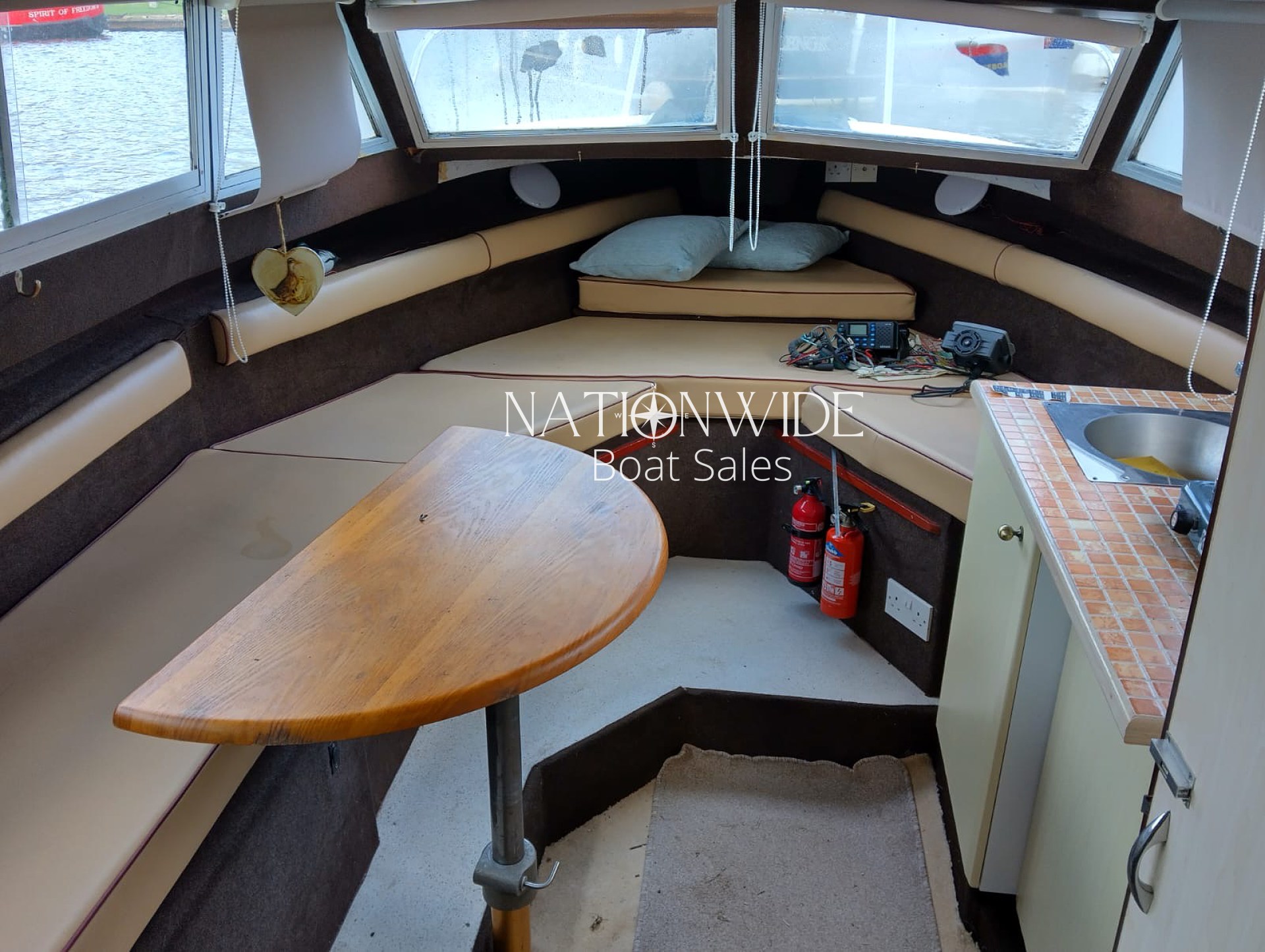 Carenza is a charming Pilgrim 25 motor cruiser, built by Marine Projects of Plymouth and offering classic styling paired with practical, easy-going cruising ability. Compact yet well-proportioned at 25ft, she is an ideal entry-level cruiser or a simple, enjoyable boat for relaxed inland and coastal use.