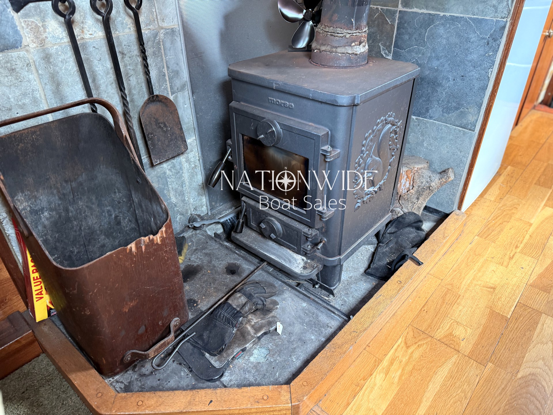 The heart of Darwell’s heating system is a reliable Webasto unit supported by a Morso Squirrel stove—perfect for staying warm year-round. Hot water is supplied via calorifier, immersion, or Webasto, ensuring hot showers no matter your cruising schedule. A clean, well-thought-out wet room includes a cassette toilet, shower, and vanity basin, with a second basin conveniently located in the master bedroom.