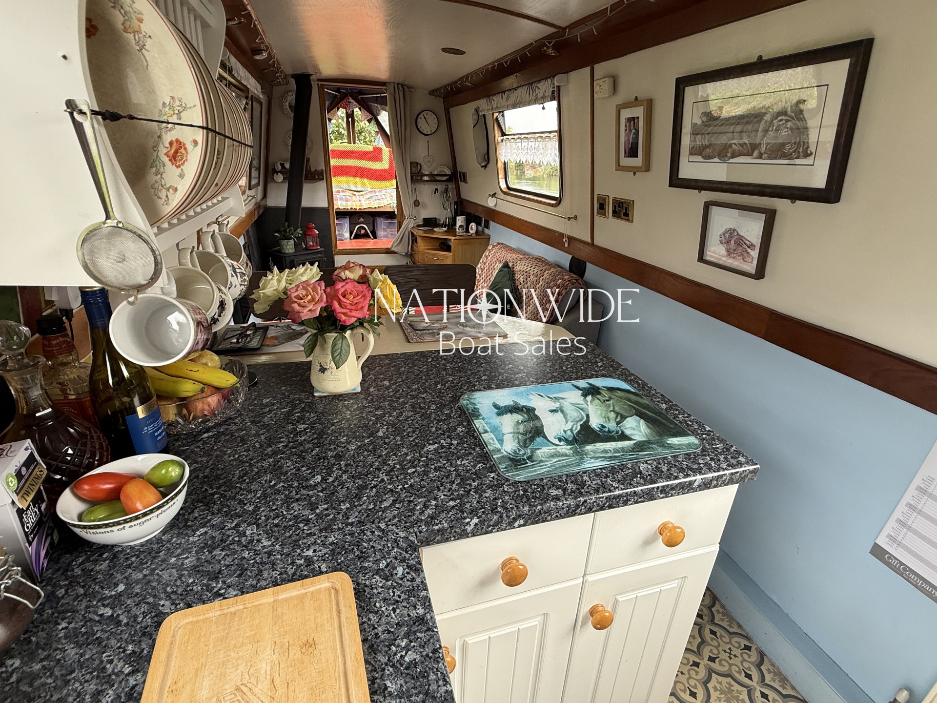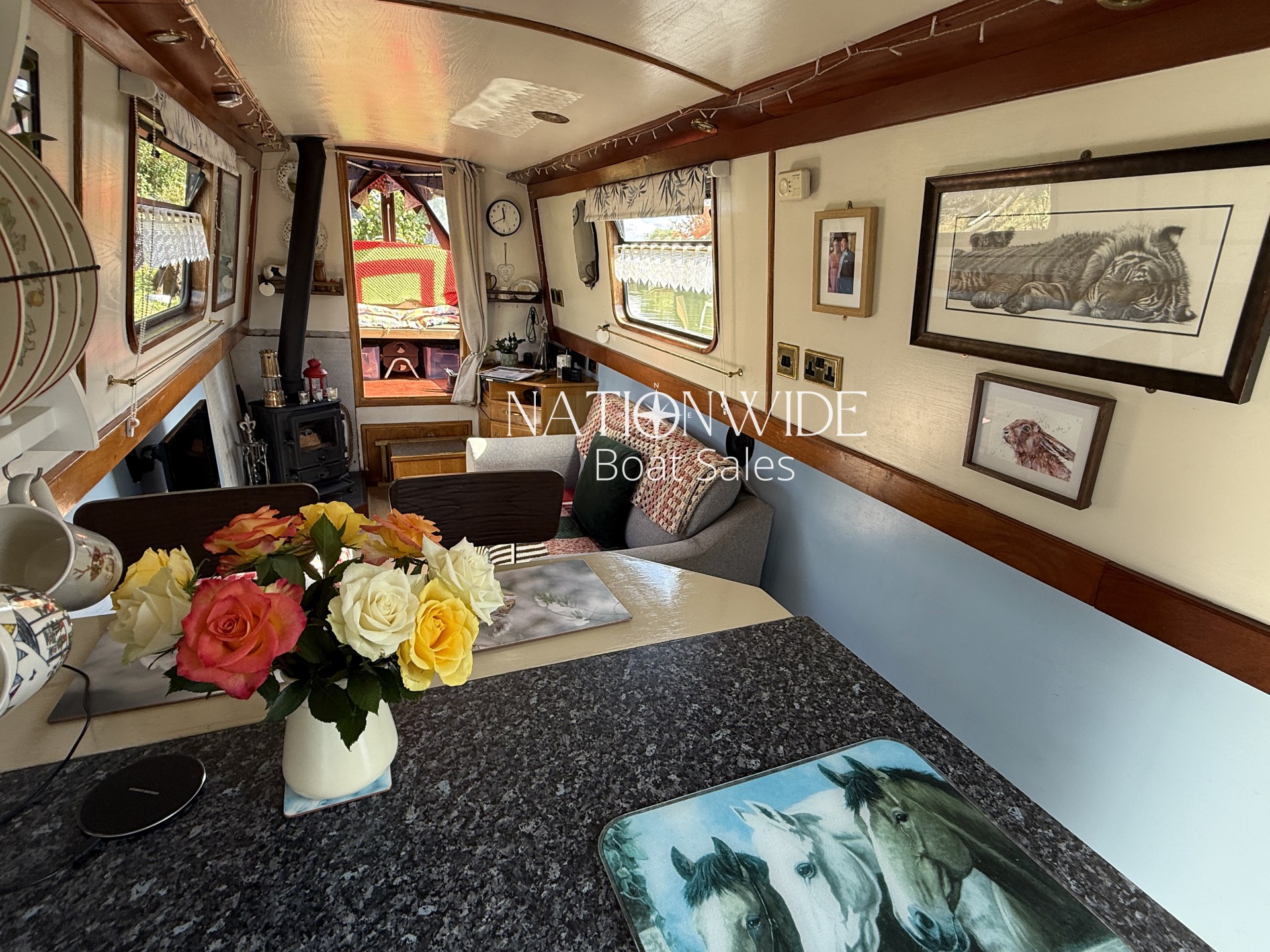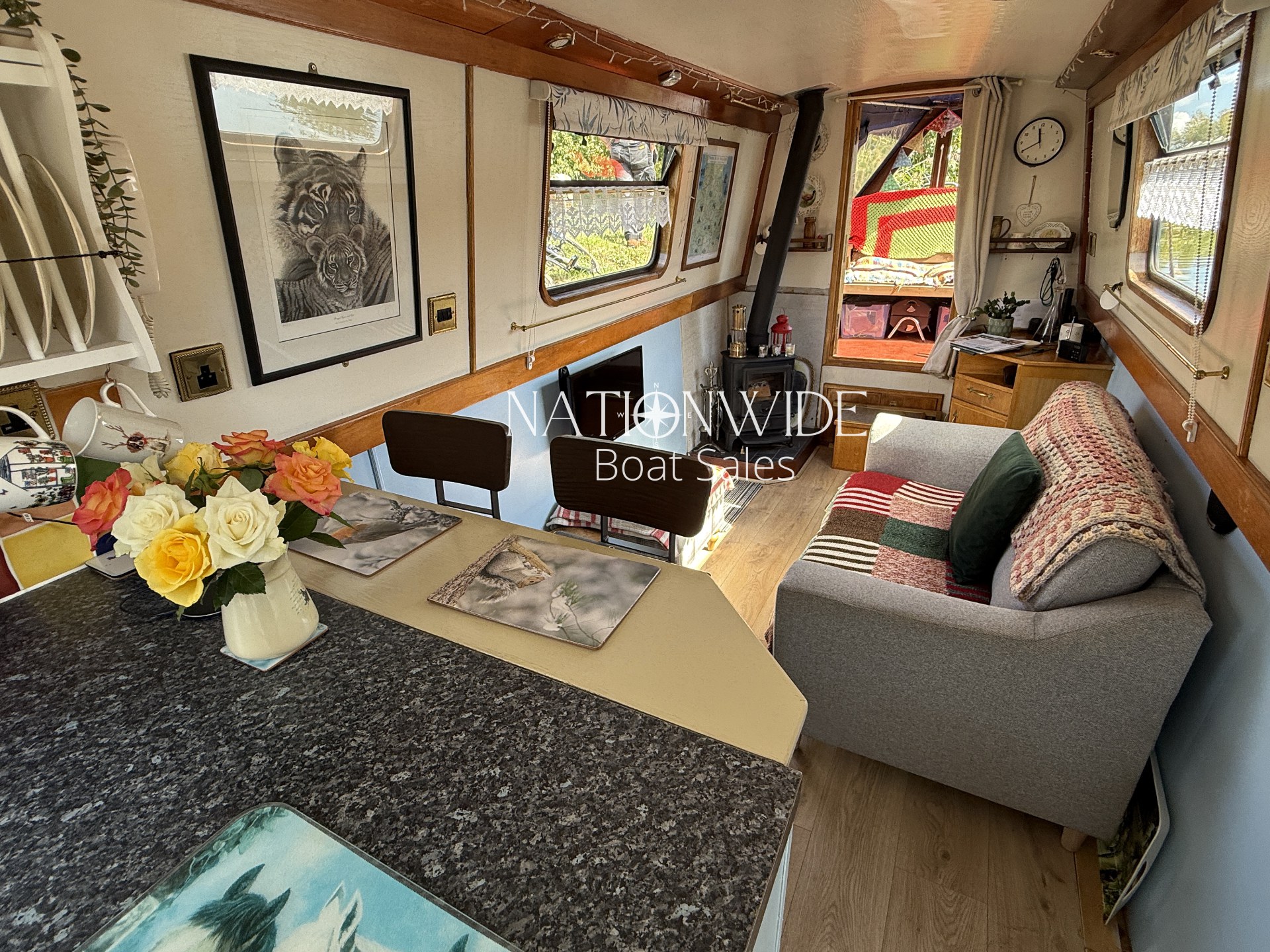 Step aboard Demesne, a beautifully crafted 57ft traditional narrowboat by Colecraft, built in 1999, and overflowing with charm. She offers a delightful cottage-atmosphere nestled on water — warm, inviting and full of thoughtful touches. From the moment you enter, you sense that this isn’t just any boat; it’s a home with character, lovingly maintained and impressively equipped.