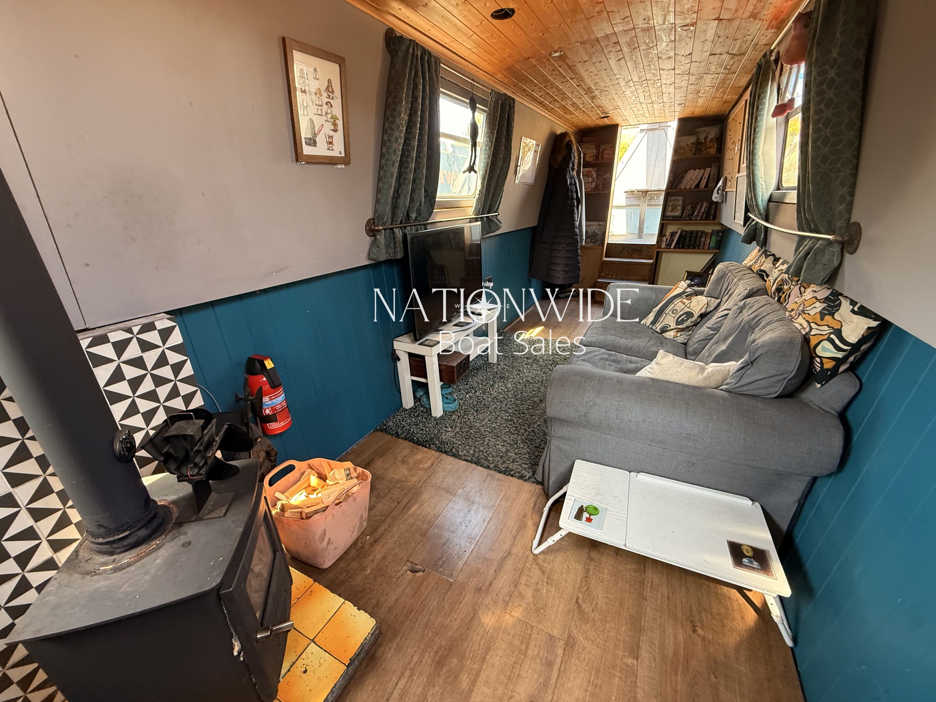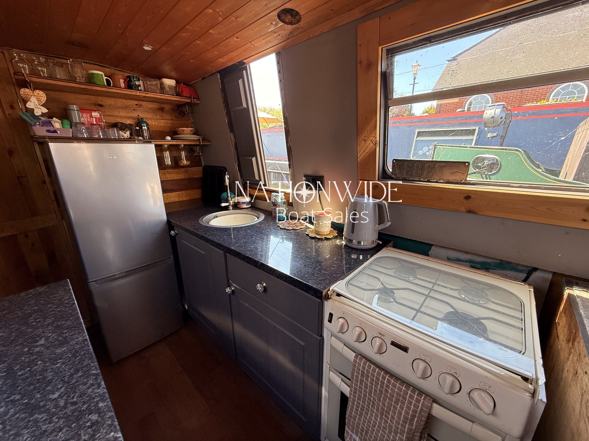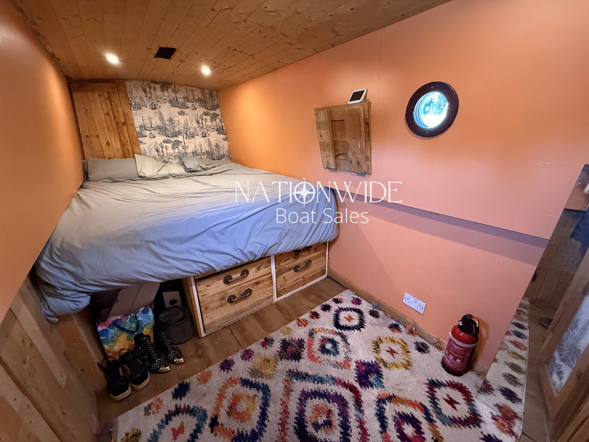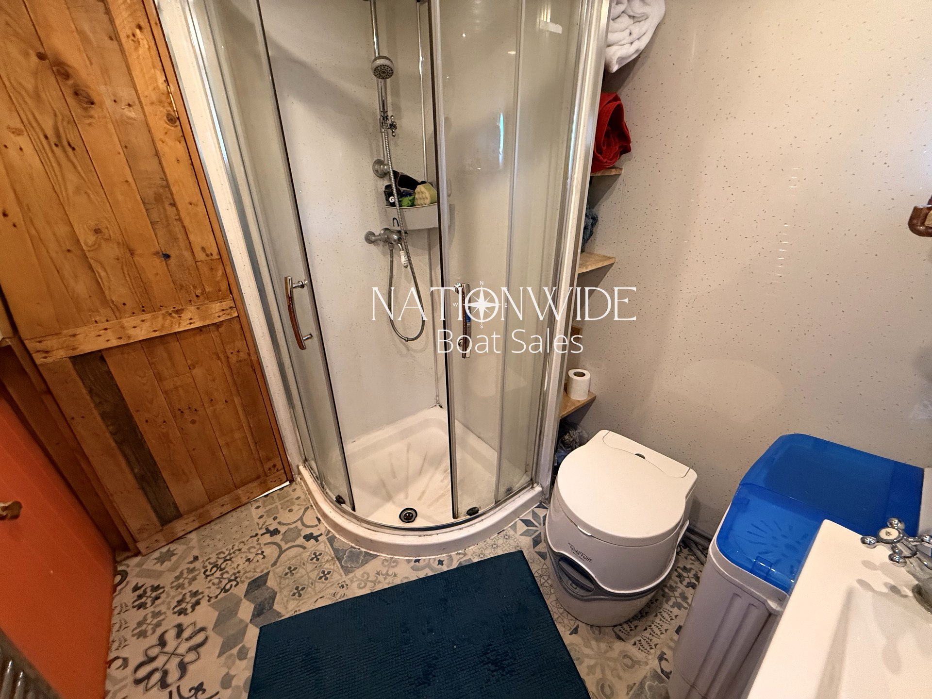 Introducing Gallingale, a 65ft Trad built by Mike Heywood. Propulsion is provided by the BMC 4 cylinder engine. Hot water is supplied by the calorifier whilst the Hamlet 5kw solid fuel stove keeps the vessel warm throughout the year. The boat’s electrical setup comprises of 12v, 240v, Victron Multiplus Compact inverter, 1 starter, 1 leisure battery and a galvanic isolator. Within the galley we can find a Stoves oven and hob along with a Logik 240v fridge. Accommodation is provided for two with a fixed double bed to the stern, which can easily be extended when not needing a walkway through to the stern. There is also potential for additional berths within the saloon. The walkthrough bathroom is home to a cassette toilet, shower and vanity basin.