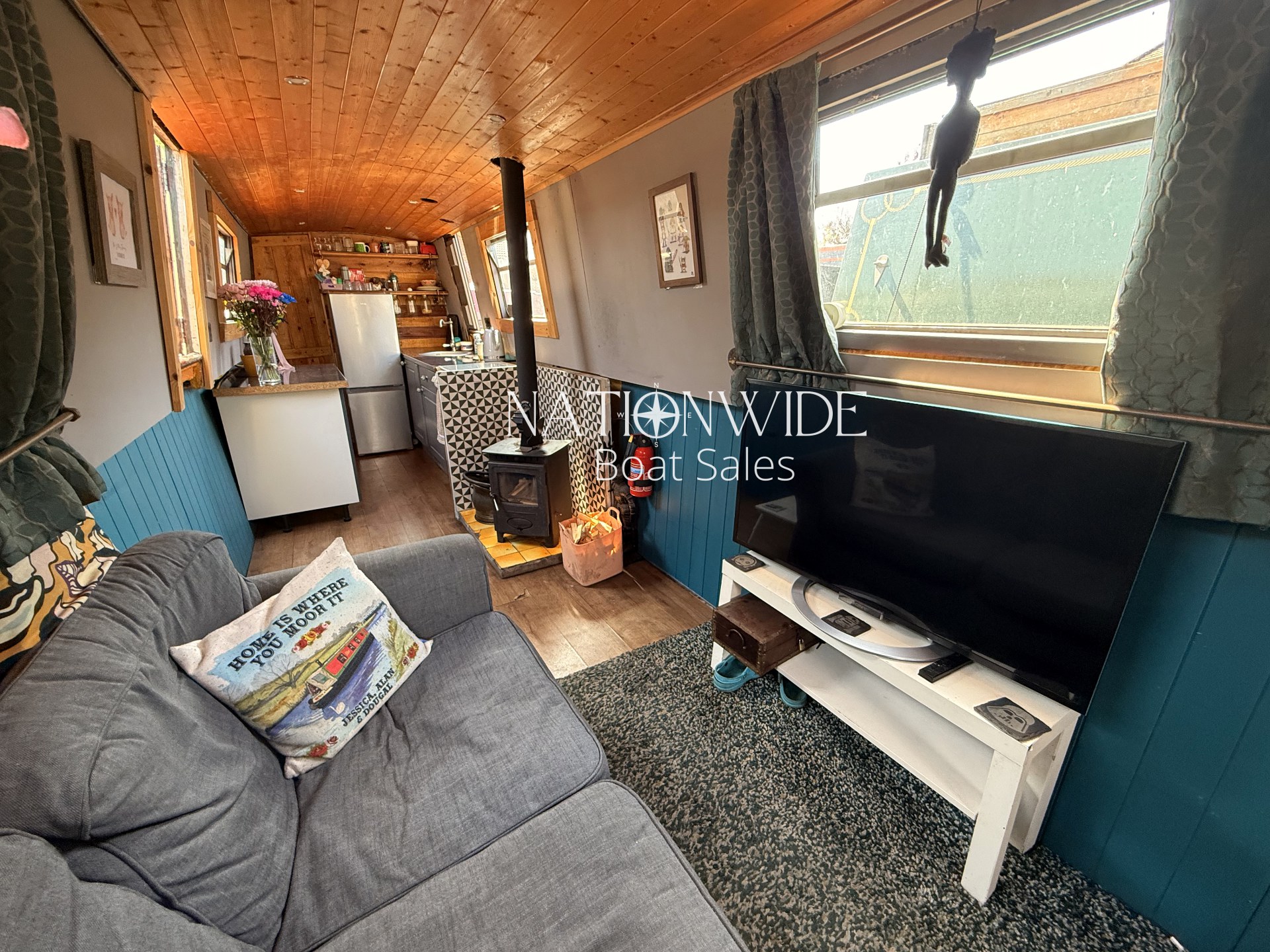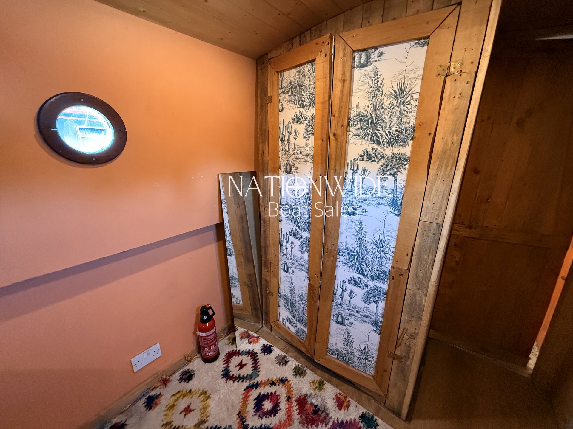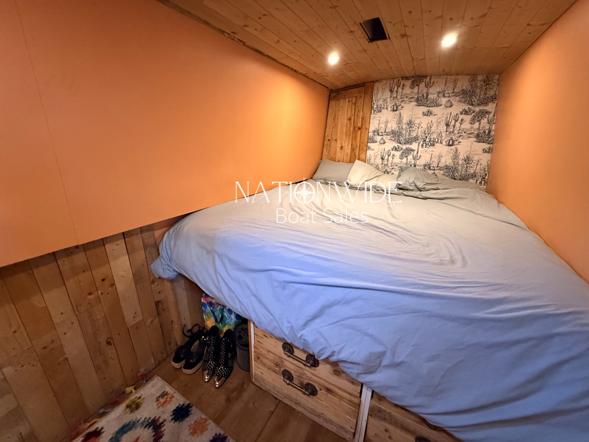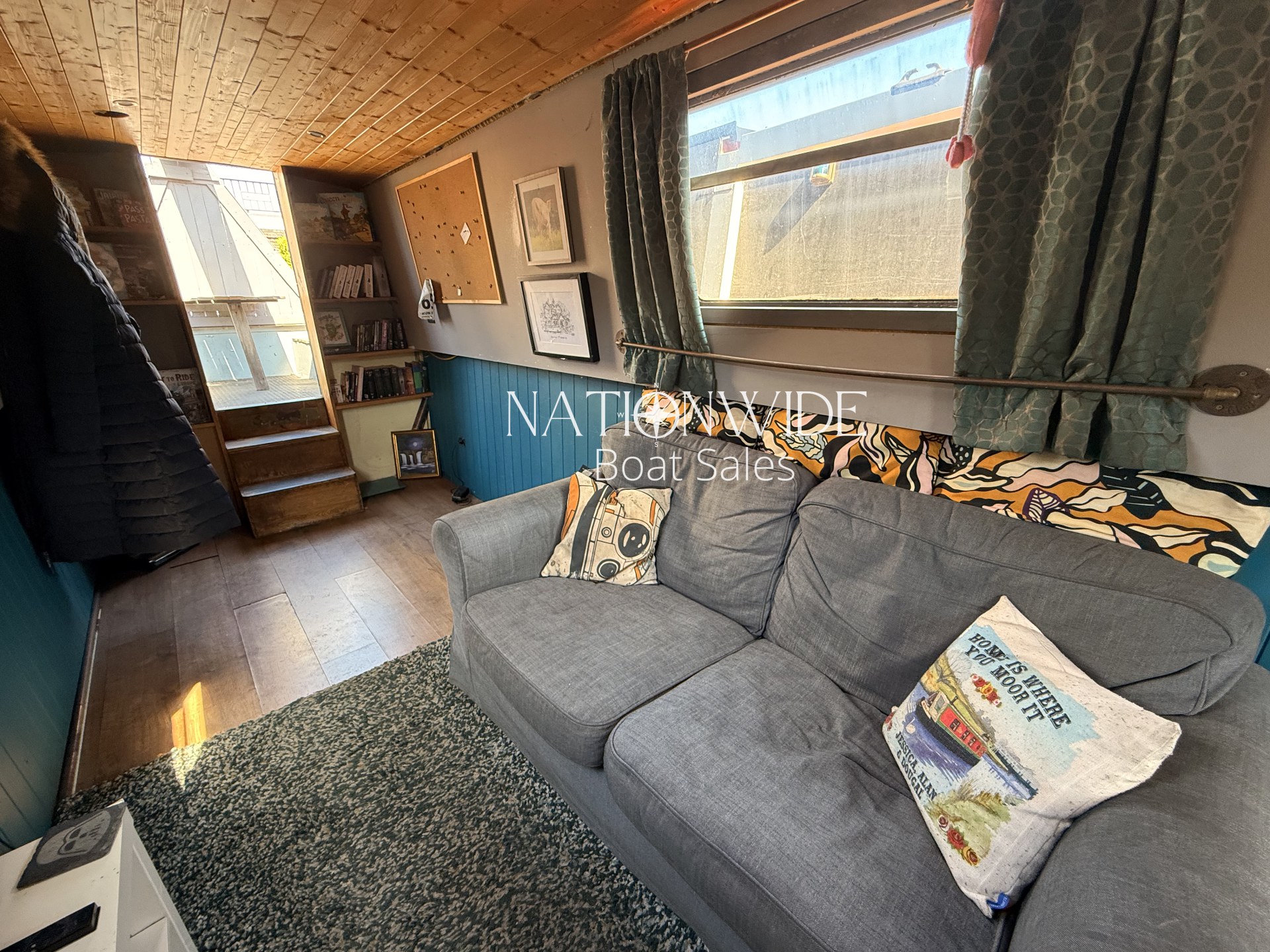 Introducing Gallingale, a 65ft Trad built by Mike Heywood. Propulsion is provided by the BMC 4 cylinder engine. Hot water is supplied by the calorifier whilst the Hamlet 5kw solid fuel stove keeps the vessel warm throughout the year. The boat’s electrical setup comprises of 12v, 240v, Victron Multiplus Compact inverter, 1 starter, 1 leisure battery and a galvanic isolator. Within the galley we can find a Stoves oven and hob along with a Logik 240v fridge. Accommodation is provided for two with a fixed double bed to the stern, which can easily be extended when not needing a walkway through to the stern. There is also potential for additional berths within the saloon. The walkthrough bathroom is home to a cassette toilet, shower and vanity basin.