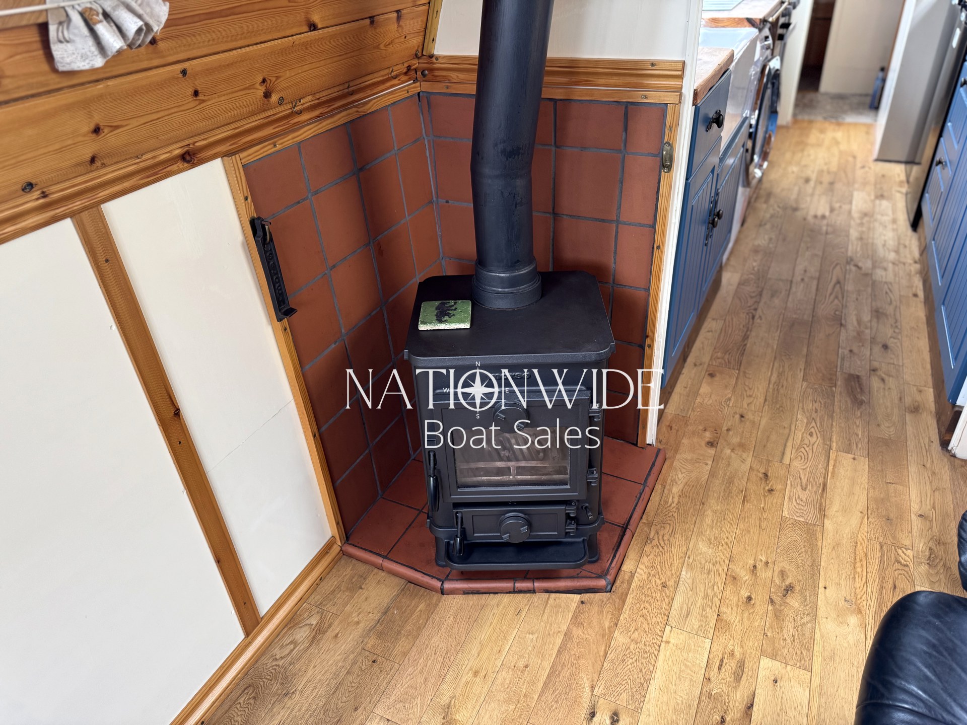 Hot water is provided by a calorifier and Webasto, with the Webasto diesel heater also supplying the central heating throughout the boat. There is also a Morso Squirrel solid fuel stove in the saloon.