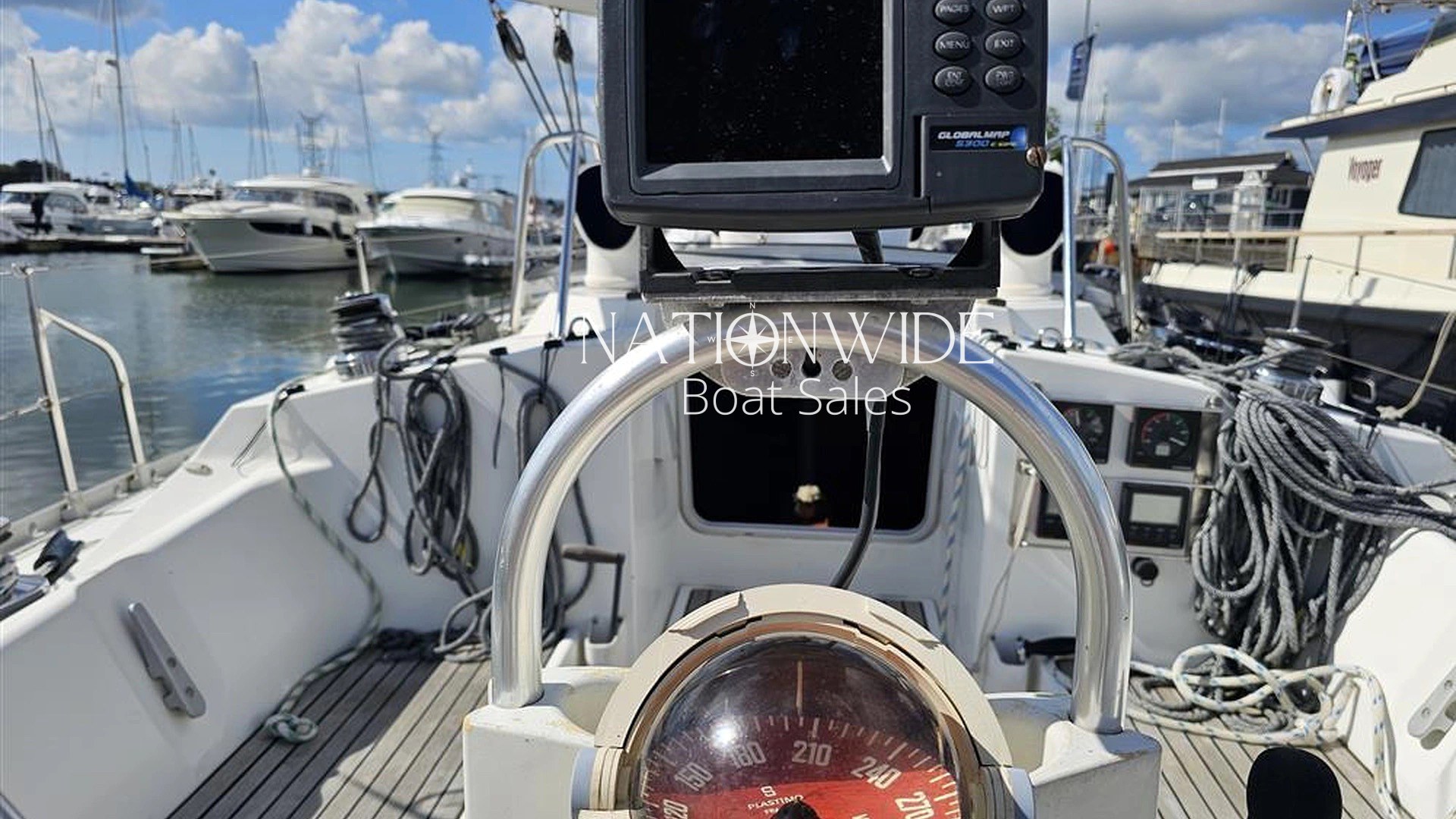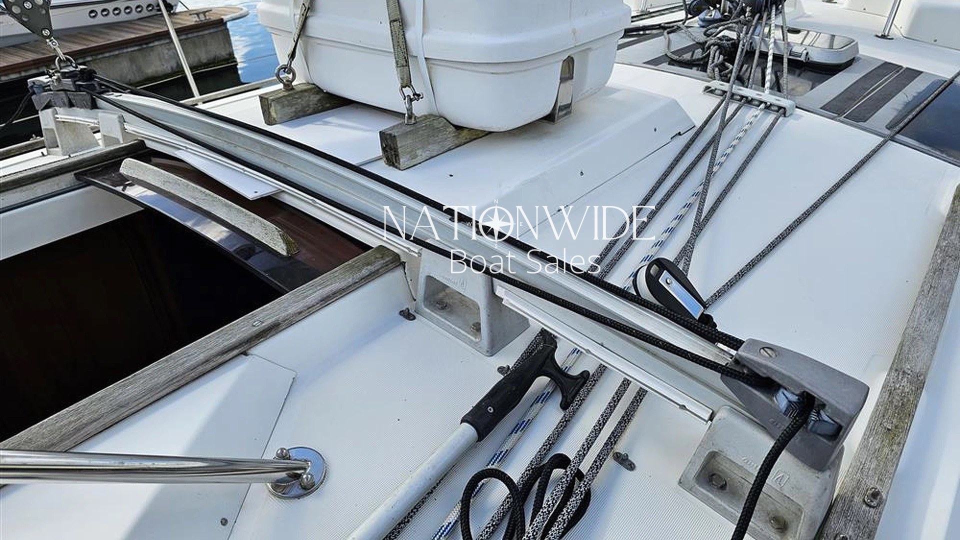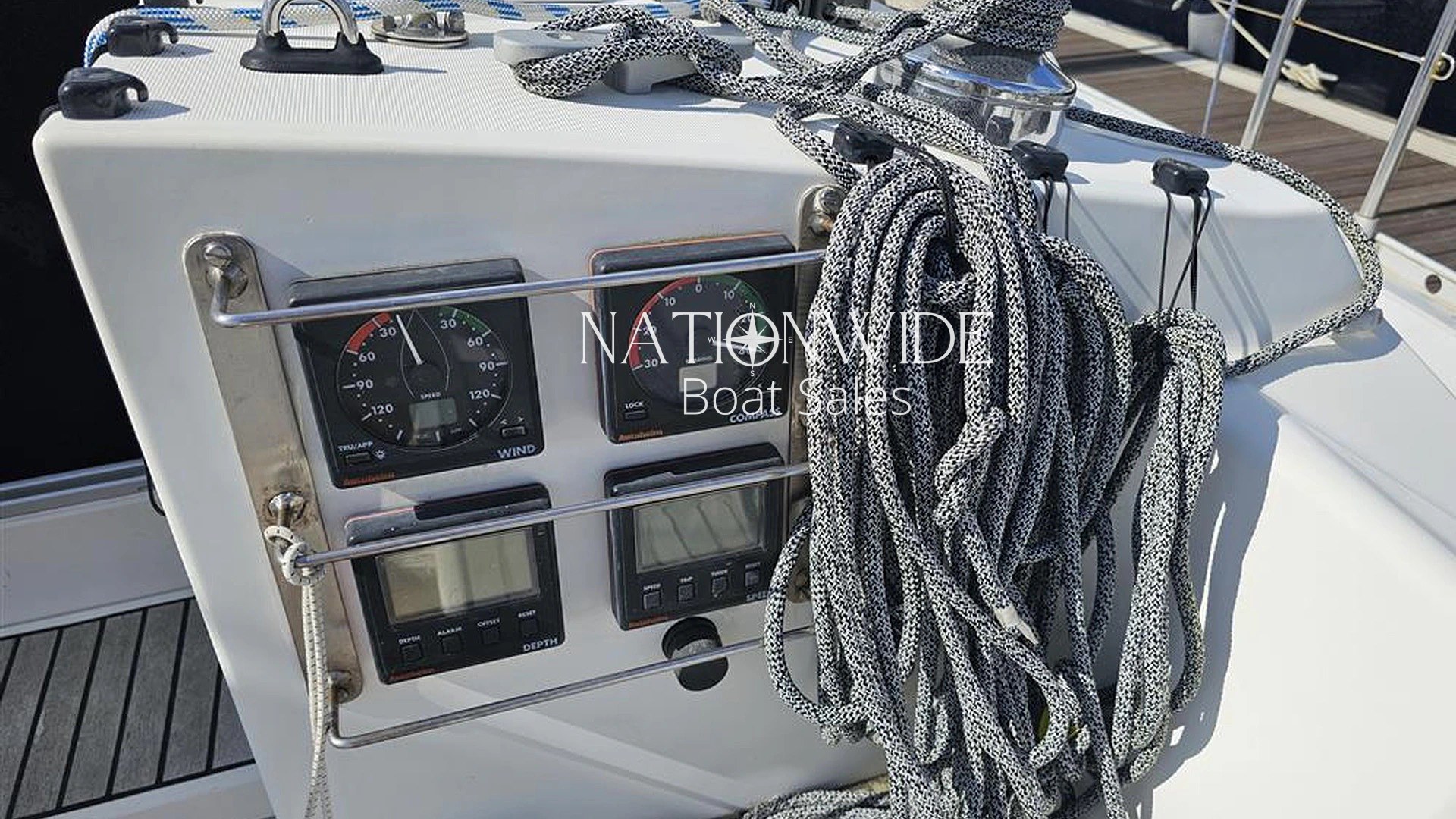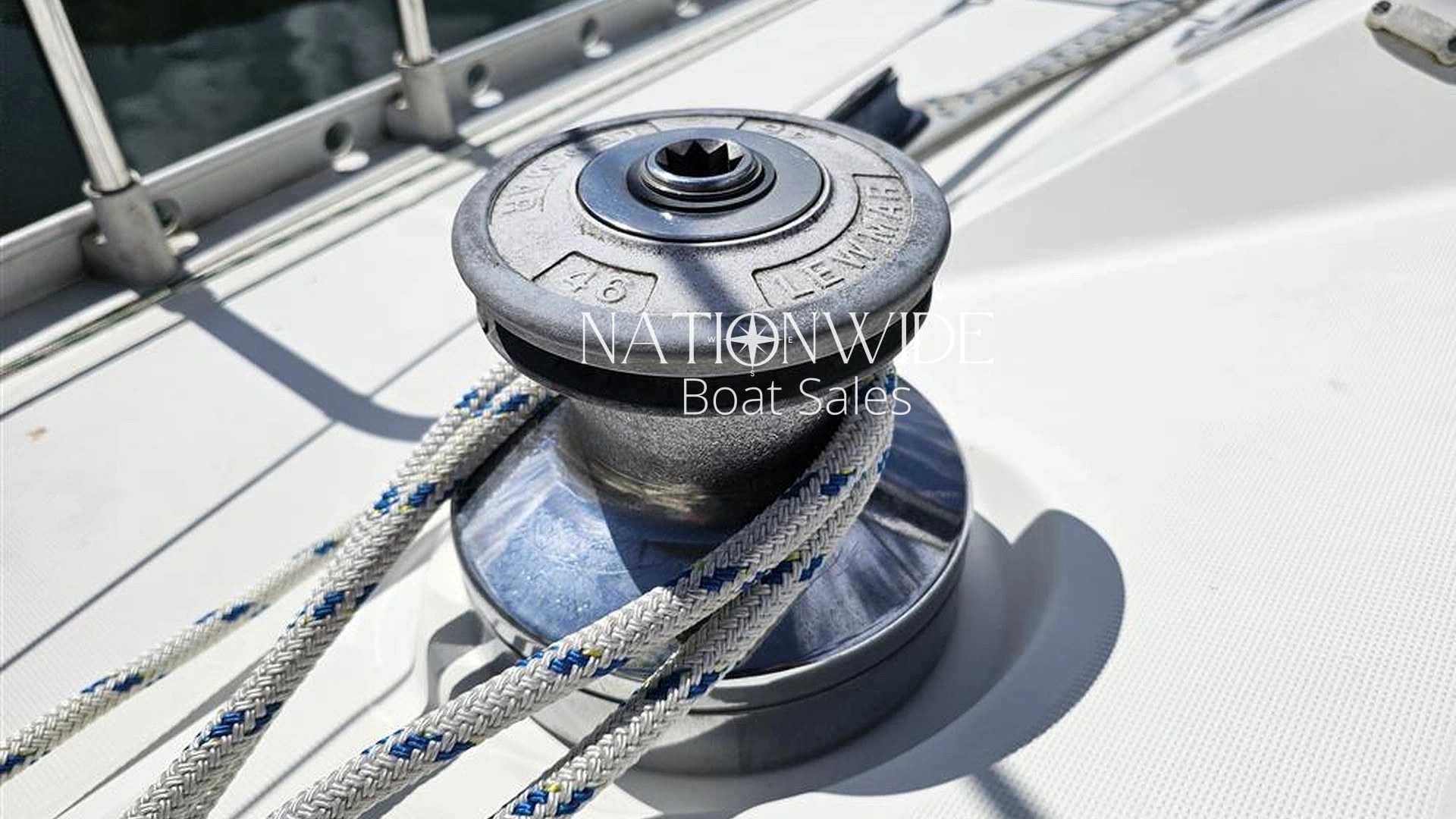 Her extensive inventory includes a Lowrance GPS/Chartploter, Raymarine wind, speed, depth compass, autopilot ICOM DSC, Raymarine Radar, and VHF. The galley features a Plastimo Neptune burner gas hob with oven and grill on gimbals, twin stainless steel sinks, and toploading twin fridges. Facilities include a Jabso sea toilet, electric windlass, 2x Lewmar 46 sheet winches, 2x Lewmar 30 halyard winches, and she’s had recent running rigging, Z Spars mast, boom and spinnaker pole, fenders, lines, and a whole lot more.