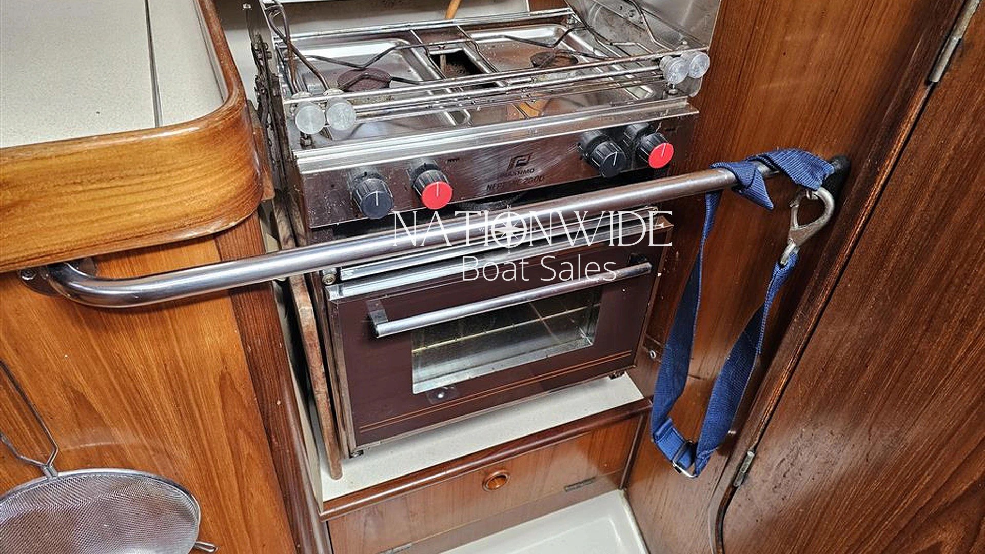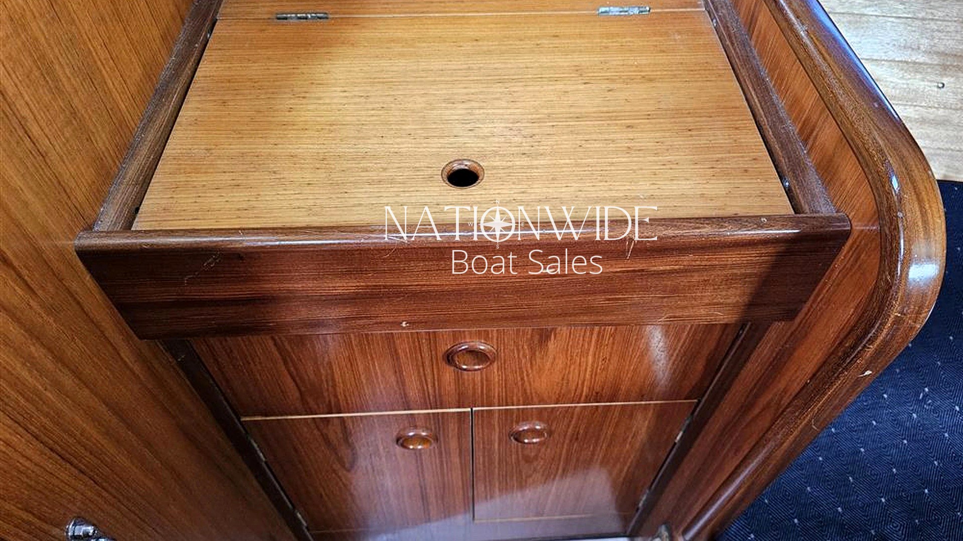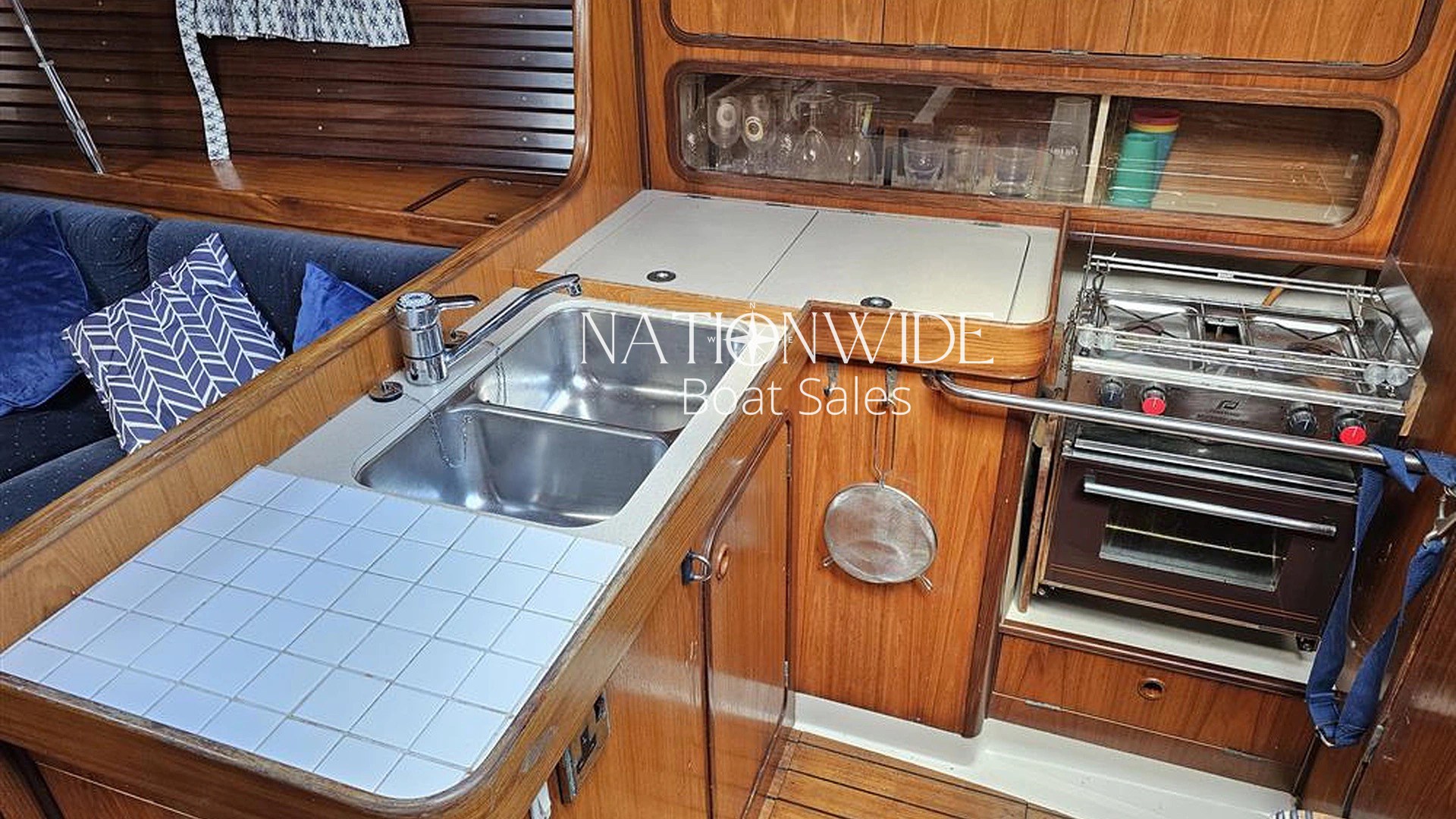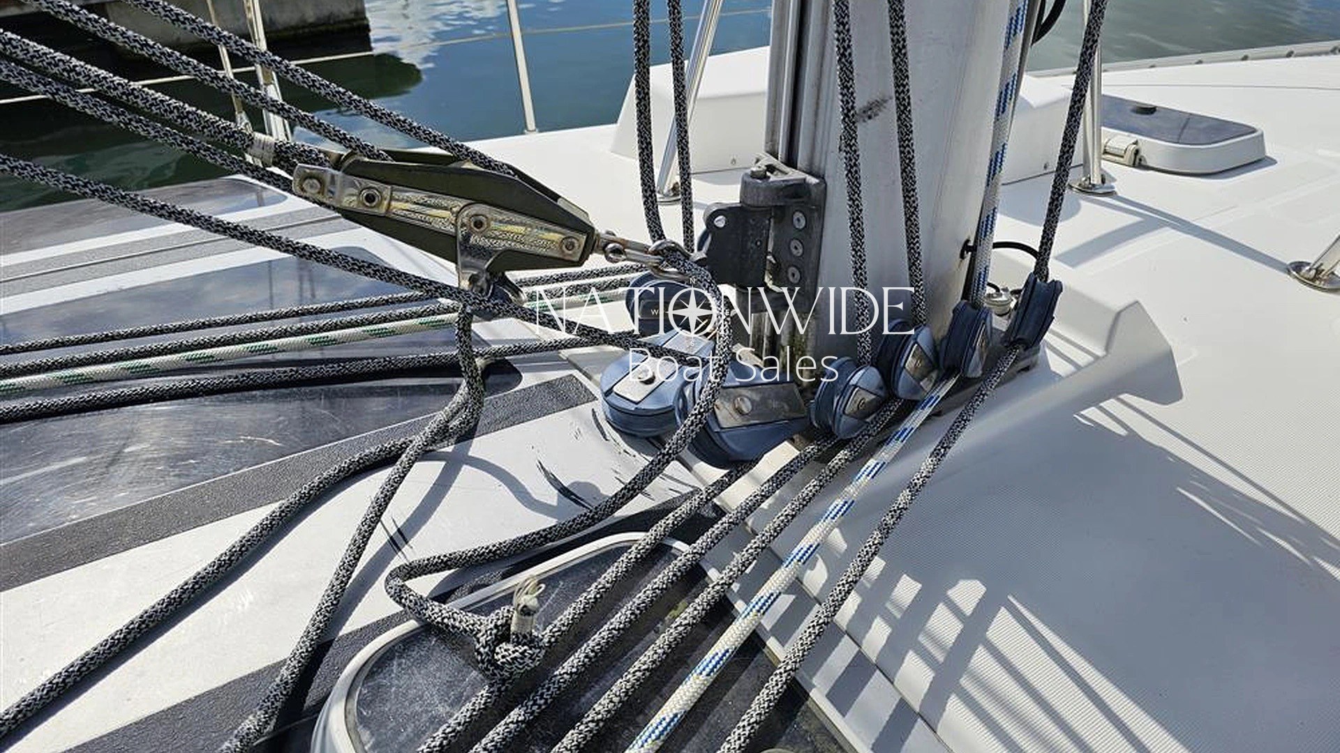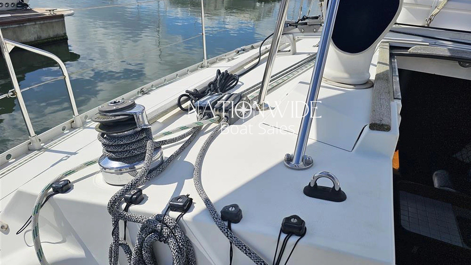 Her extensive inventory includes a Lowrance GPS/Chartploter, Raymarine wind, speed, depth compass, autopilot ICOM DSC, Raymarine Radar, and VHF. The galley features a Plastimo Neptune burner gas hob with oven and grill on gimbals, twin stainless steel sinks, and toploading twin fridges. Facilities include a Jabso sea toilet, electric windlass, 2x Lewmar 46 sheet winches, 2x Lewmar 30 halyard winches, and she’s had recent running rigging, Z Spars mast, boom and spinnaker pole, fenders, lines, and a whole lot more.