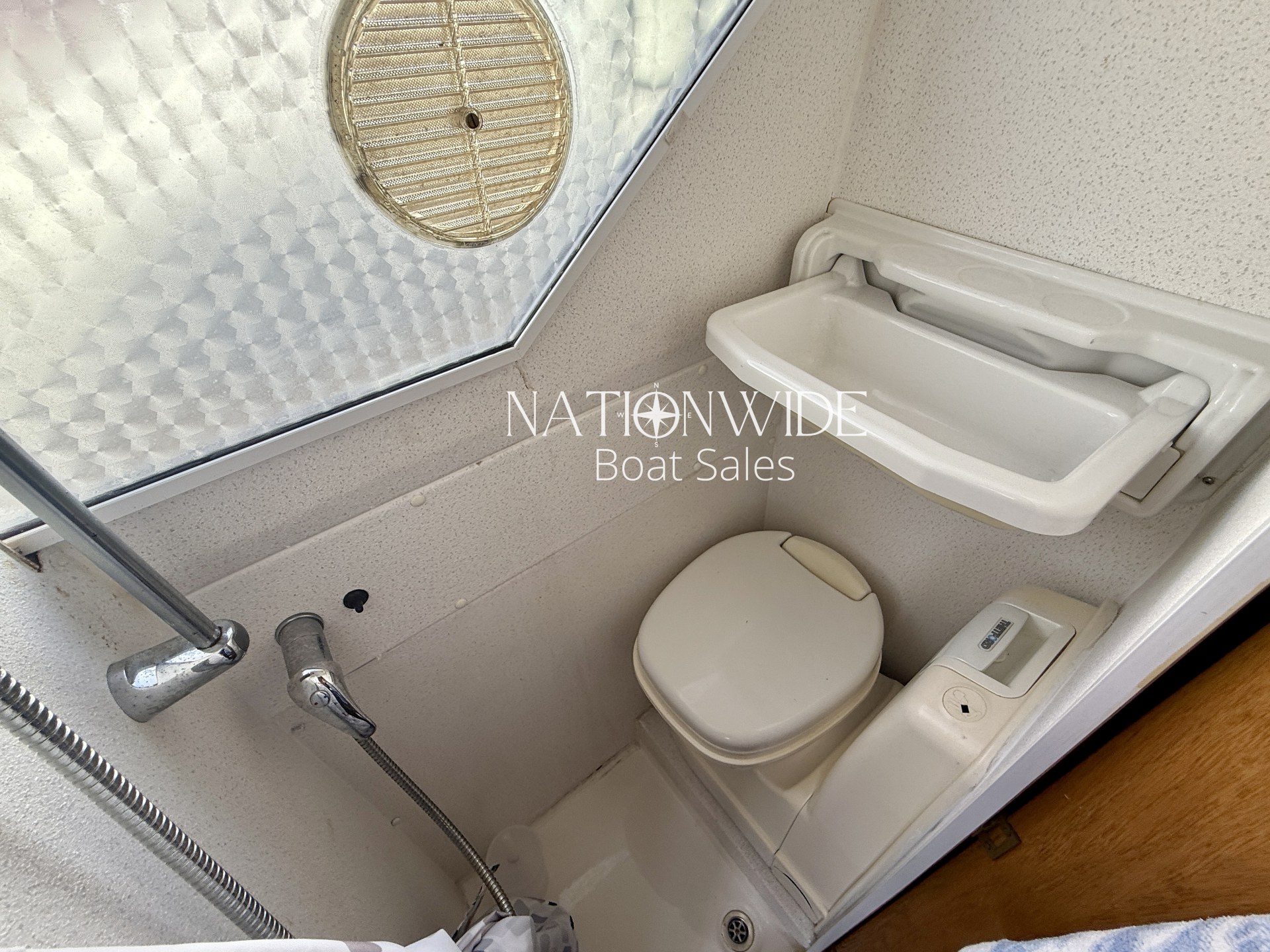 Step aboard and you’ll find a welcoming interior designed for both relaxation and practicality. She offers six berths, including an aft cabin with a make-up double bed, bow seating into a double, and a convertible dinette, making her a versatile choice for entertaining or family getaways. The galley is well appointed with laminate worktops, a Thetford cooker, and a 12v Waeco fridge, giving you all you need to prepare meals on the move.