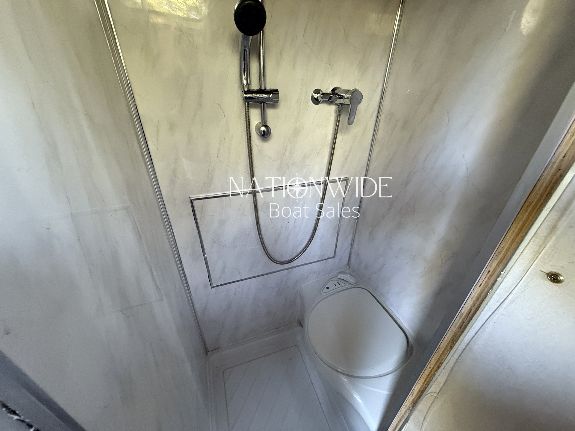 Jeanie is powered by a four-cylinder Mercedes diesel engine with keel cooling and a clutch-operated gearbox. She runs on both 12v and 240v systems, with one starter and one leisure battery. A solid fuel stove keeps the cabin cosy, while a new Ferroli gas boiler provides hot water. The approximate 80-gallon stainless steel water tank supports everyday needs onboard.