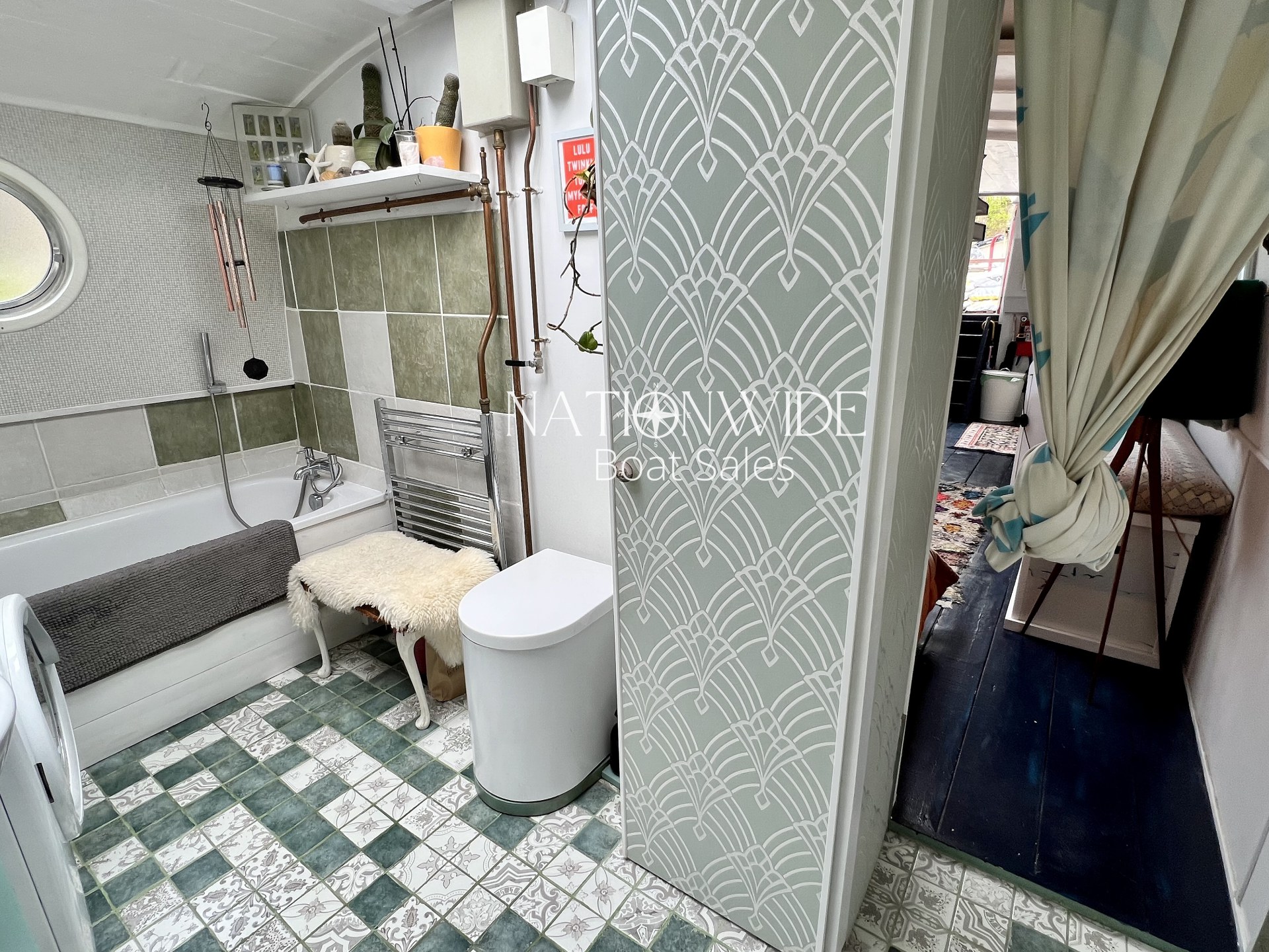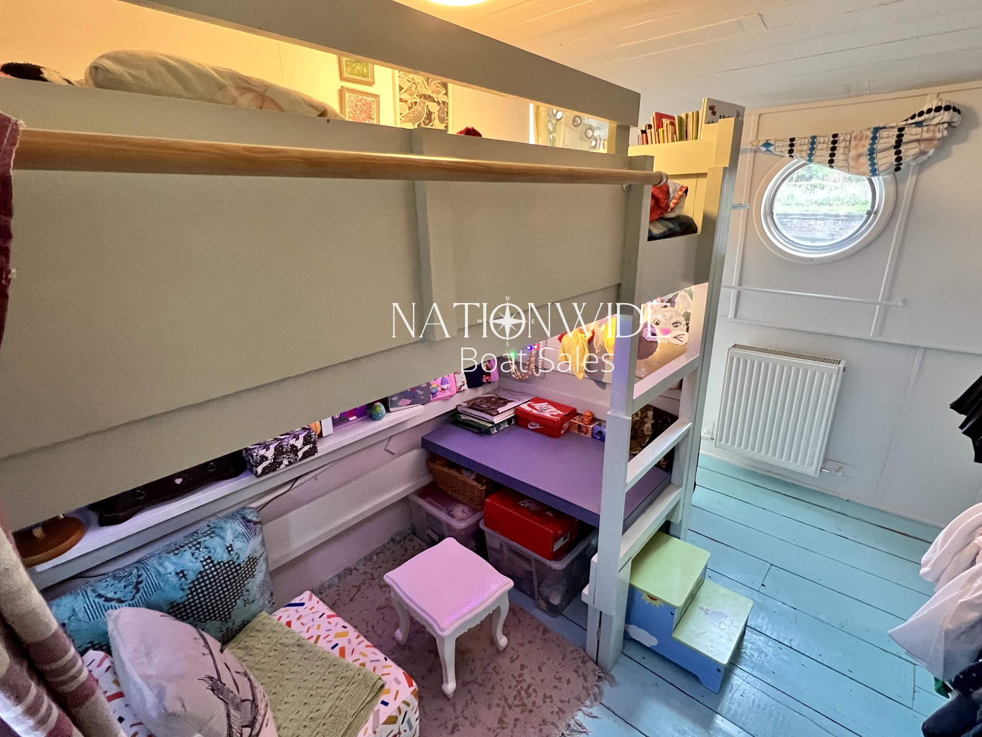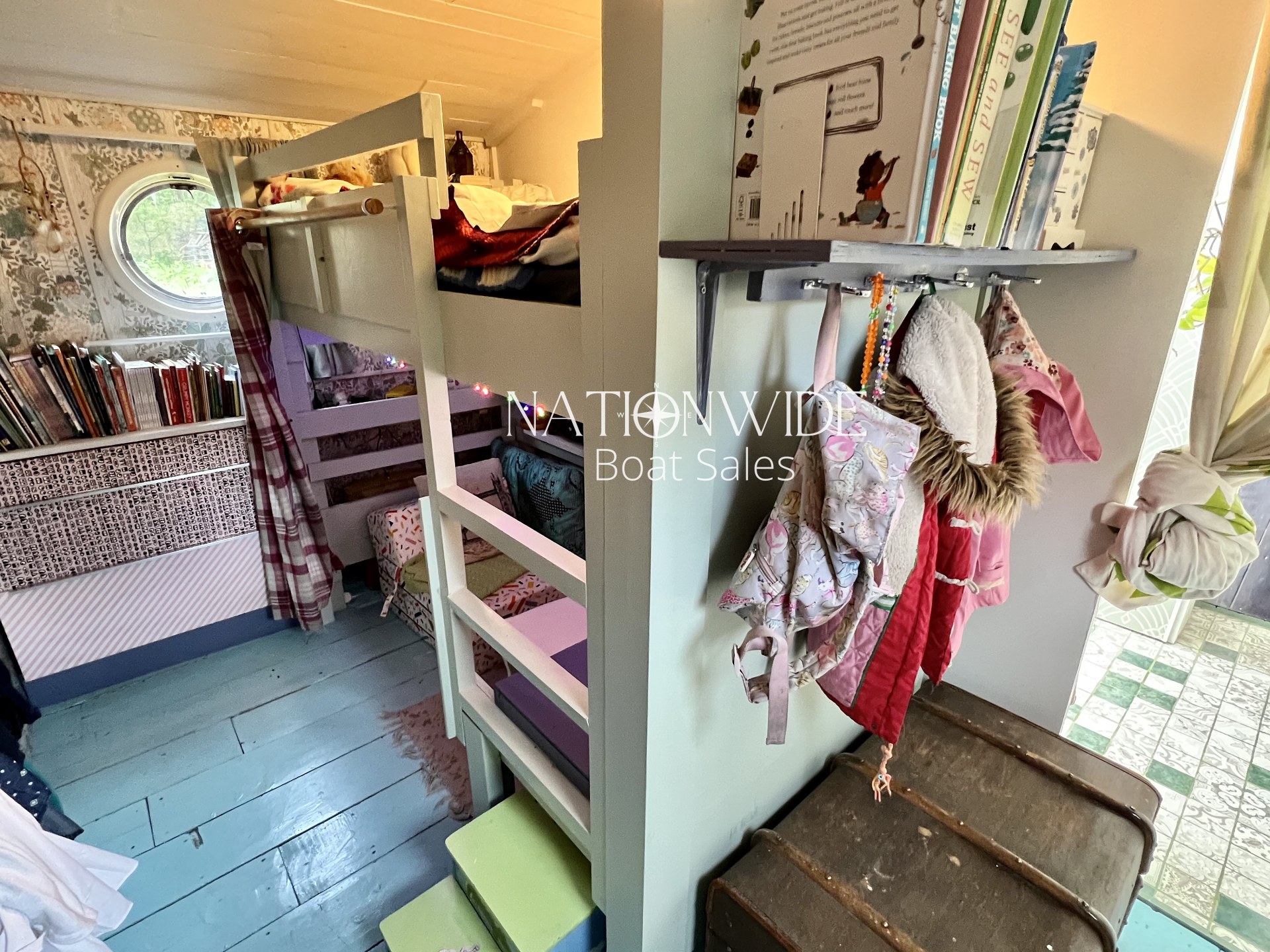 Upon entering we first find the open and spacious galley area offering a cooker, Shoreline fridge with freezer compartment and a double Belfast sink. Following through the saloon onto the bathroom where we find a compost toilet, bath with shower over, vanity basin and Hoover washing machine. We then come to the bedrooms, firstly we come to the second bedroom with a custom-built single bunk. Next, we have the master. Bedroom which offers a custom king size bed with underbed storage.