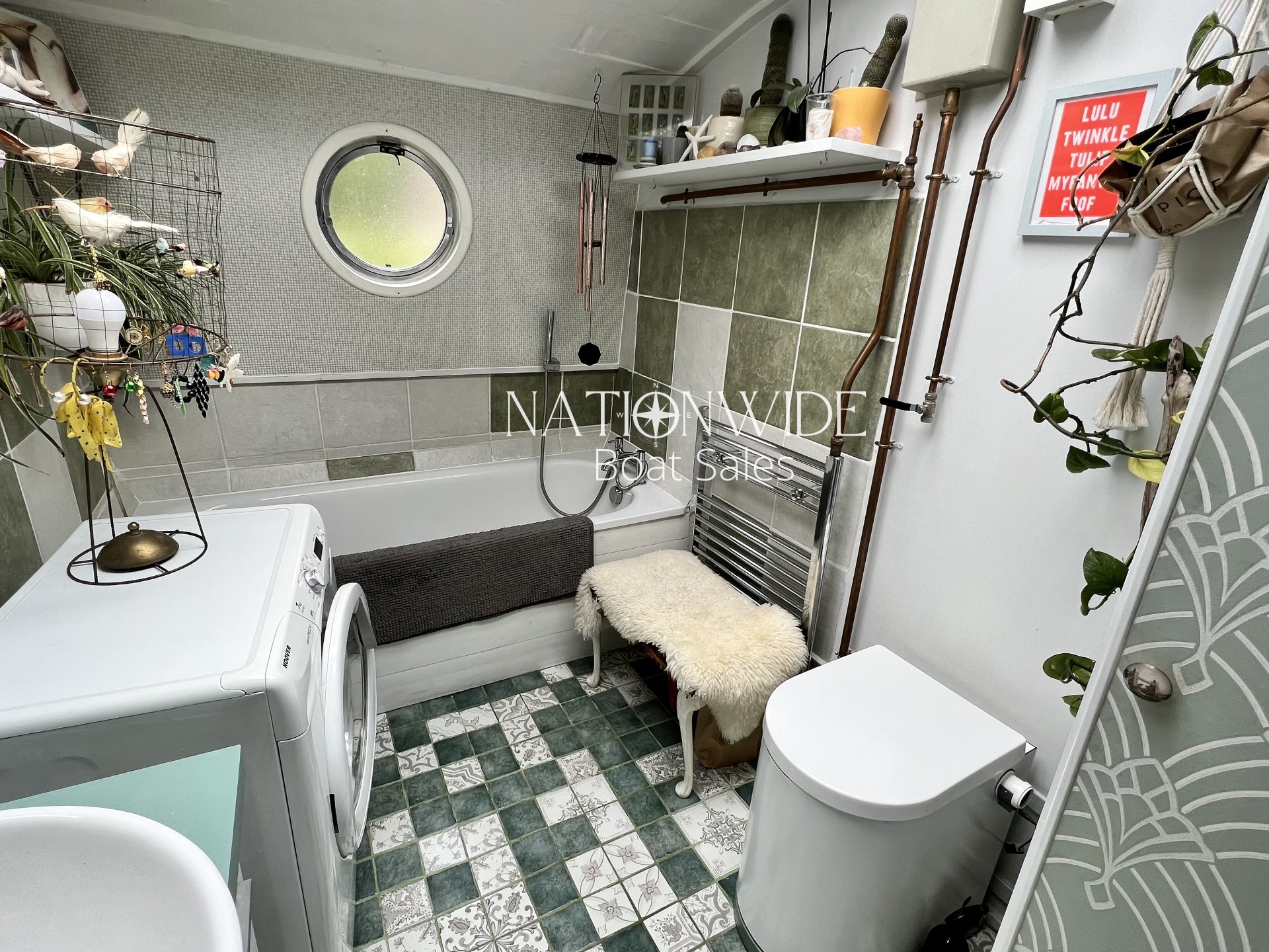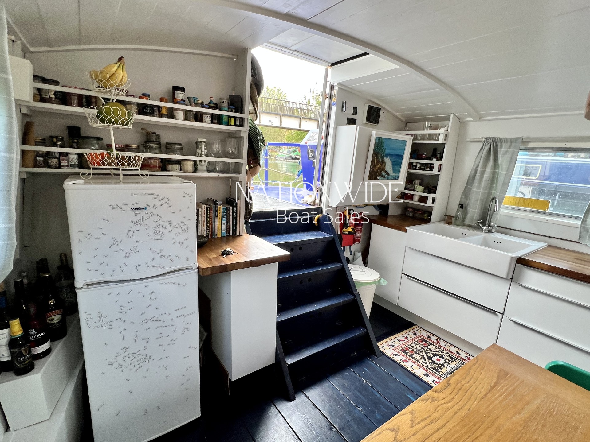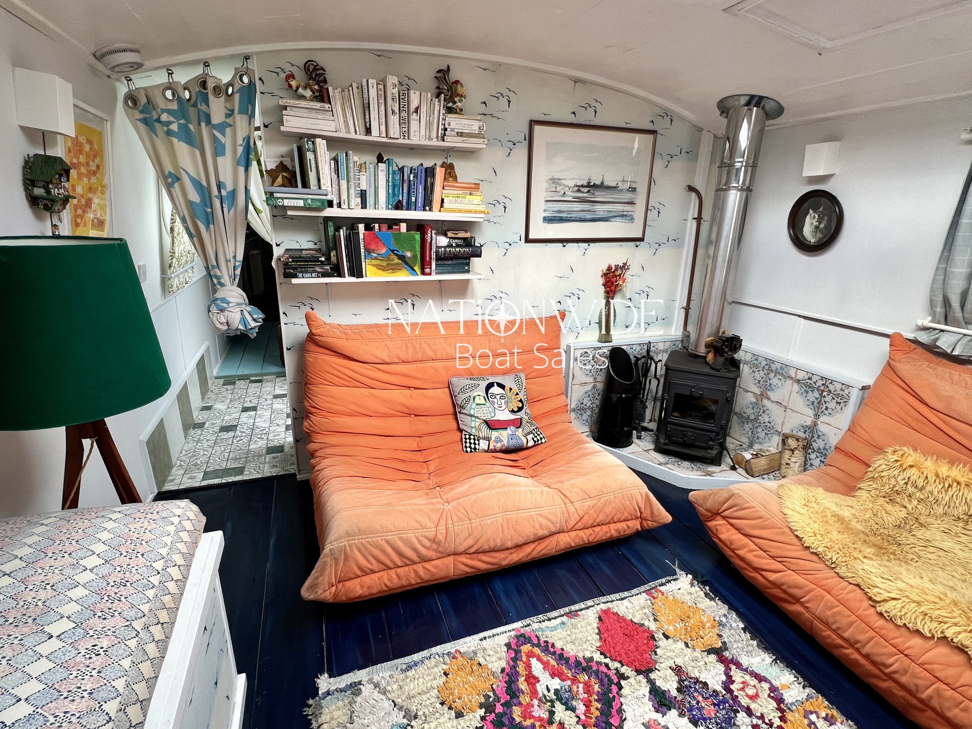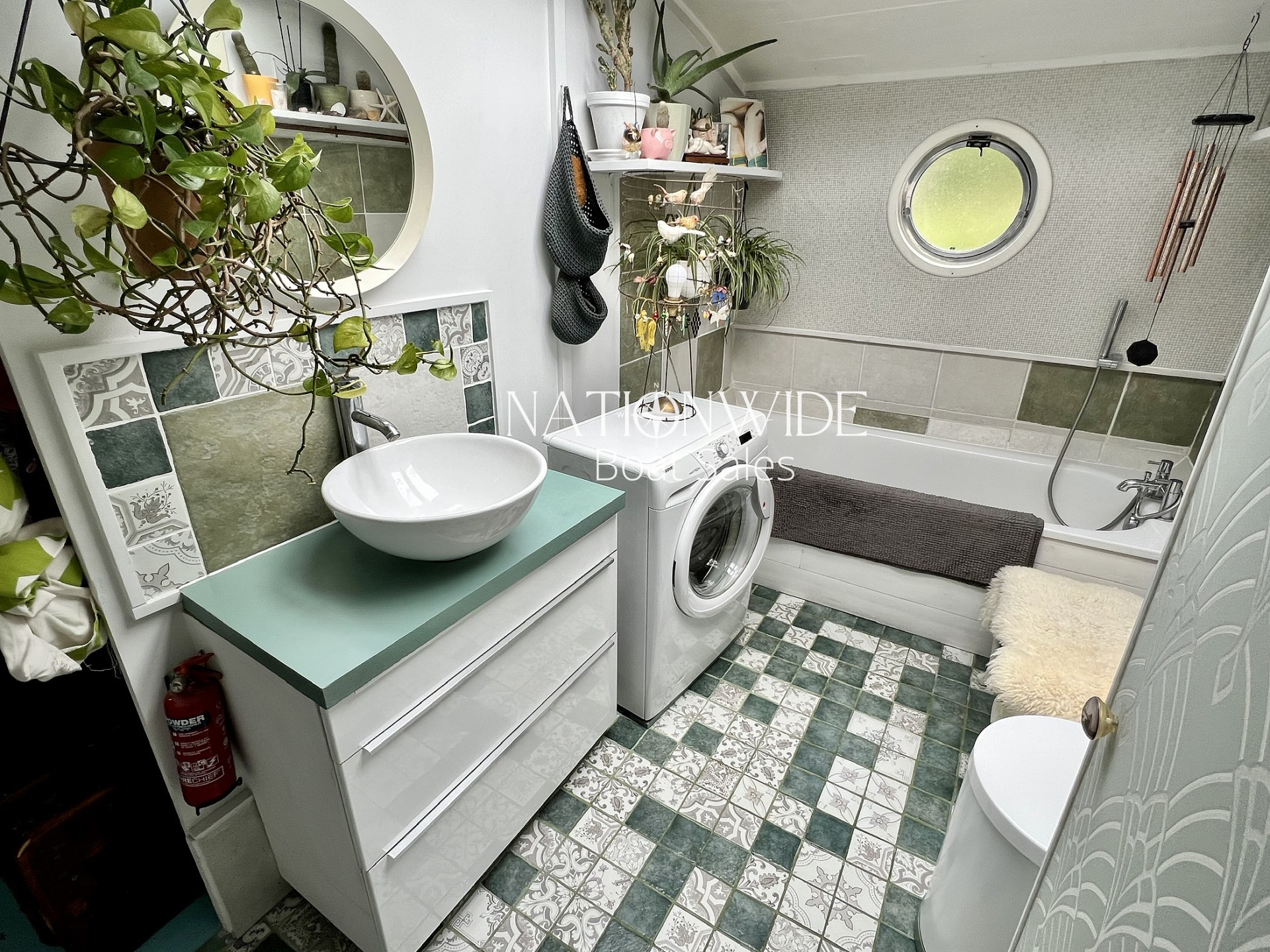 Upon entering we first find the open and spacious galley area offering a cooker, Shoreline fridge with freezer compartment and a double Belfast sink. Following through the saloon onto the bathroom where we find a compost toilet, bath with shower over, vanity basin and Hoover washing machine. We then come to the bedrooms, firstly we come to the second bedroom with a custom-built single bunk. Next, we have the master. Bedroom which offers a custom king size bed with underbed storage.