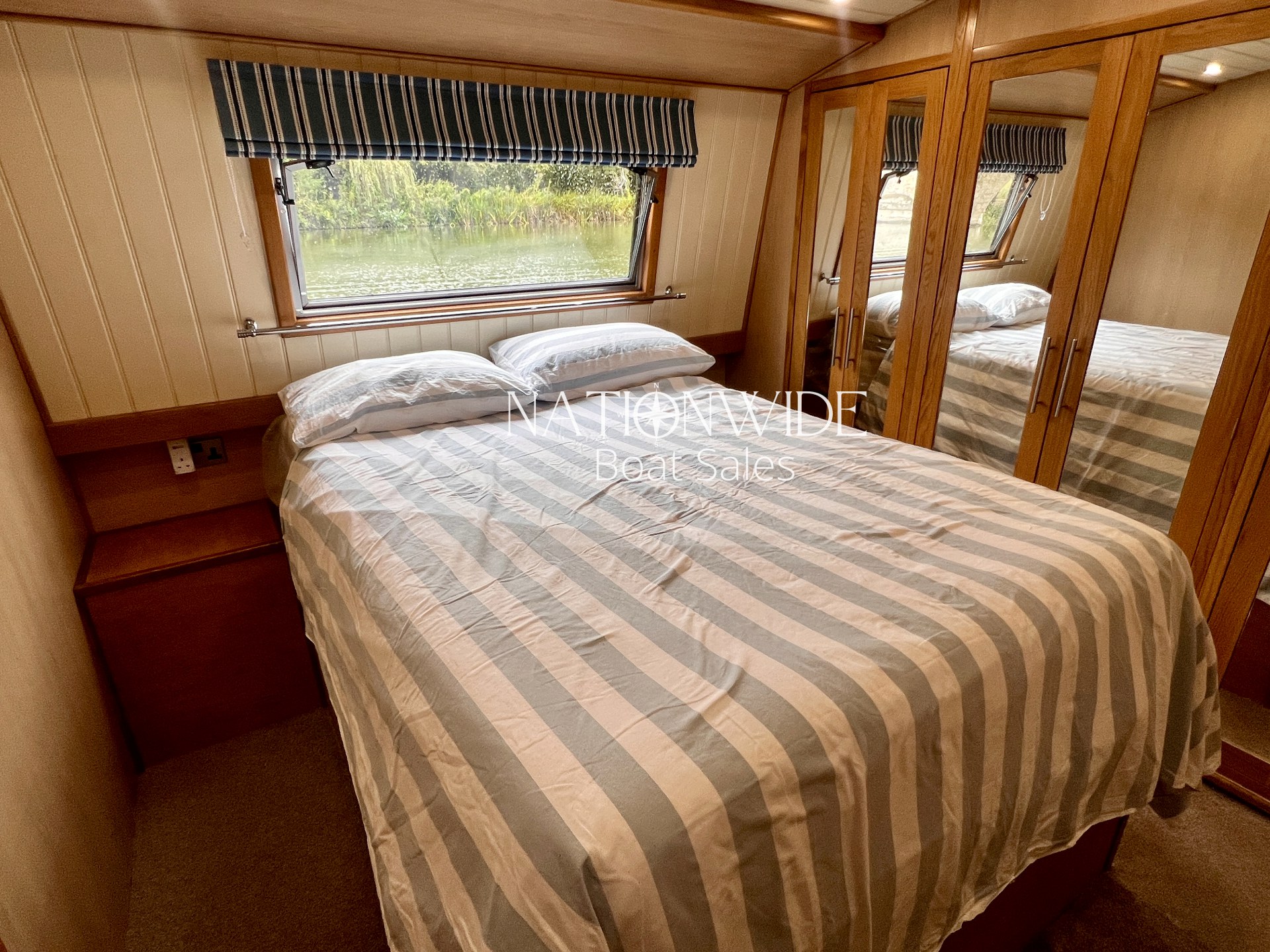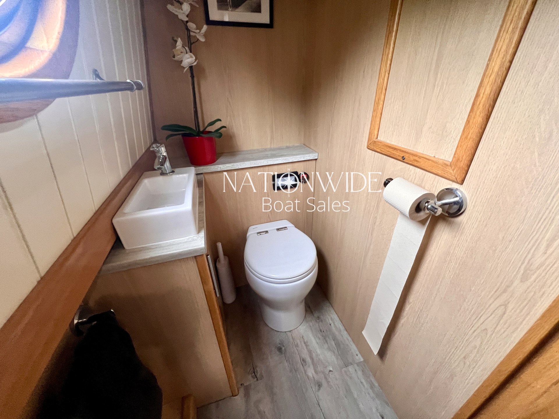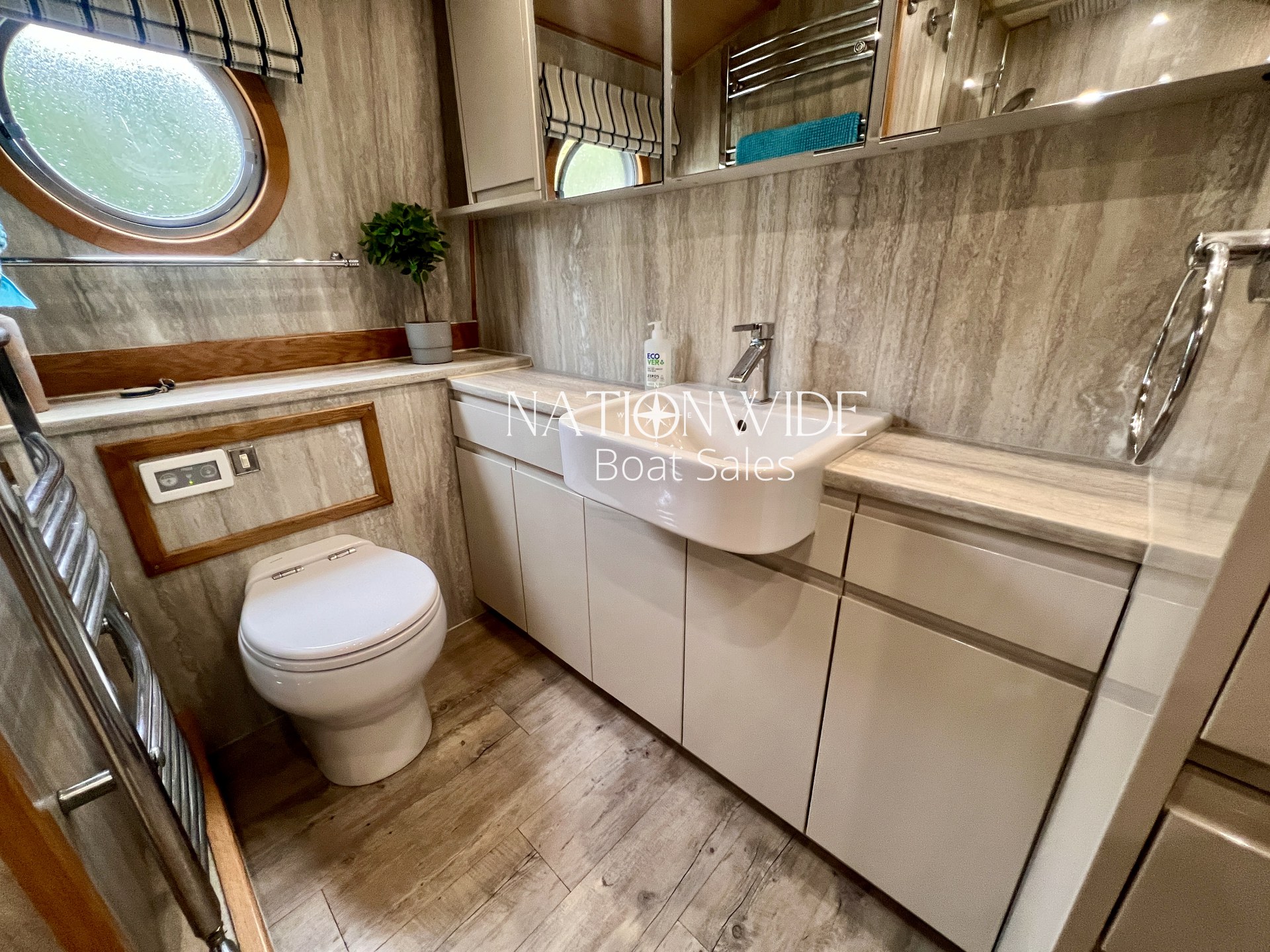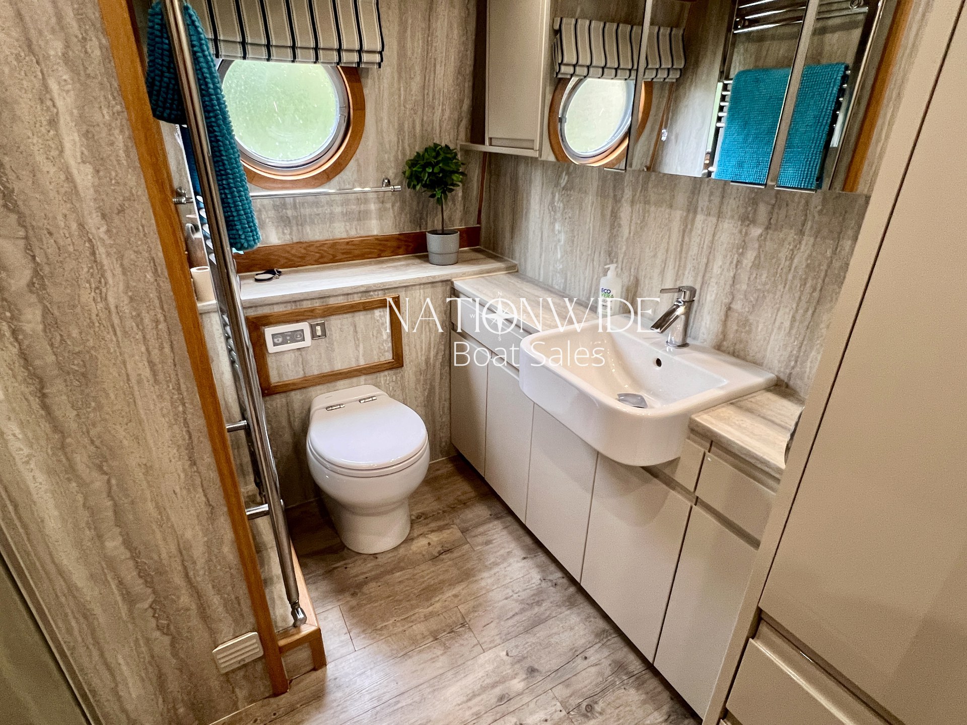 Within the galley we can find a Neff cooker, Neff induction hob with Neff extractor hood. Full length fridge & Freezer, Washer/Dryer, Neff Dishwasher, Microwave integrated into double oven and a CDA drinks fridge. There are two spacious cabins-one with a king-size bed to the bow and the other with a double bed. The master bedroom also has an ensuite with a pump out toilet and vanity basin. The main bathroom includes another pump out toilet, a spacious shower, a heated towel rail and vanity basin. The toilet systems including the tanks are all new.