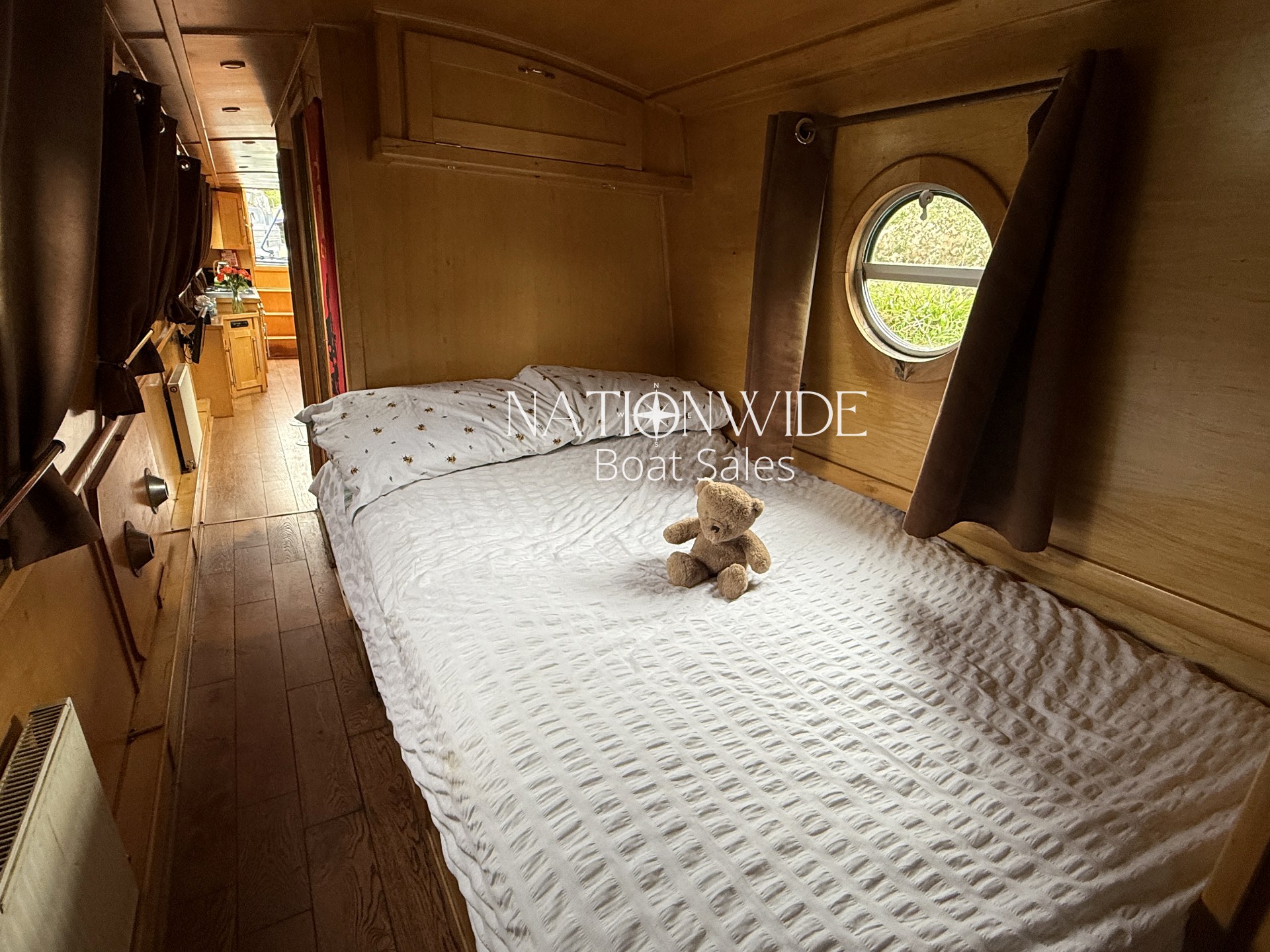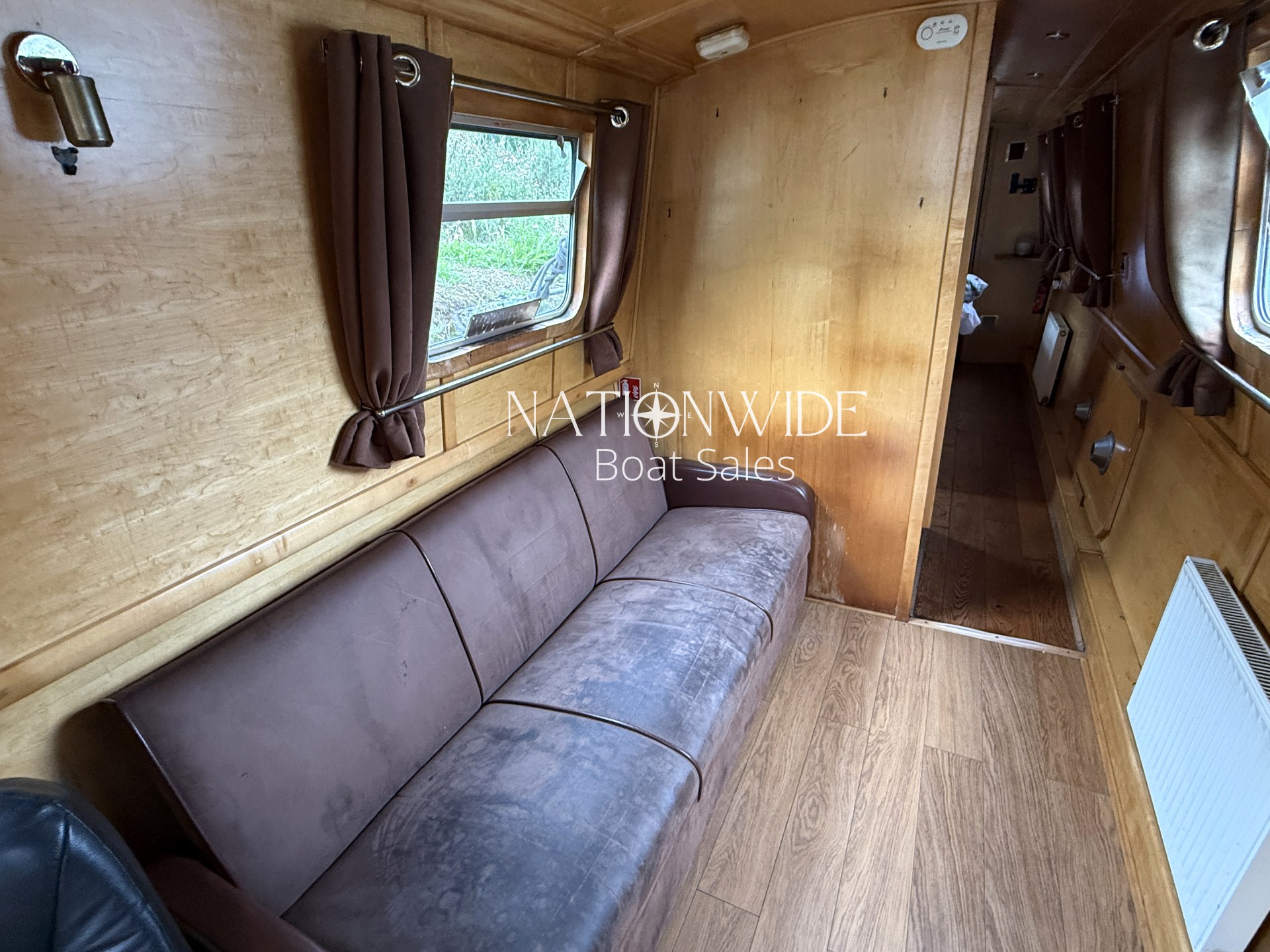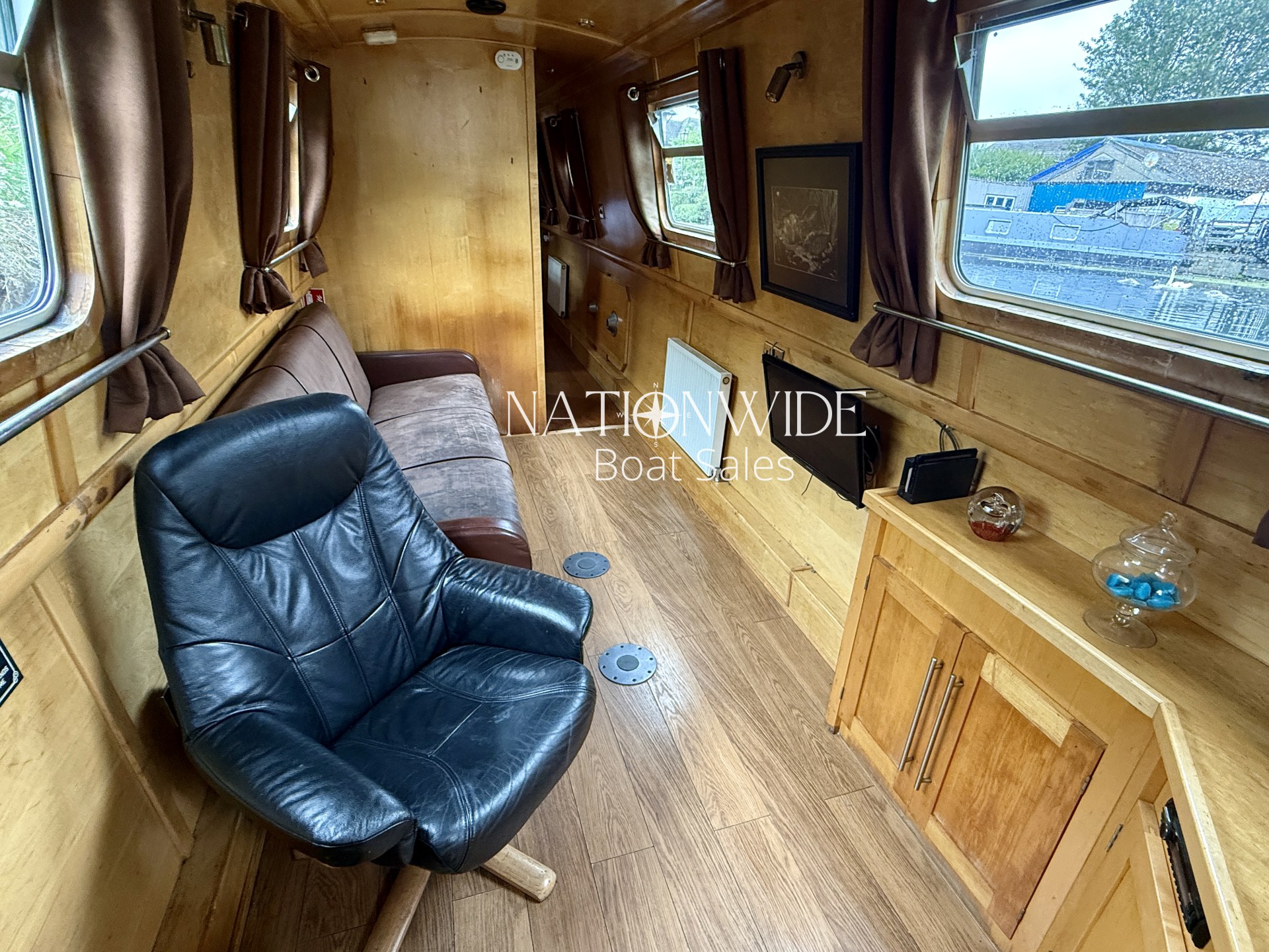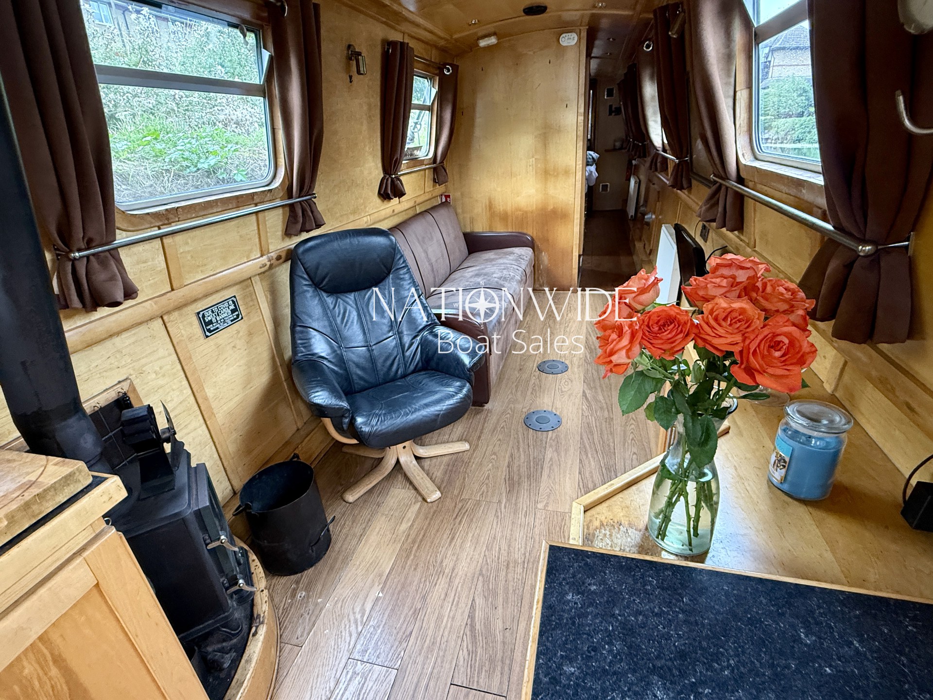 Built with a 10/6/5/4 steel hull, this boat features solid wood flooring, ply cabin sides, and sprayfoam insulation. Windows include both portholes and top-opening styles, adding flexibility and light. The cratch cover extends useful space at the bow. Although due for blacking (last completed in 2020), Lord Llangattock holds a Boat Safety Certificate valid until 2027, providing peace of mind for the years ahead.
