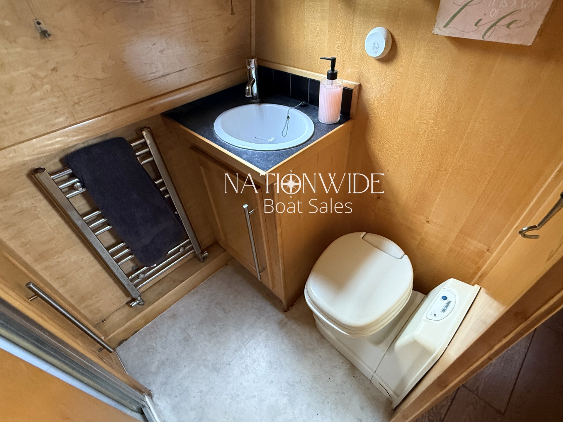 Heating and hot water come via a calorifier and a Hobbit 4kw solid fuel stove provides heatingss, with a Webasto central heating system onboard (currently not in operation). The stainless steel water tank holds approx. 100 gallons, ensuring a good supply for day-to-day life afloat.