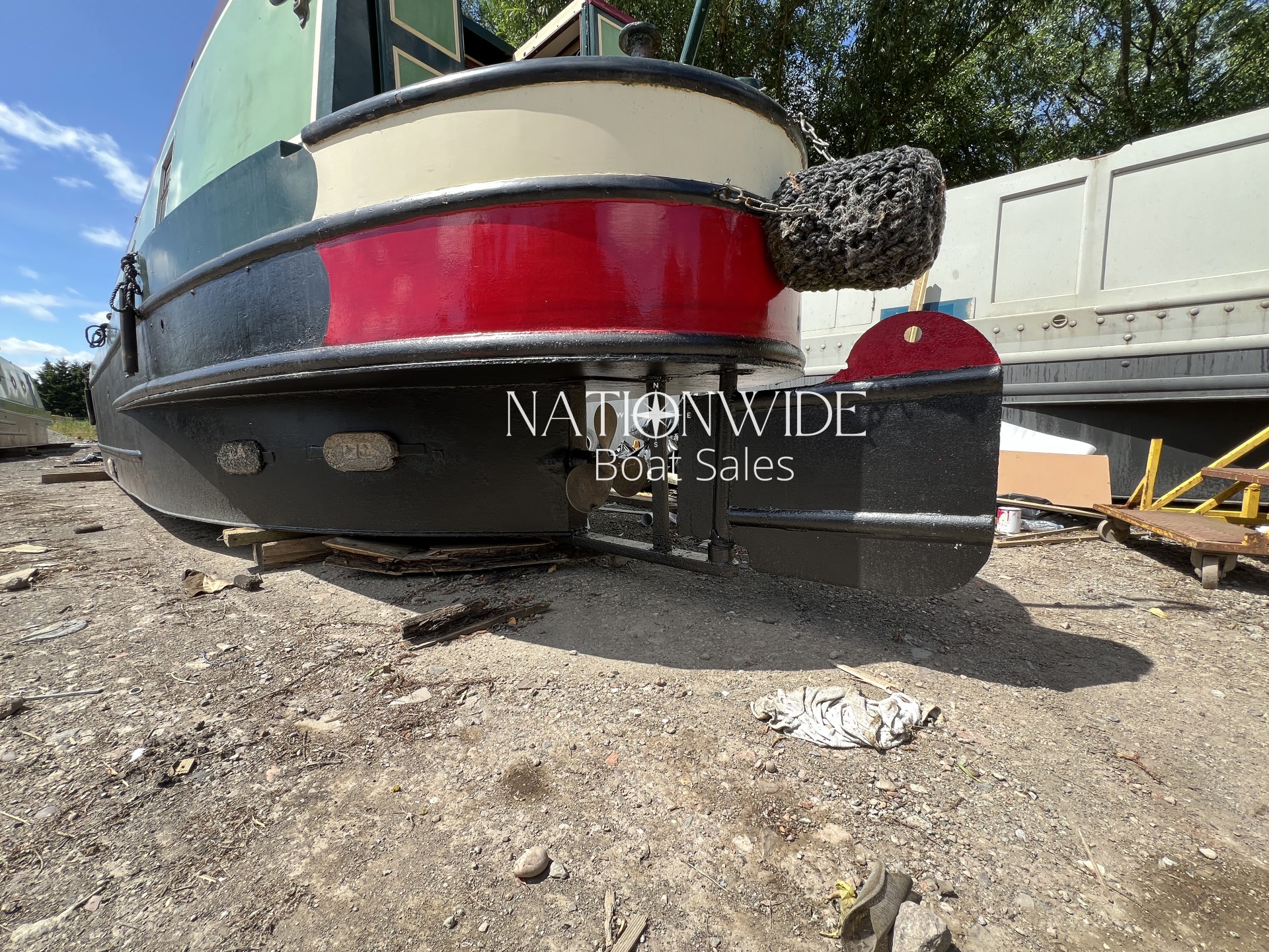 Lower Green is a charming 35ft traditional stern narrowboat, built in 1984, and now presented out of the water having recently been blacked. Compact yet practical, she offers a wonderful opportunity for someone seeking an affordable entry onto the waterways. With two berths on board and a newly fitted bathroom, she is well-suited as a cosy liveaboard or a weekend cruiser.
