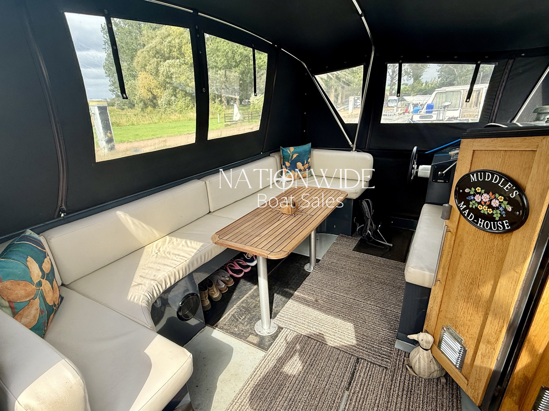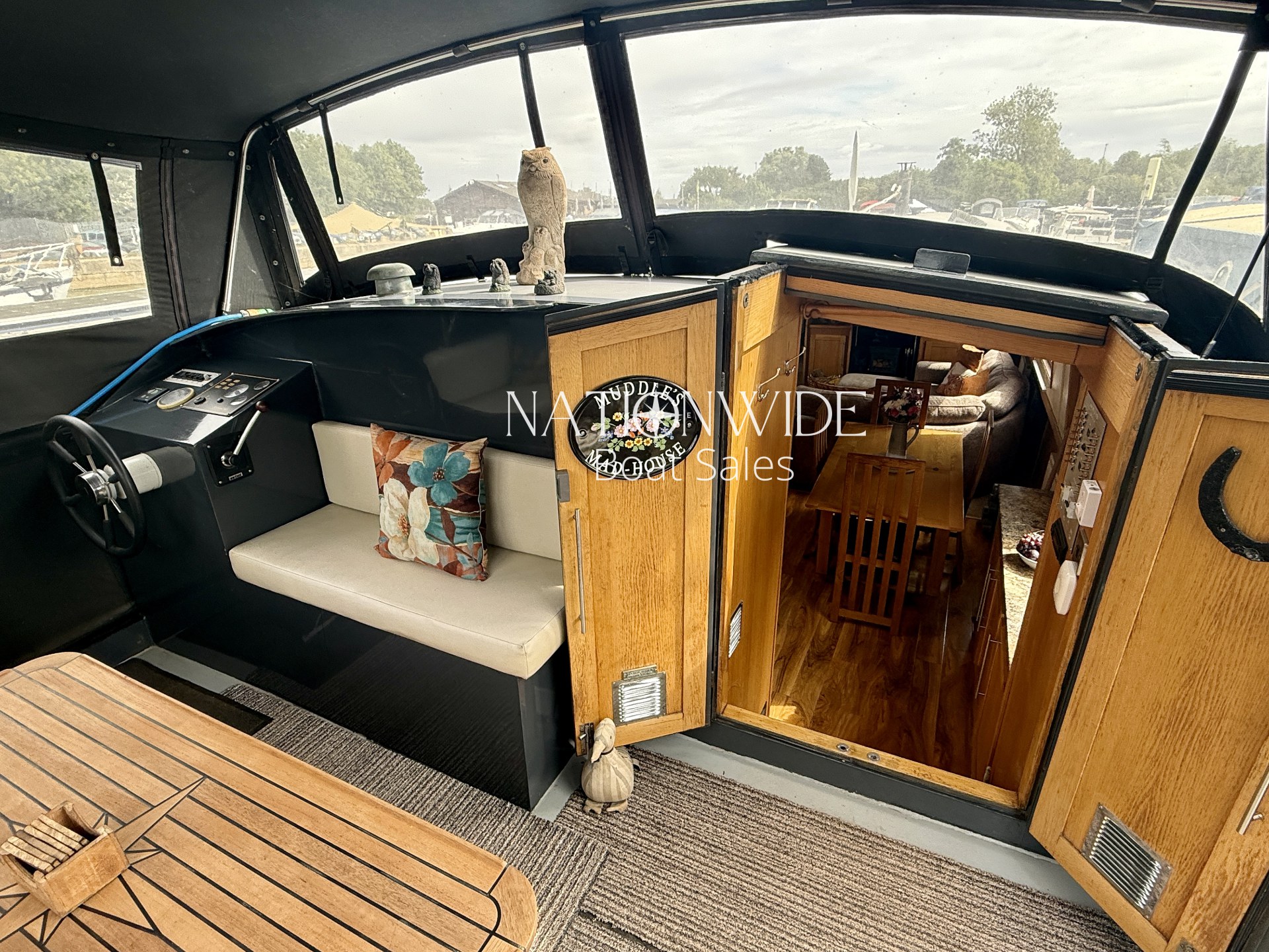 Powered by a Canaline 60hp four-cylinder engine with keel cooling, PRM 260 gearbox, and Vetus 95KGF bow thruster, she offers smooth handling and easy manoeuvrability. A 400-litre diesel tank ensures good range, while her 2023 blacking, pram and cratch covers, and side hatch add to her practicality.