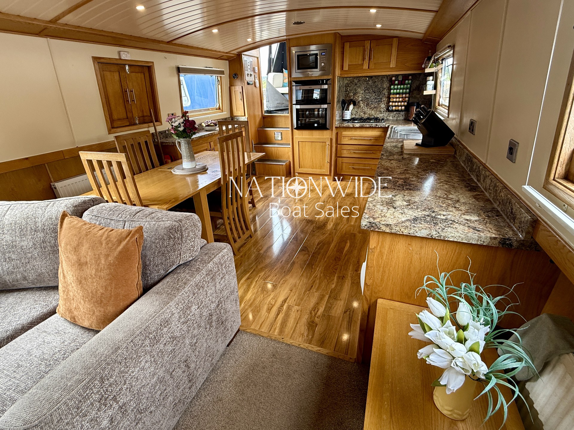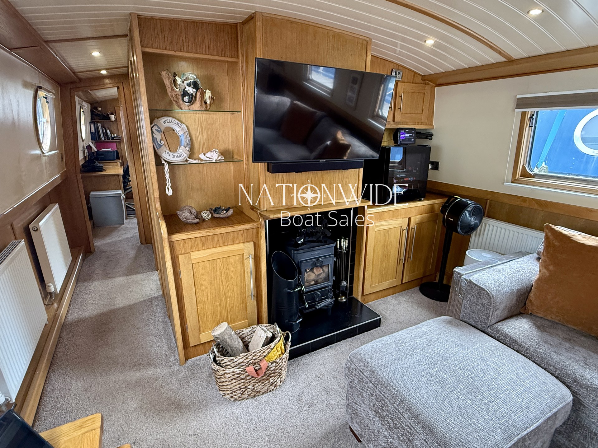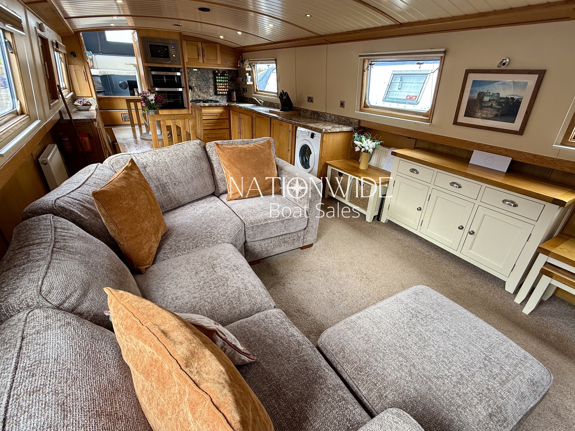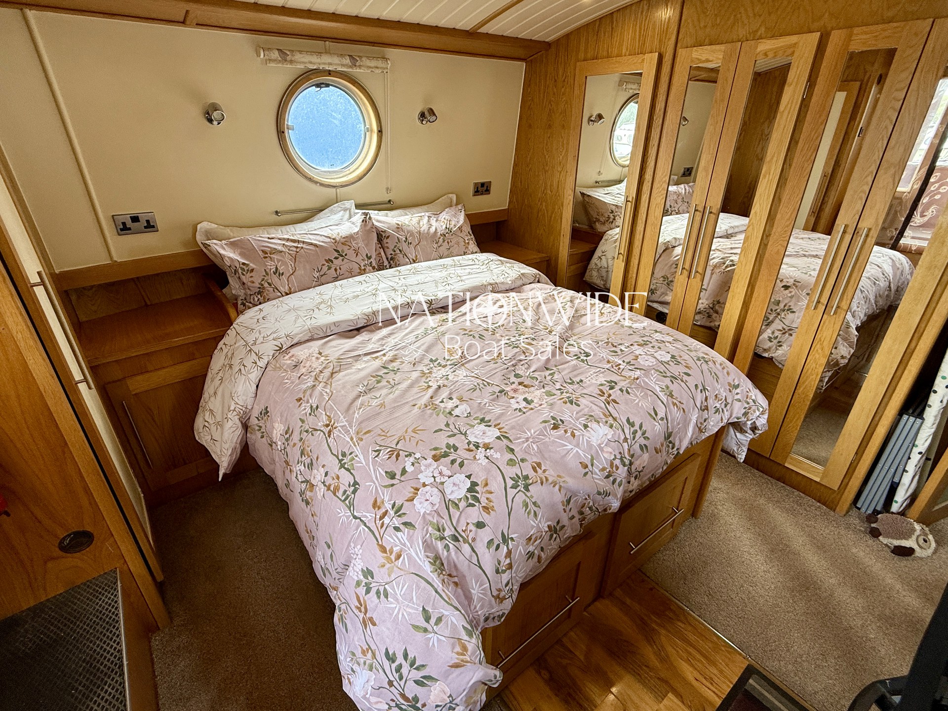 Mr Muddle is a beautifully crafted 60ft by 12ft widebeam cruiser, built by Collingwood in 2014 and designed with the popular reverse layout. Her light, spacious interior features oak-faced ply cabin sides, sprayfoam insulation, and a mix of laminate, carpet, and hardwood flooring, with top-opening windows and portholes providing excellent light and ventilation.