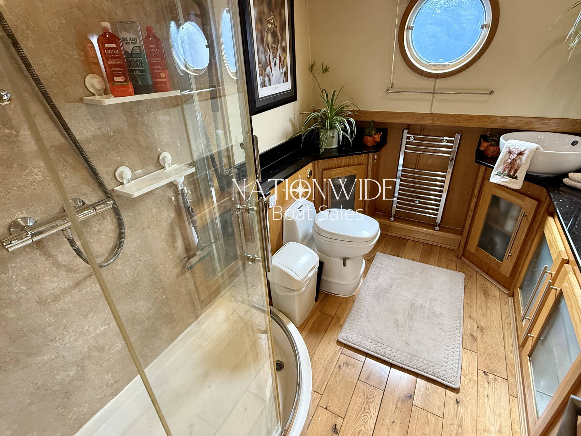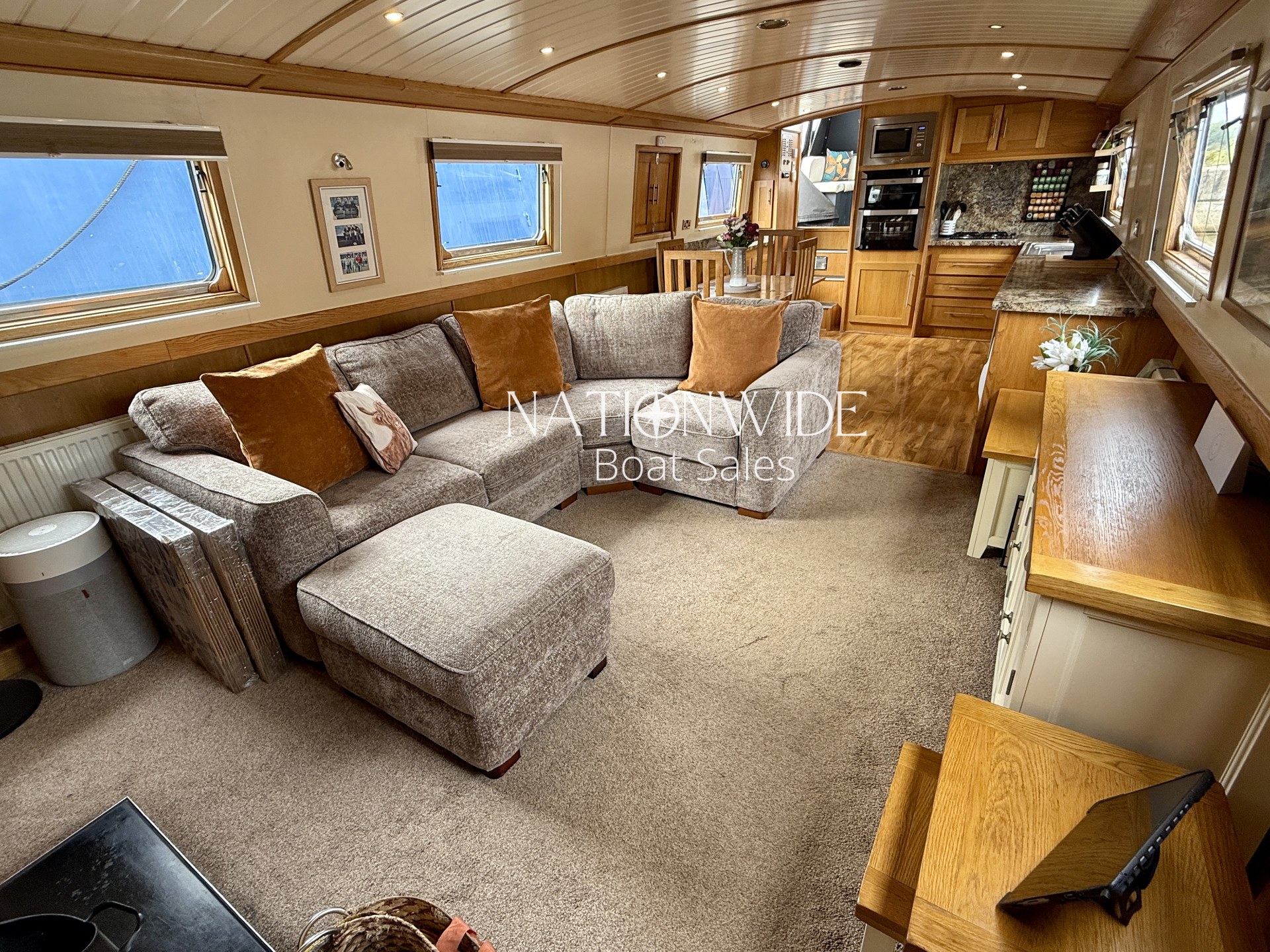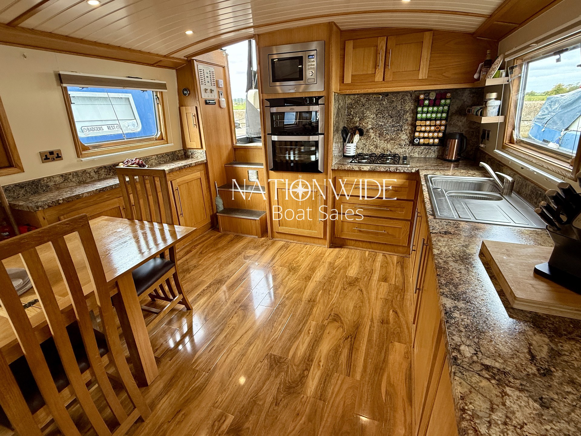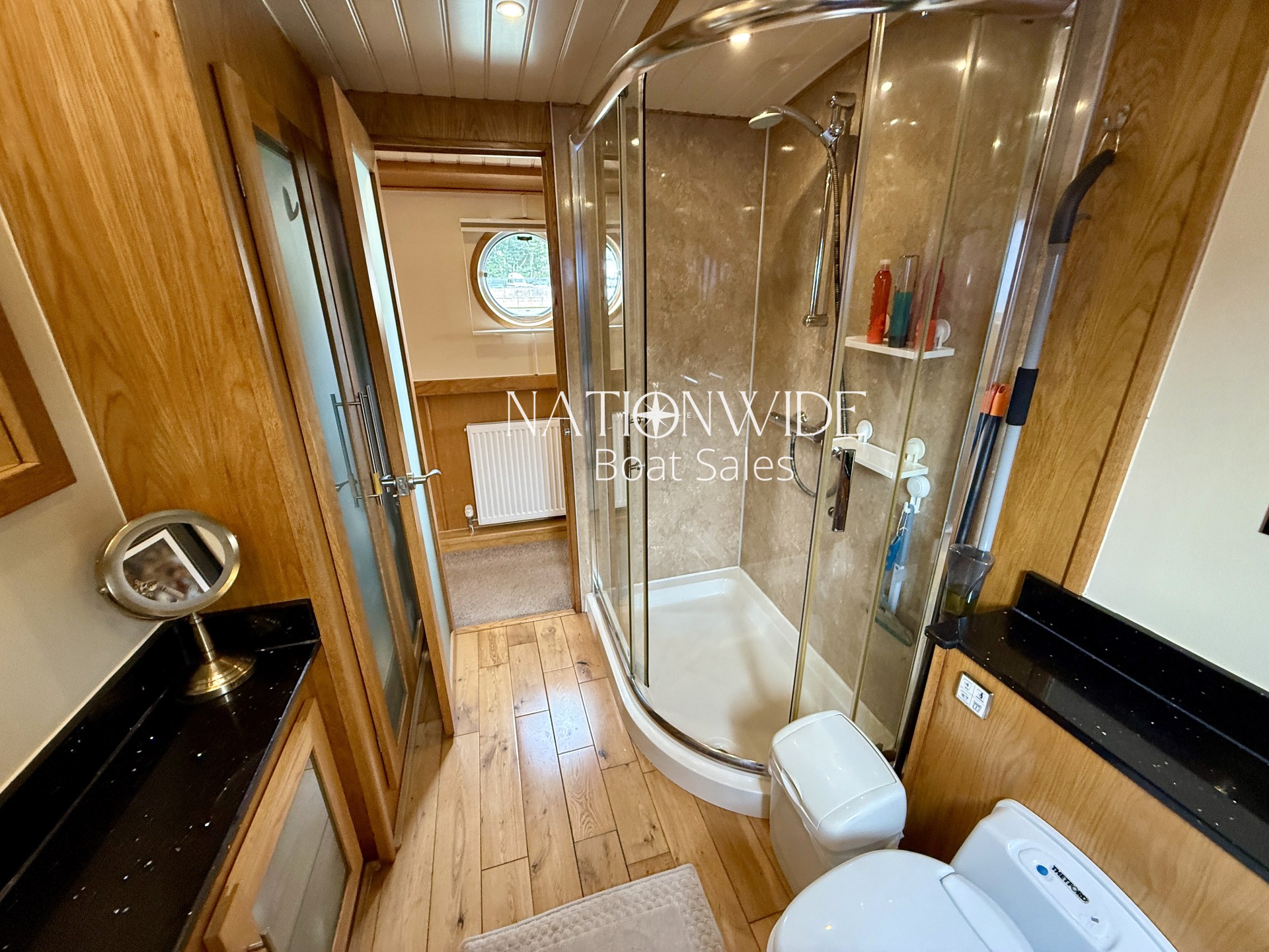 Mr Muddle is a beautifully crafted 60ft by 12ft widebeam cruiser, built by Collingwood in 2014 and designed with the popular reverse layout. Her light, spacious interior features oak-faced ply cabin sides, sprayfoam insulation, and a mix of laminate, carpet, and hardwood flooring, with top-opening windows and portholes providing excellent light and ventilation.