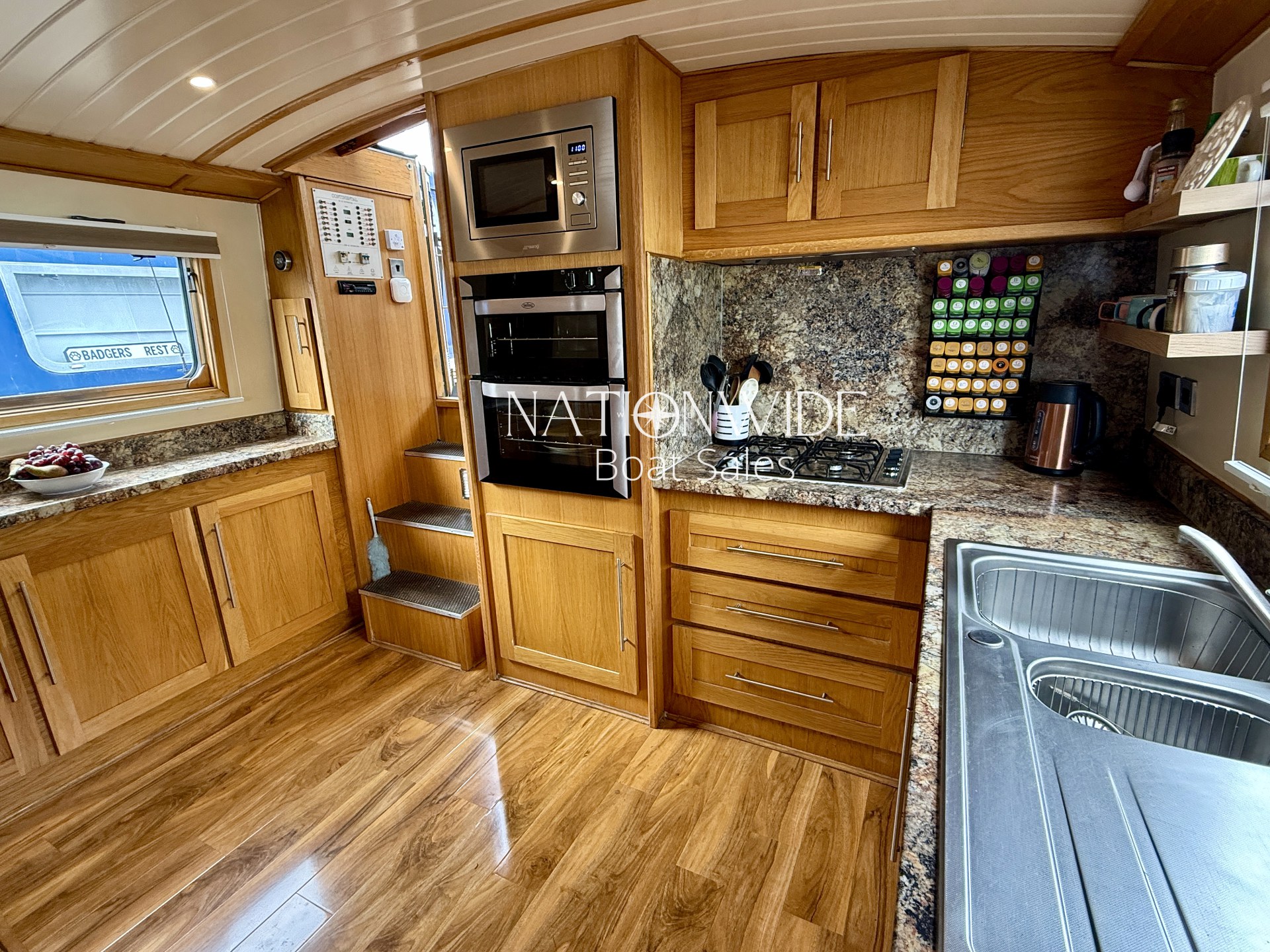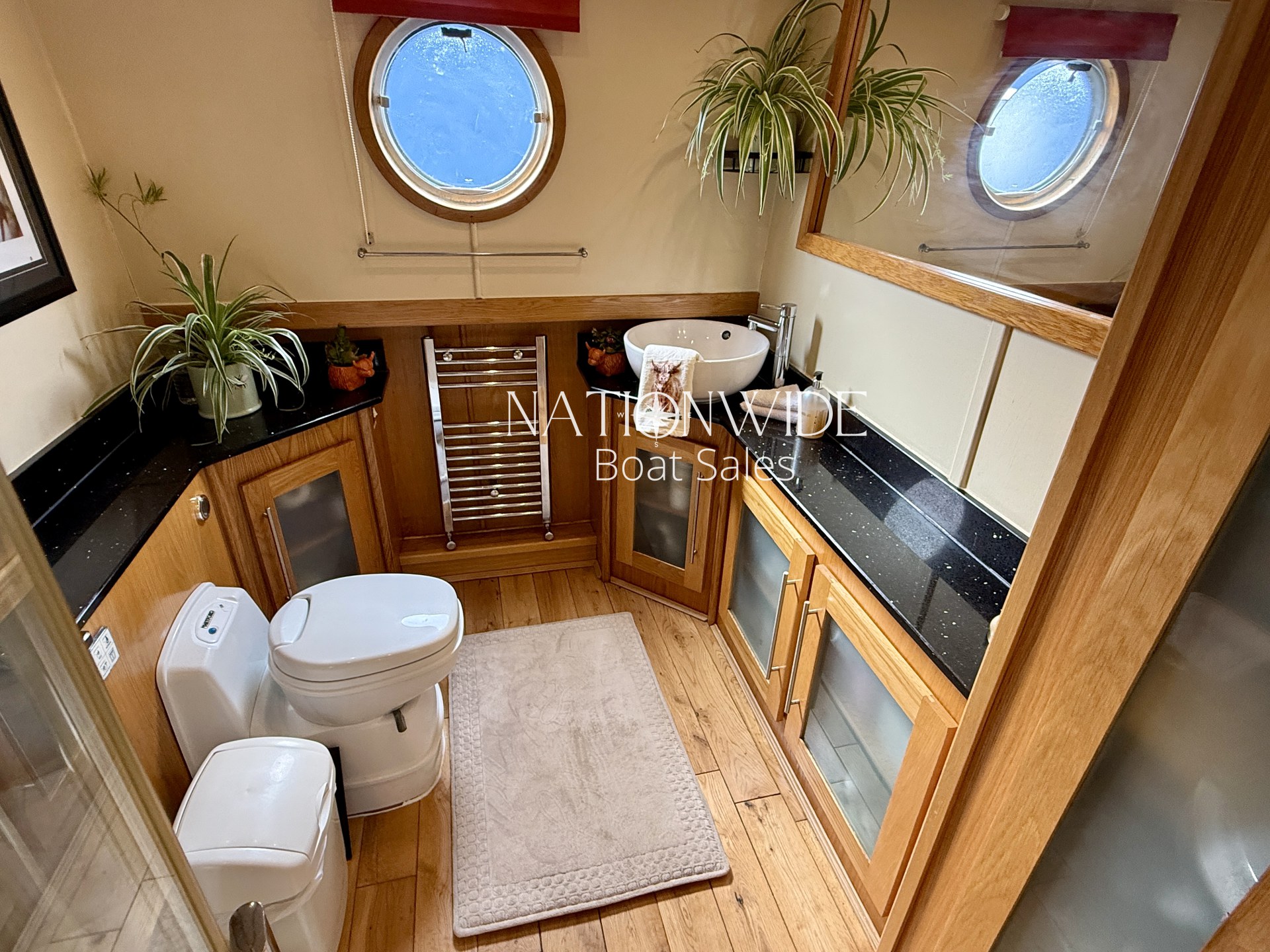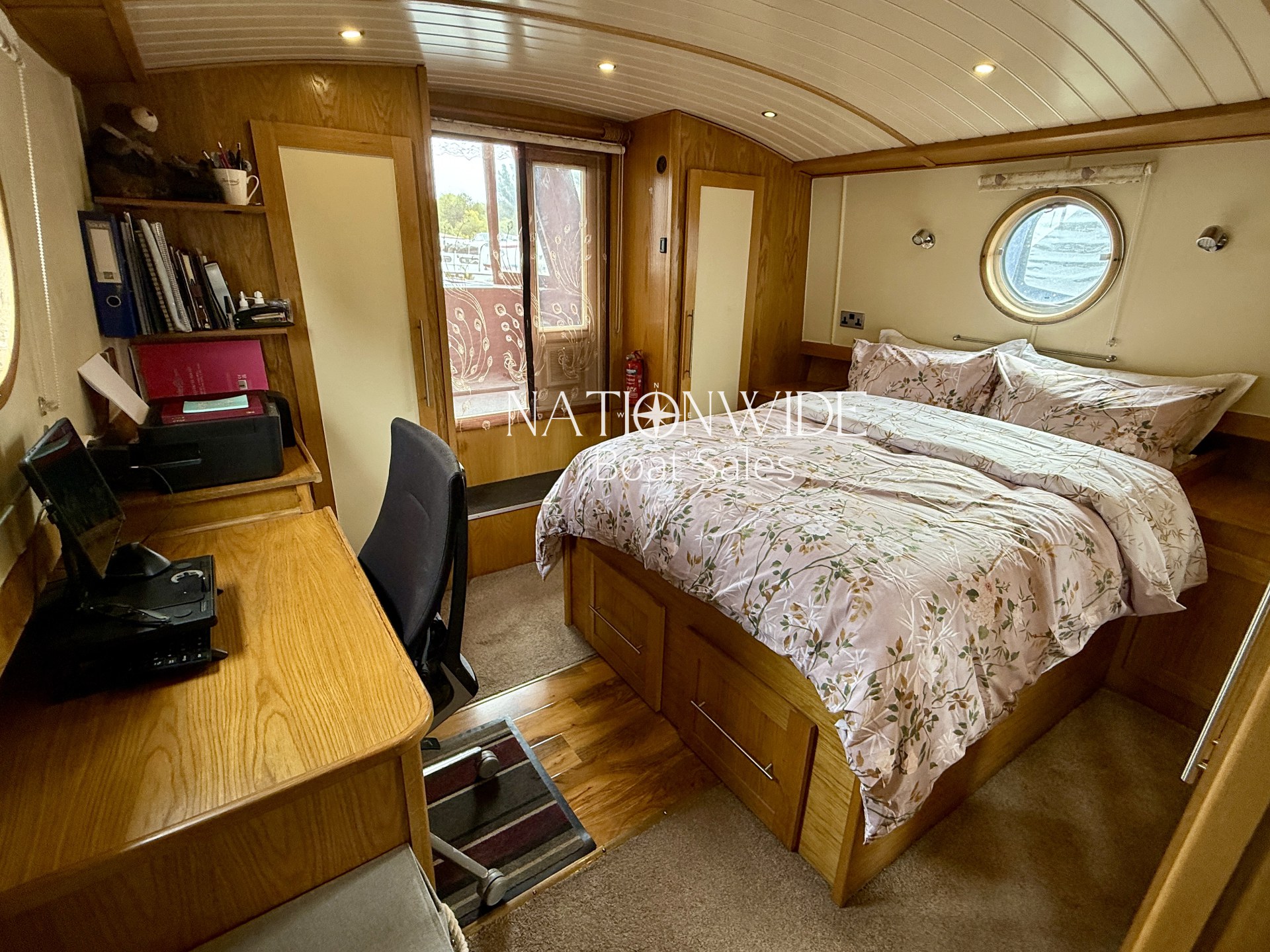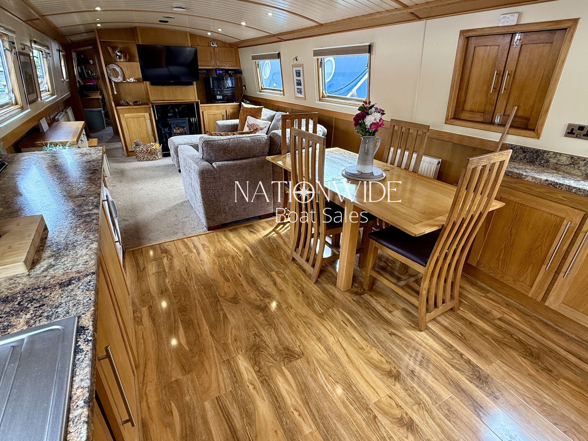 Mr Muddle is a beautifully crafted 60ft by 12ft widebeam cruiser, built by Collingwood in 2014 and designed with the popular reverse layout. Her light, spacious interior features oak-faced ply cabin sides, sprayfoam insulation, and a mix of laminate, carpet, and hardwood flooring, with top-opening windows and portholes providing excellent light and ventilation.