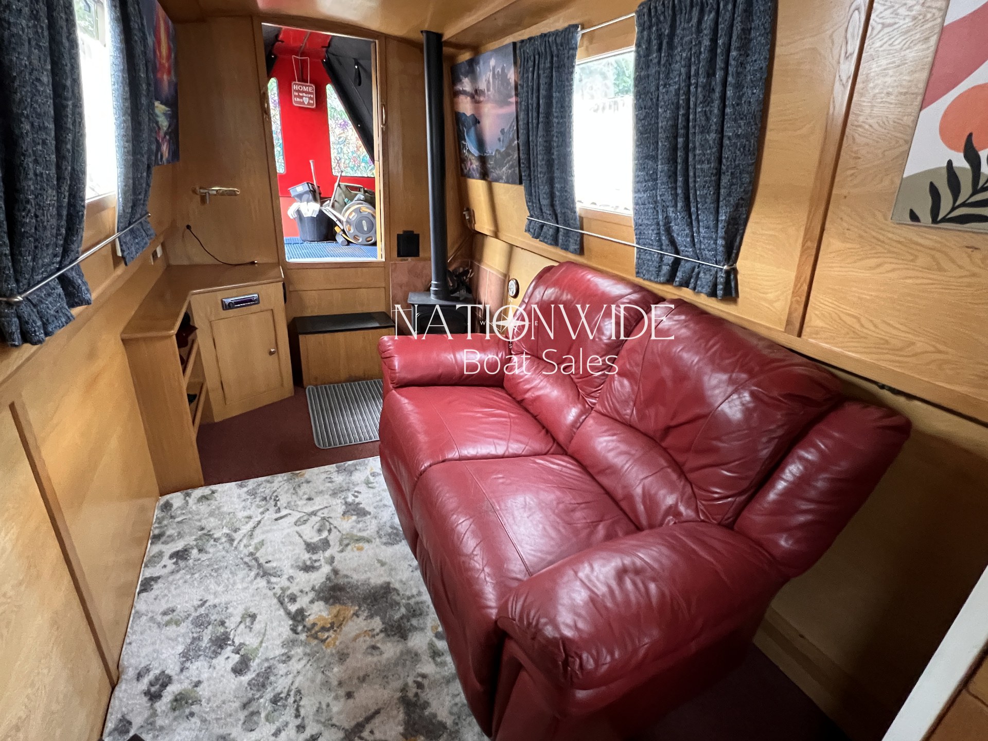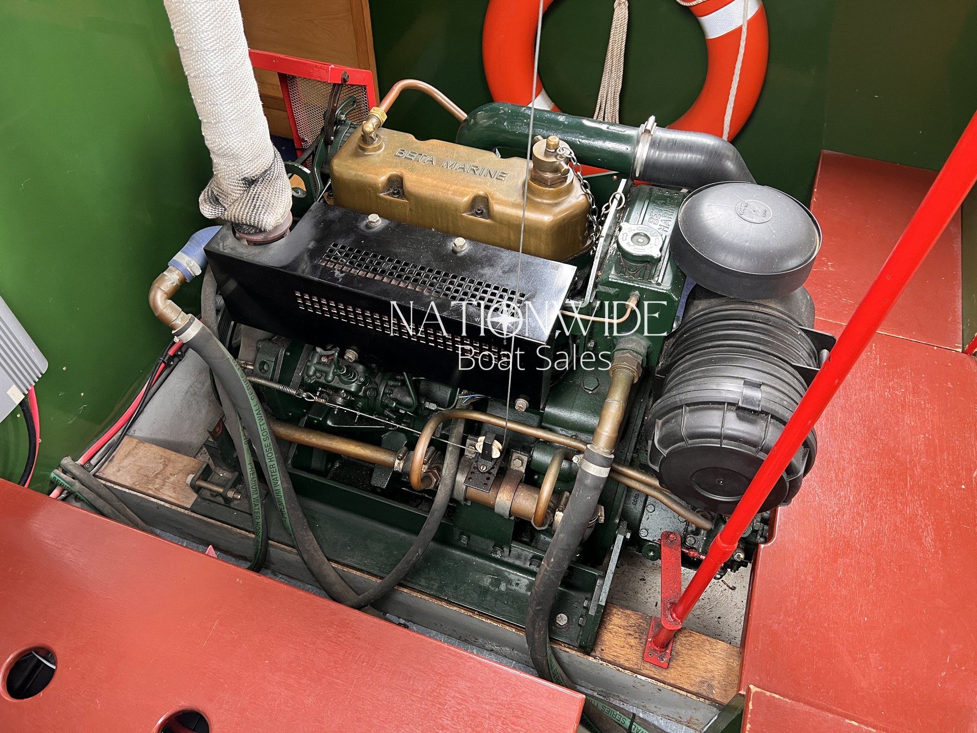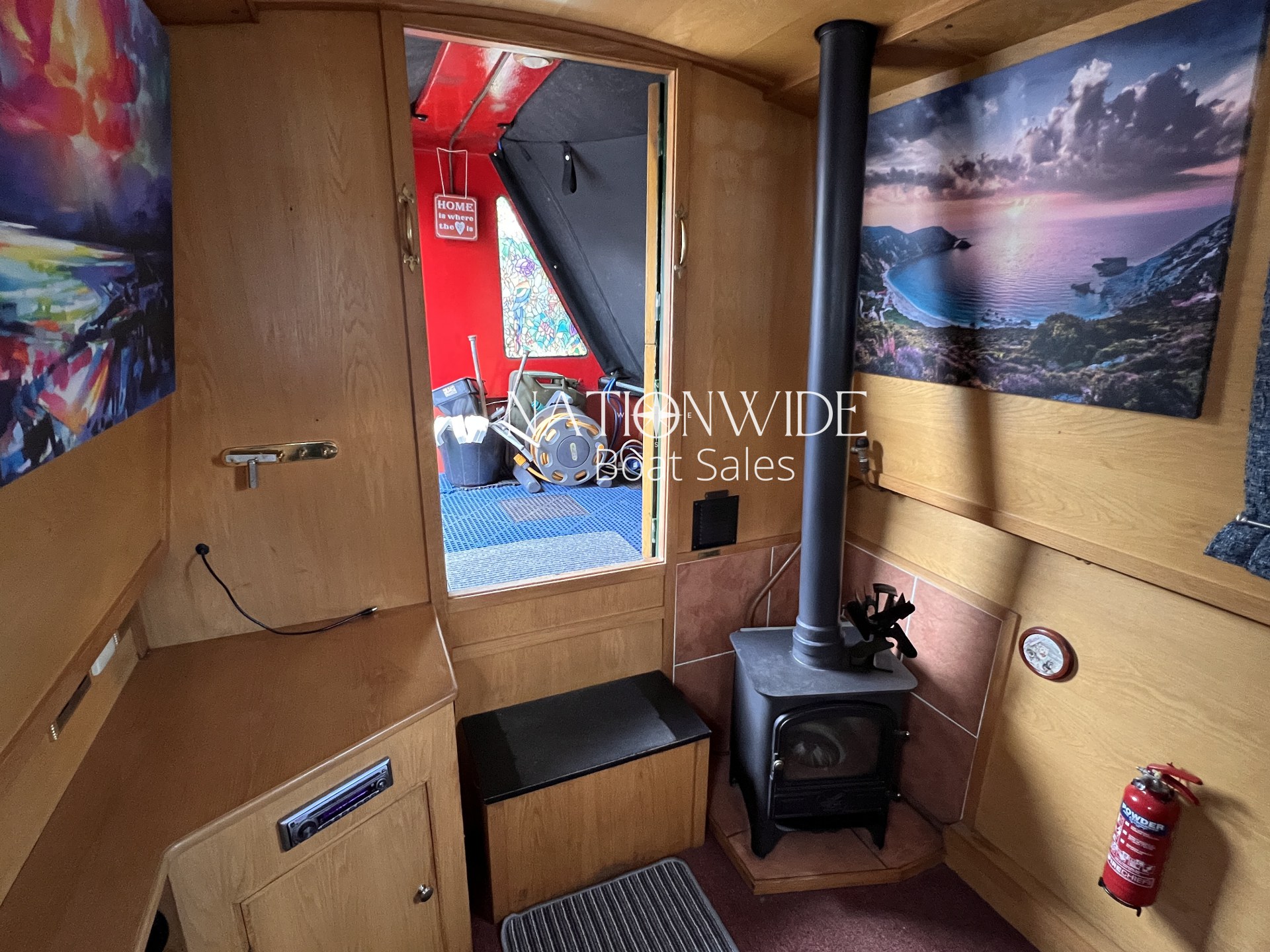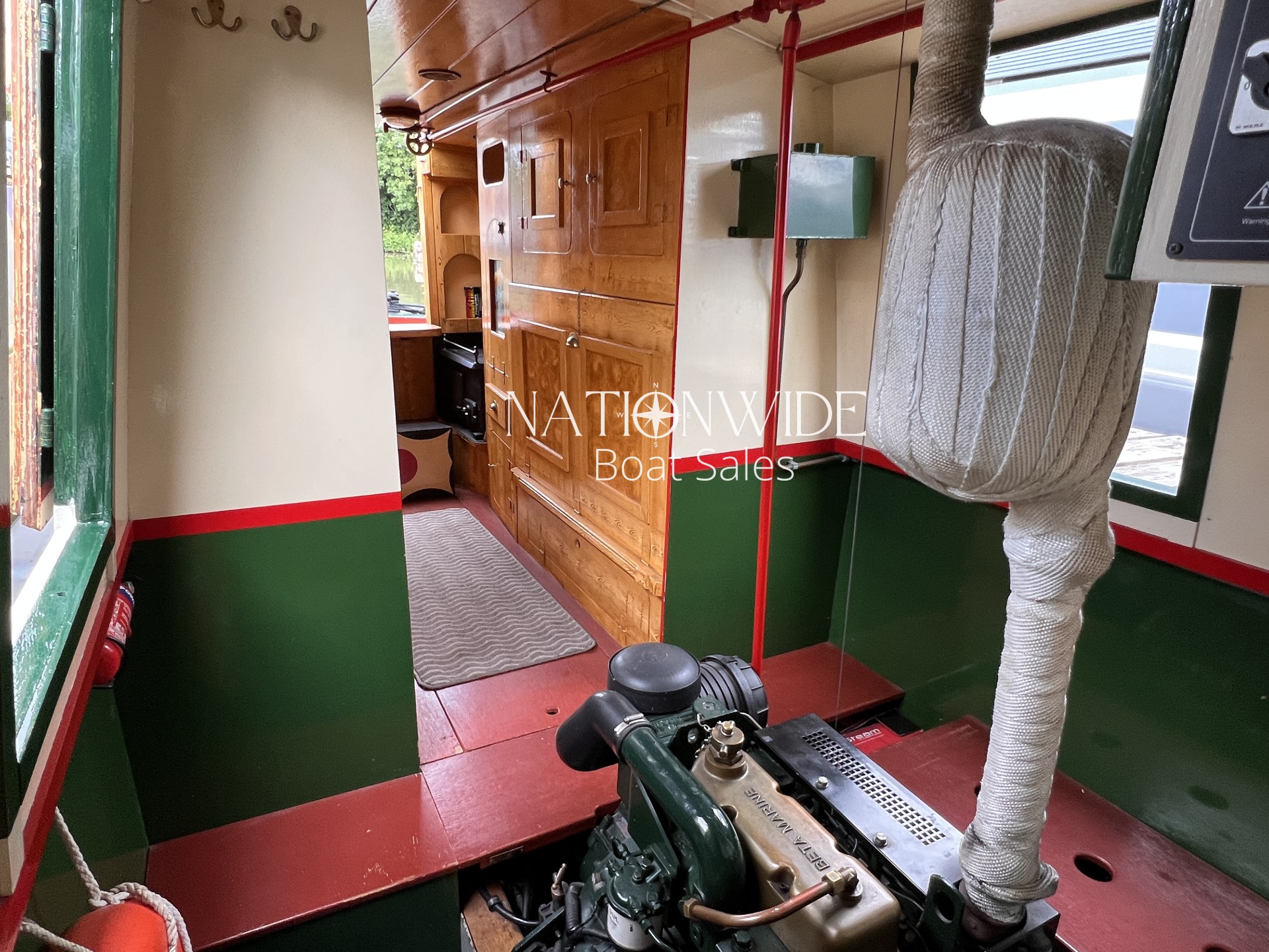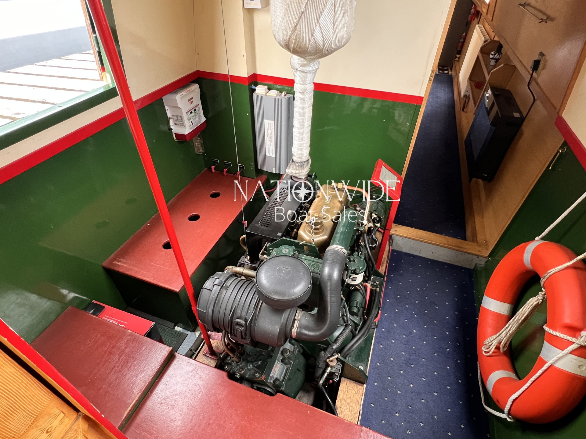 Heating and hot water are well catered for, with a calorifier, immersion, and back boiler feeding into two stoves – a Bubble diesel and a traditional Boatman – creating a cosy atmosphere for year-round cruising. Electrical systems include both 12v and 240v supplies, supported by a Sterling 1800w inverter and a bank of four leisure batteries (new in 2025), alongside a starter battery.