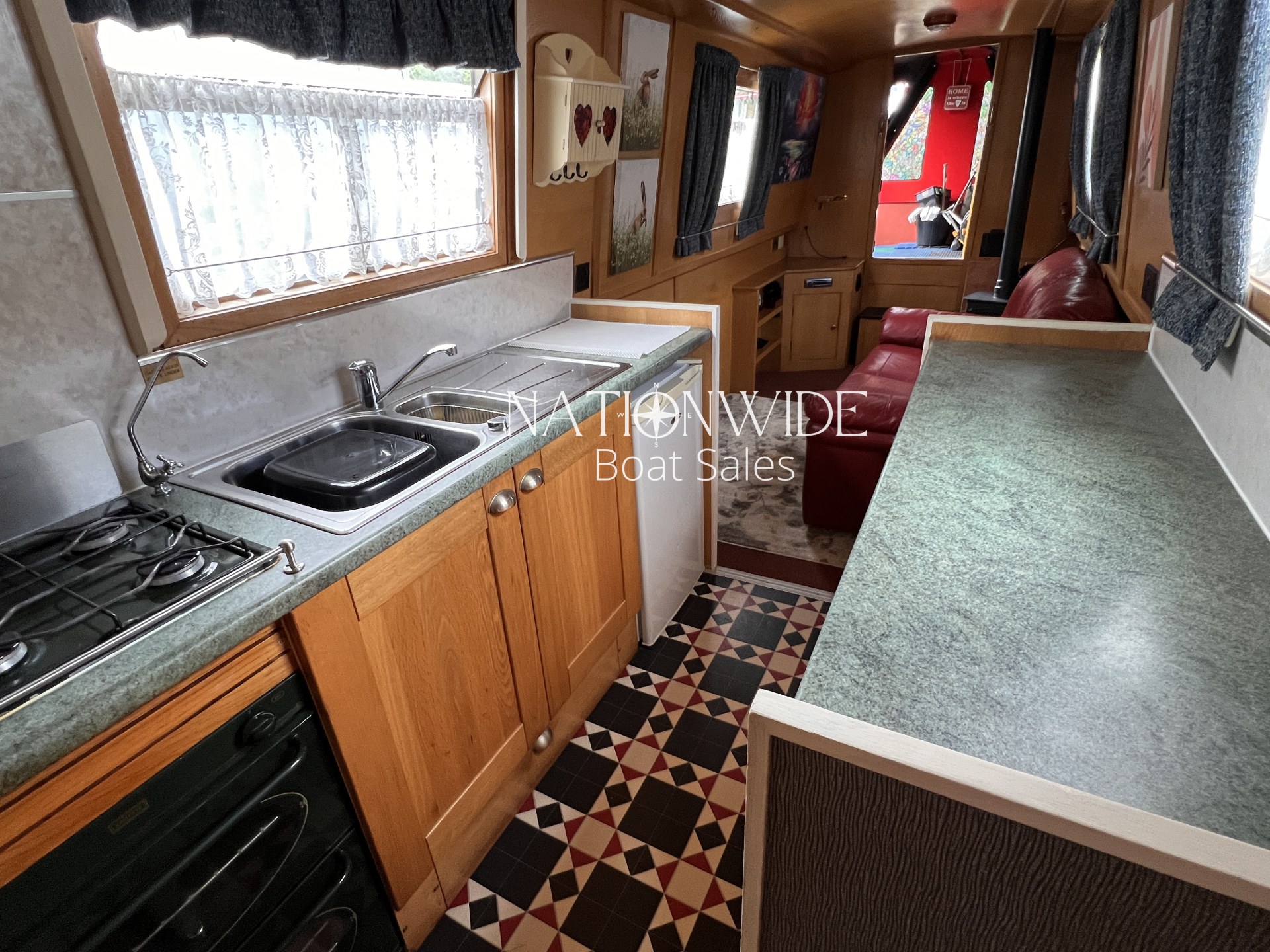 Accommodation is cleverly designed, with four berths in total. A fixed double bed provides comfortable sleeping quarters, while the pull-down double within the Boatman’s Cabin offers additional flexible space. The galley is practical yet welcoming, fitted with a Vanette cooker, Fridgemaster fridge, laminate worktops, and plenty of storage for longer stays aboard. The bathroom features a new Porta Potti toilet, shower, and vanity basin, ensuring comfort and convenience on every journey.