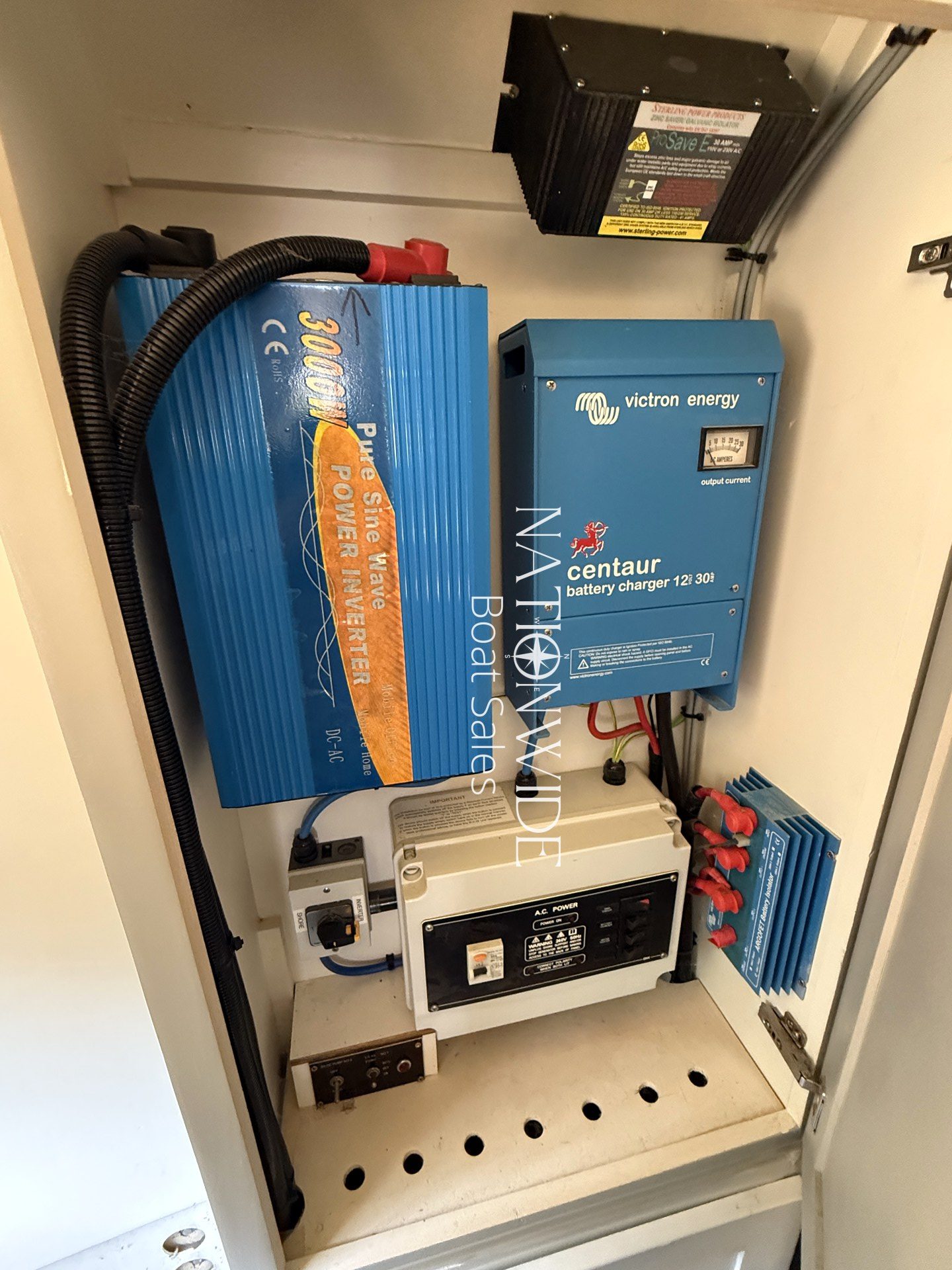 Electrically, Roobarb is well-equipped. The setup includes 12v and 240v systems, a 3kw pure sine wave inverter, Victron Centaur 30a charger, galvanic isolator, and two 300w solar panels to support off-grid life. Battery capacity includes one starter and four lead-carbon leisure batteries, offering long-lasting power.