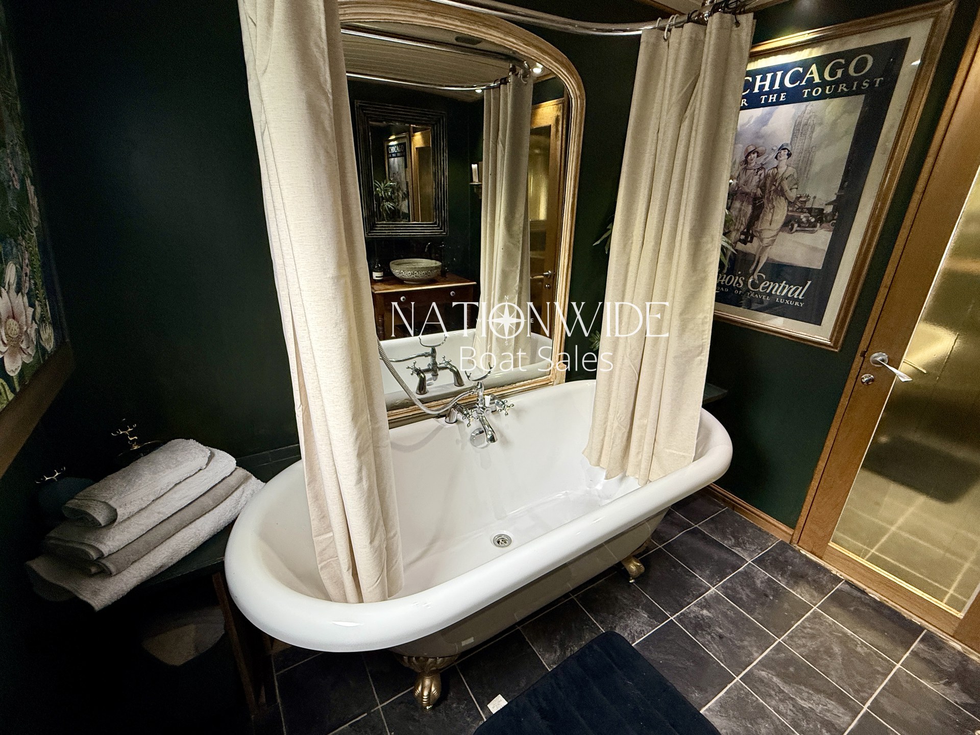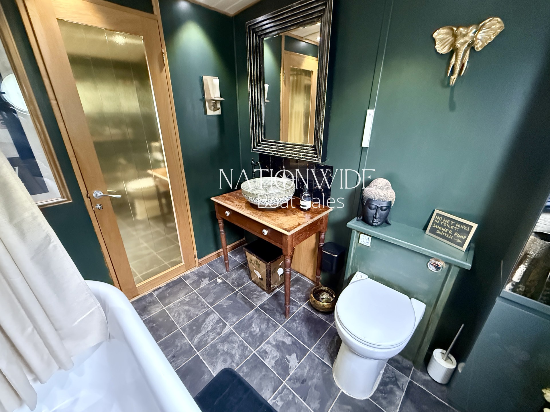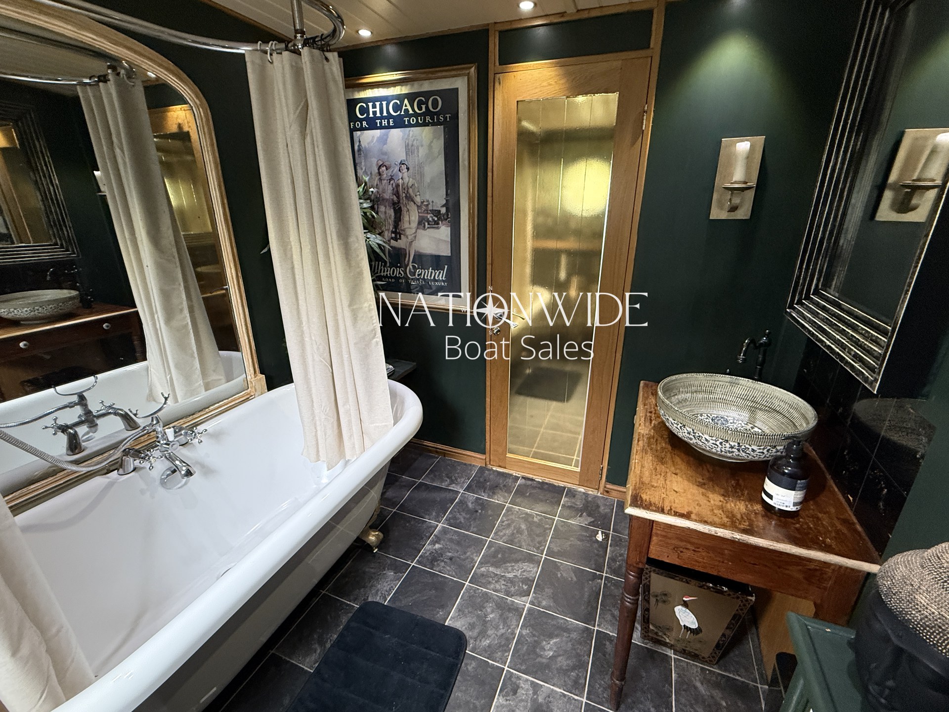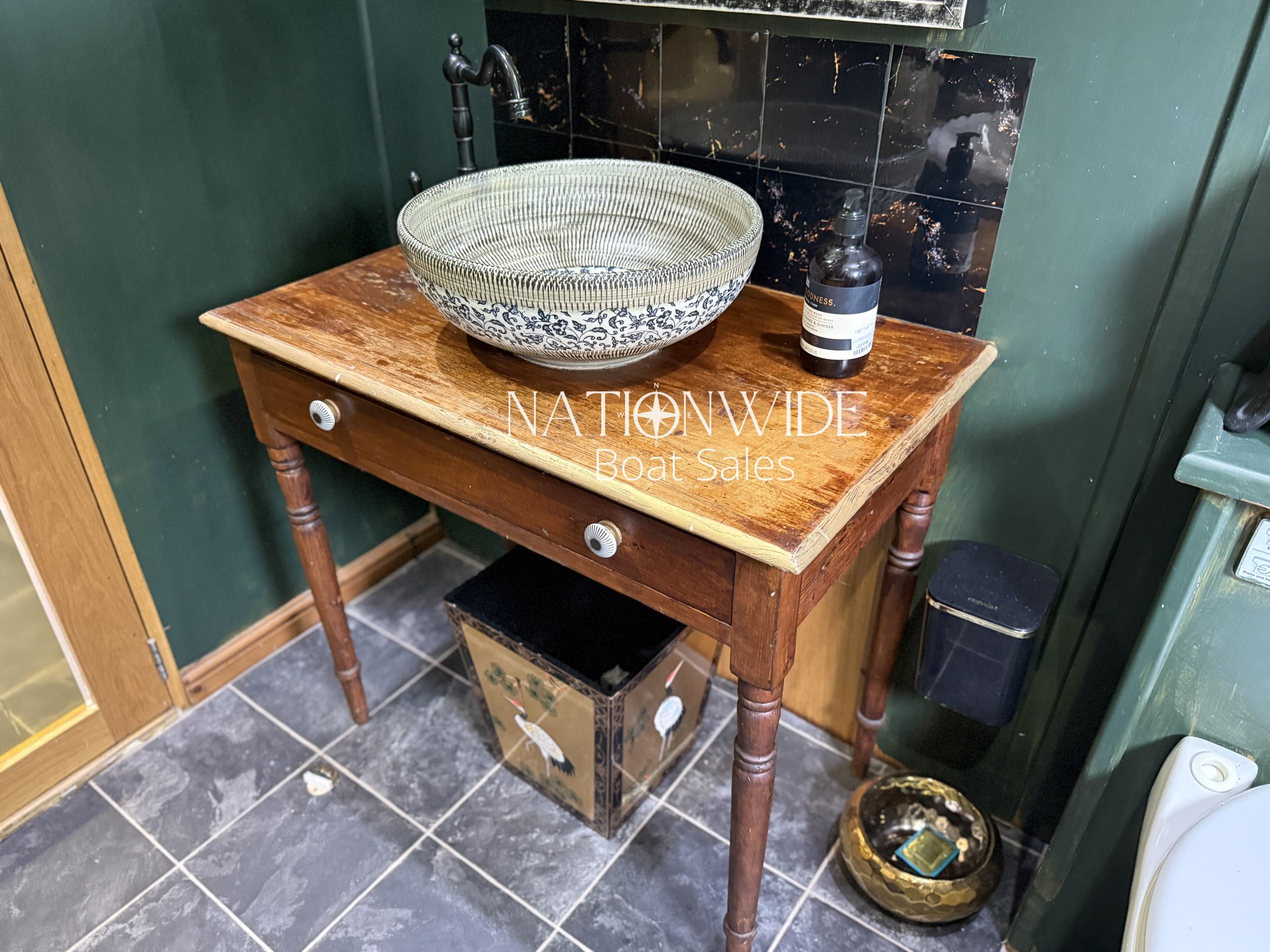 Her galley is fully equipped boasting a cooker with separate hob, separate fridge and freezer (12v), Zanussi washing machine, and even a dishwasher, all framed by gorgeous oak worktops.