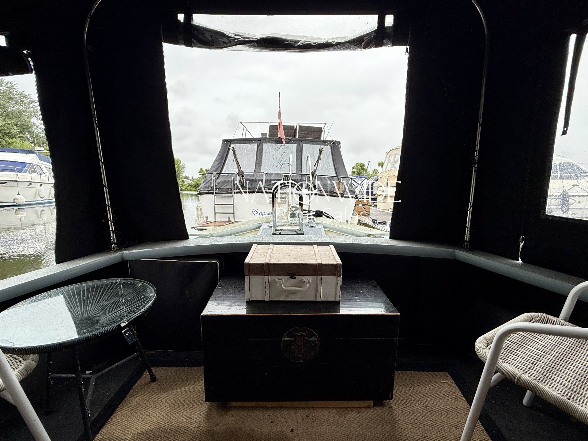 Additional features include a side hatch for ventilation, pram and cratch covers, and the possibility of transferring a marina mooring near Staines-upon-Thames (approx. £900/month), offering convenient access to London and scenic riverside surroundings.