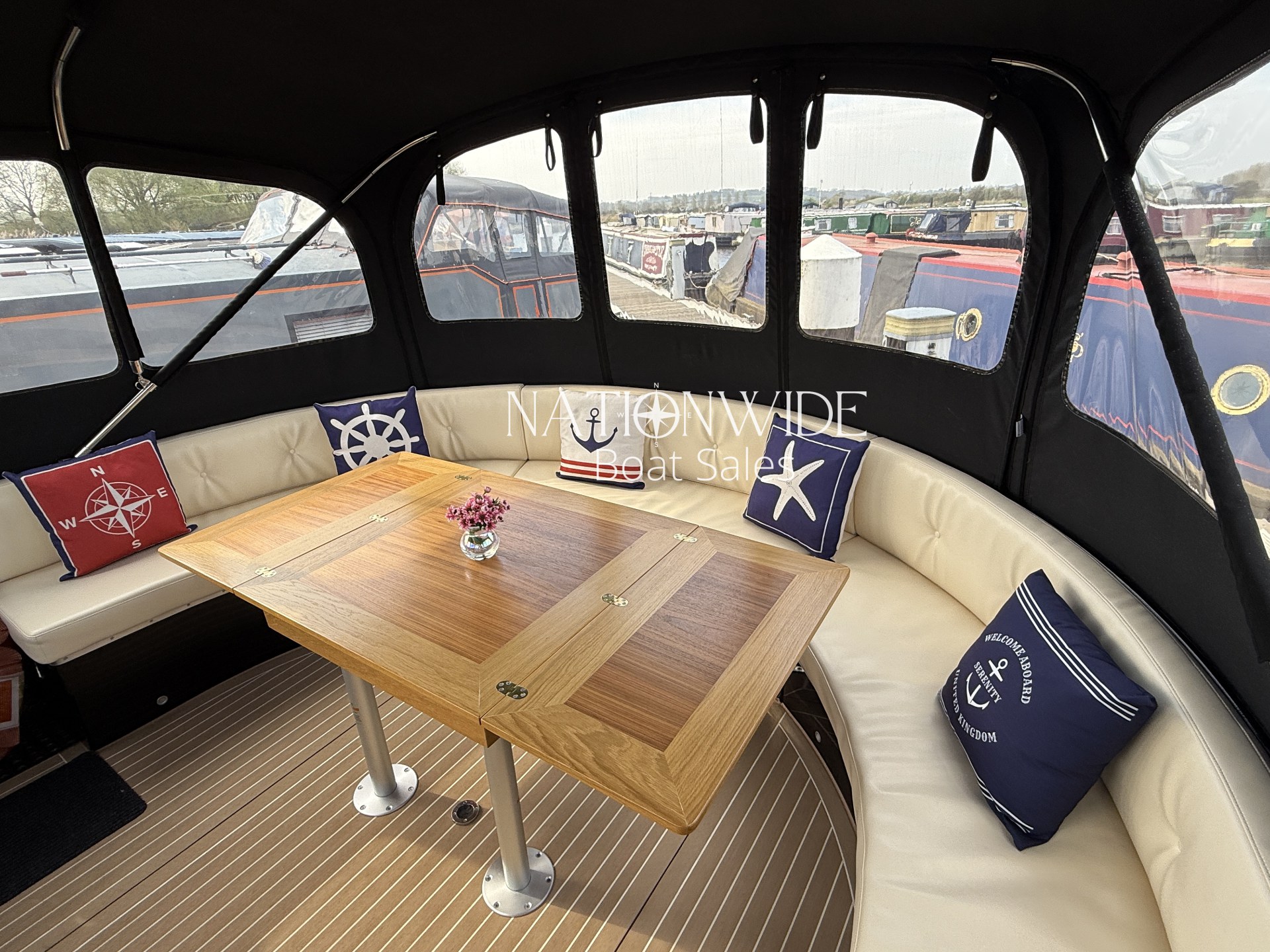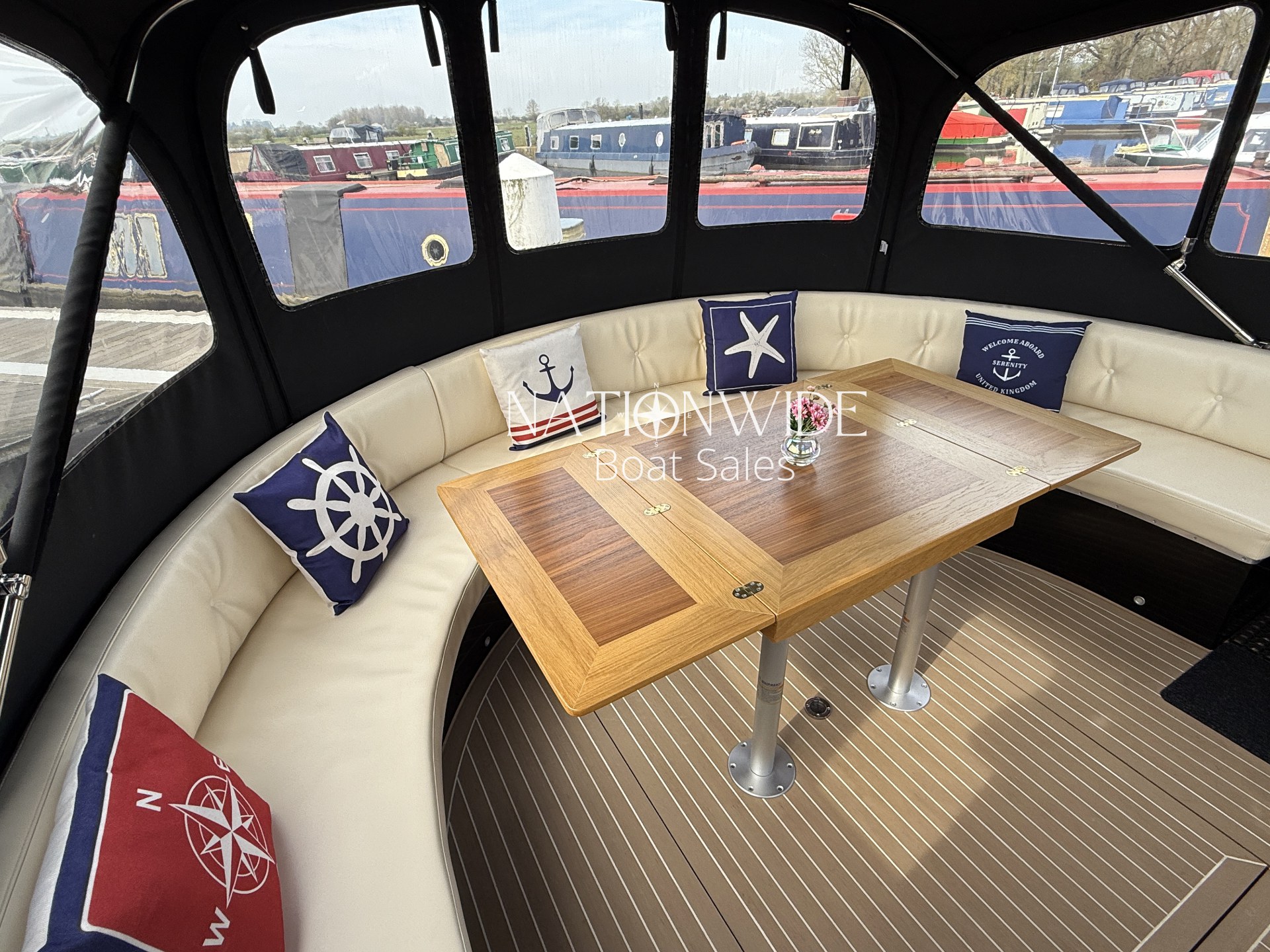 Extend your living space with Bow & Stern covers from Titan Boat Canopies and enjoy the synthetic teak flooring at the bow and stern. The double-glazed portholes and windows further enhance the vessel’s luxury.