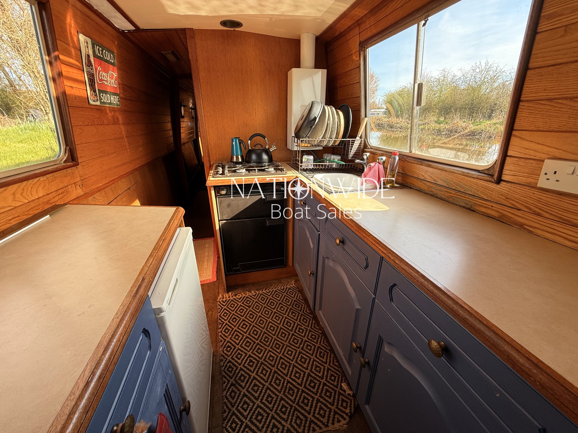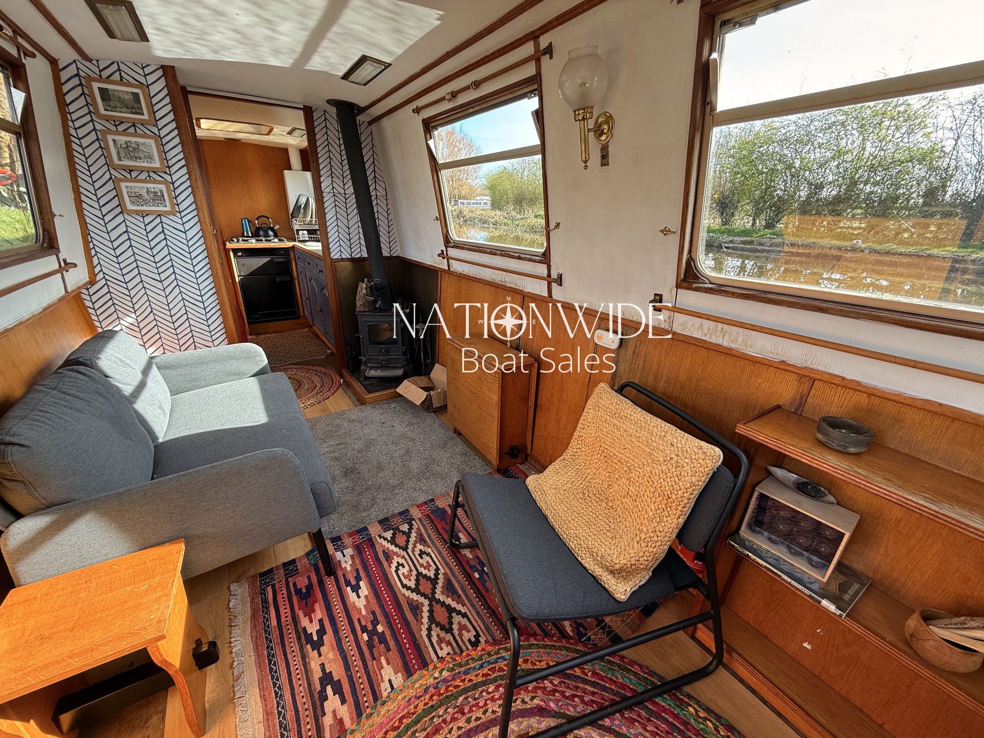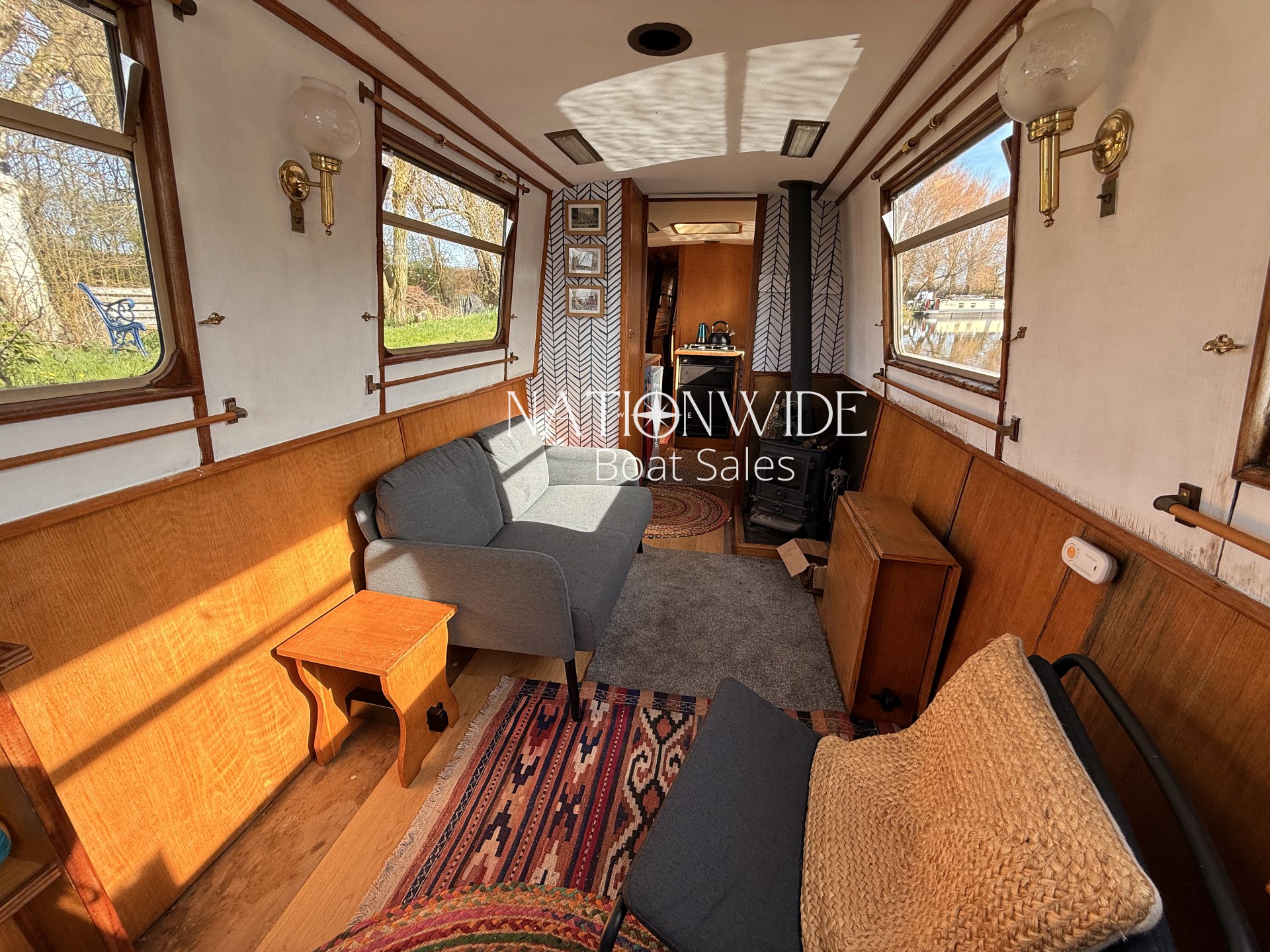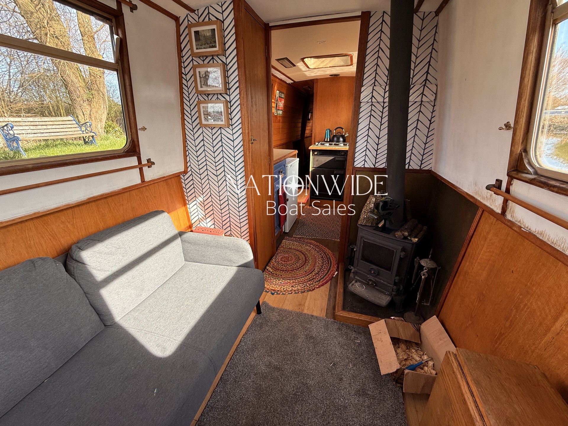 Introducing Sirius, a wonderful 60ft Trad built by Cheshire Narrowboats. Propulsion is powered by a reliable Lister engine paired with a PRM gearbox, all securely housed within the engine room. Warmth and hot water are efficiently delivered by the Morco gas boiler and a charming solid fuel stove situated in the saloon. The boat’s electrical system includes a 12v and 240v setup complemented by a Sterling Marine Power inverter, alongside 1 starter and 3 leisure batteries. The well-appointed galley features a Rotaflow oven with a Valor gas hob and an LEC fridge. Accommodations are thoughtfully designed for four, with a fixed double cross-bed in the central cabin and a double bed to the stern which converts into two benches with a table. The off-corridor bathroom is equipped with a Pump out toilet, a hip bath with an overhead shower, and a vanity basin.
