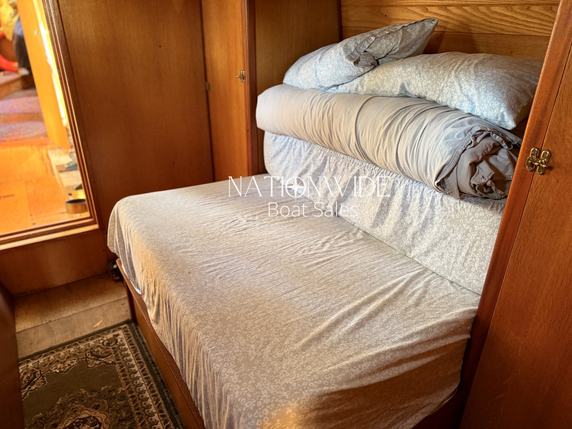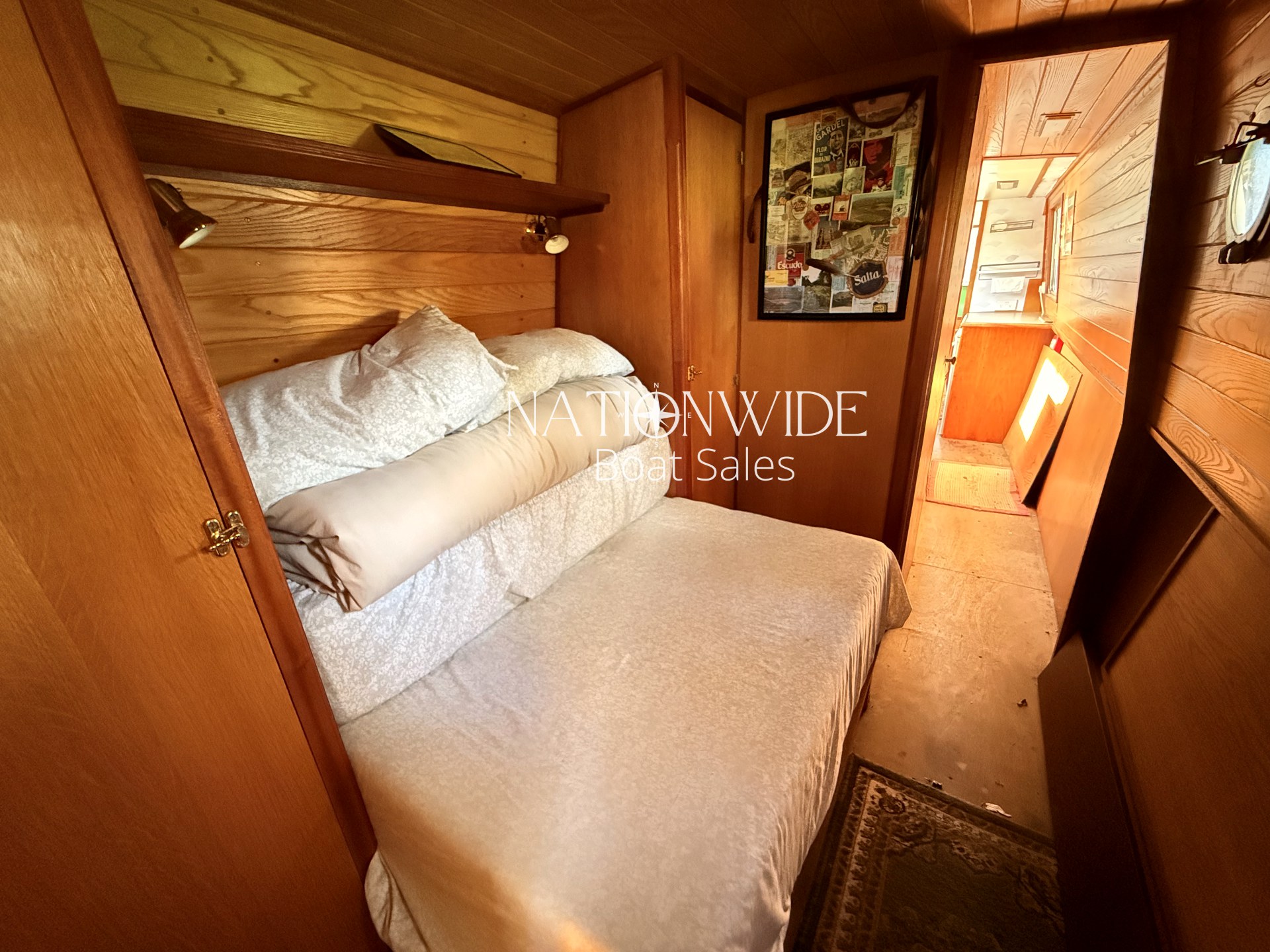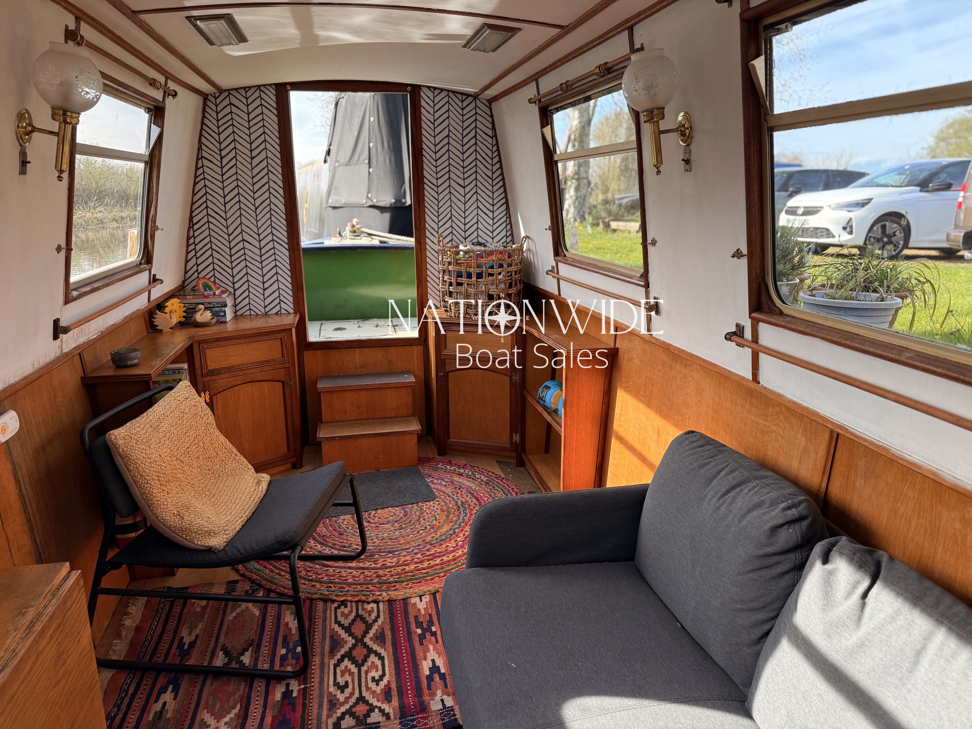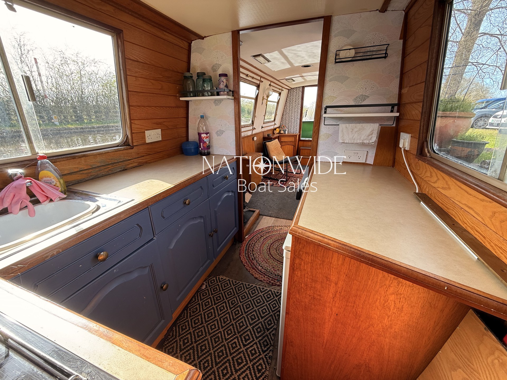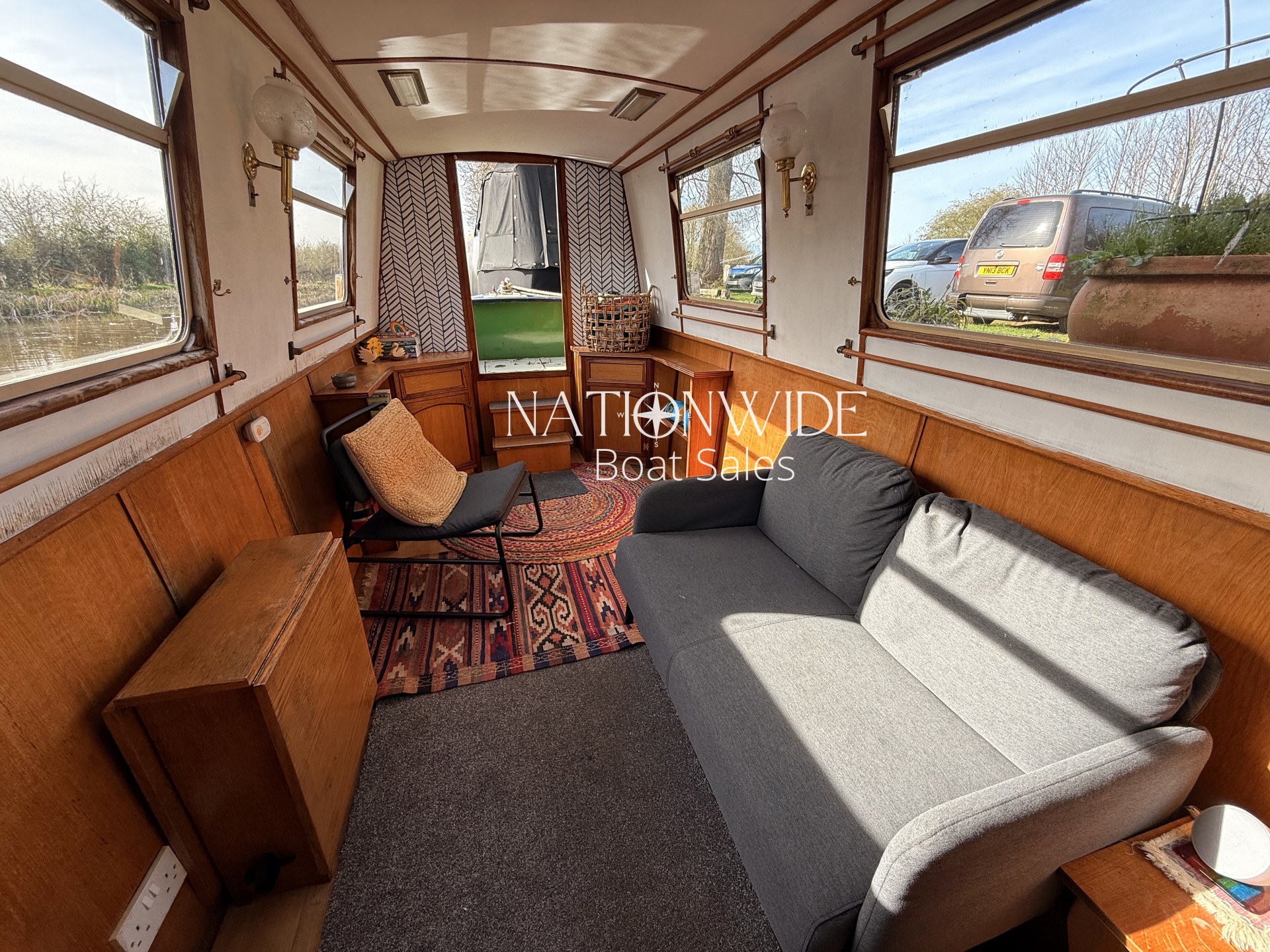 Introducing Sirius, a wonderful 60ft Trad built by Cheshire Narrowboats. Propulsion is powered by a reliable Lister engine paired with a PRM gearbox, all securely housed within the engine room. Warmth and hot water are efficiently delivered by the Morco gas boiler and a charming solid fuel stove situated in the saloon. The boat’s electrical system includes a 12v and 240v setup complemented by a Sterling Marine Power inverter, alongside 1 starter and 3 leisure batteries. The well-appointed galley features a Rotaflow oven with a Valor gas hob and an LEC fridge. Accommodations are thoughtfully designed for four, with a fixed double cross-bed in the central cabin and a double bed to the stern which converts into two benches with a table. The off-corridor bathroom is equipped with a Pump out toilet, a hip bath with an overhead shower, and a vanity basin.