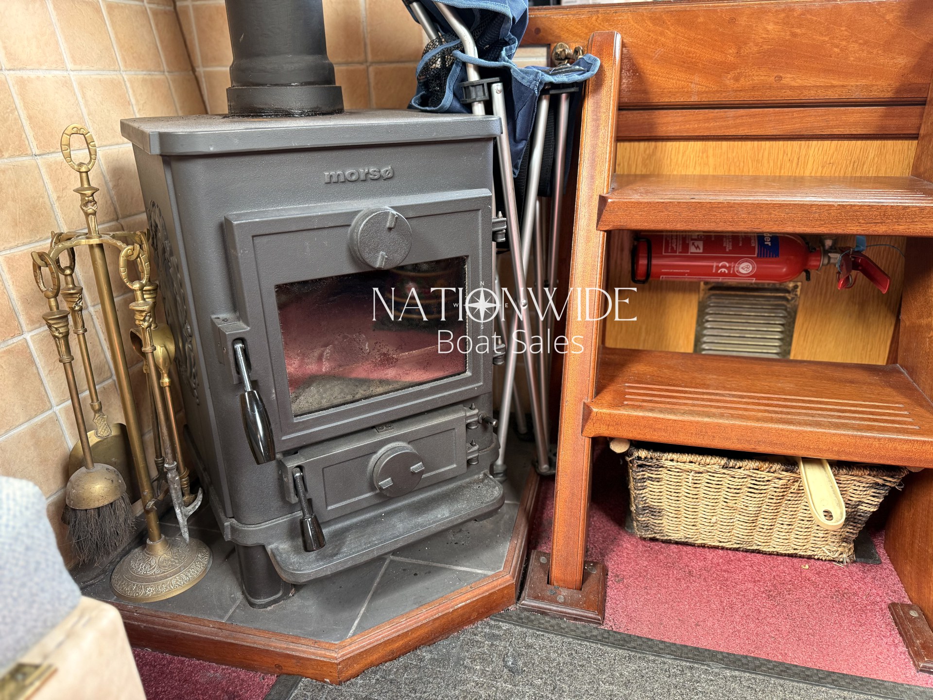 Snowbow is powered by a reliable Beta 43hp engine, with a PRM gearbox and keel cooling system. She’s also equipped with a Morso Squirrel stove and Eberspacher central heating, ensuring comfort even through colder months. Hot water is supplied via calorifier, immersion, and the Eberspacher system.