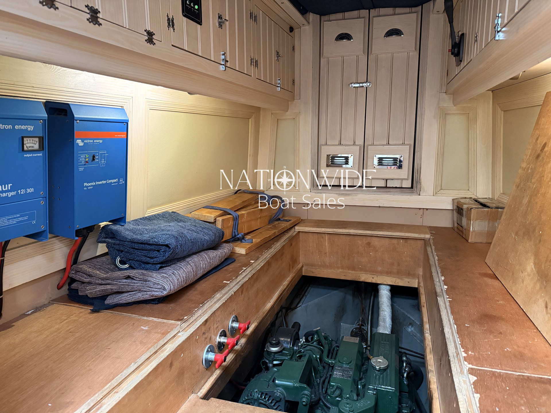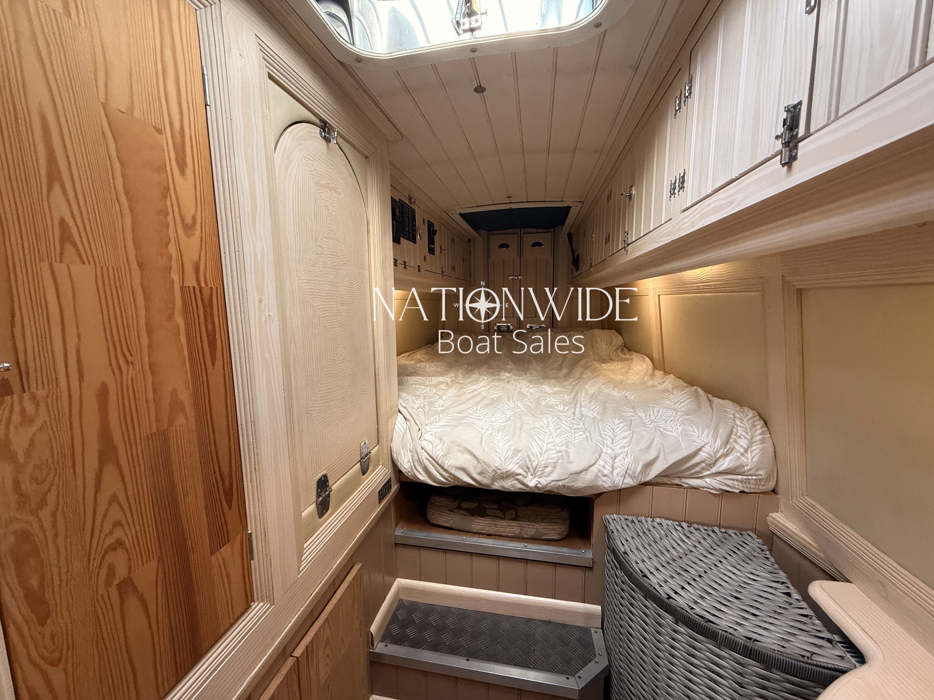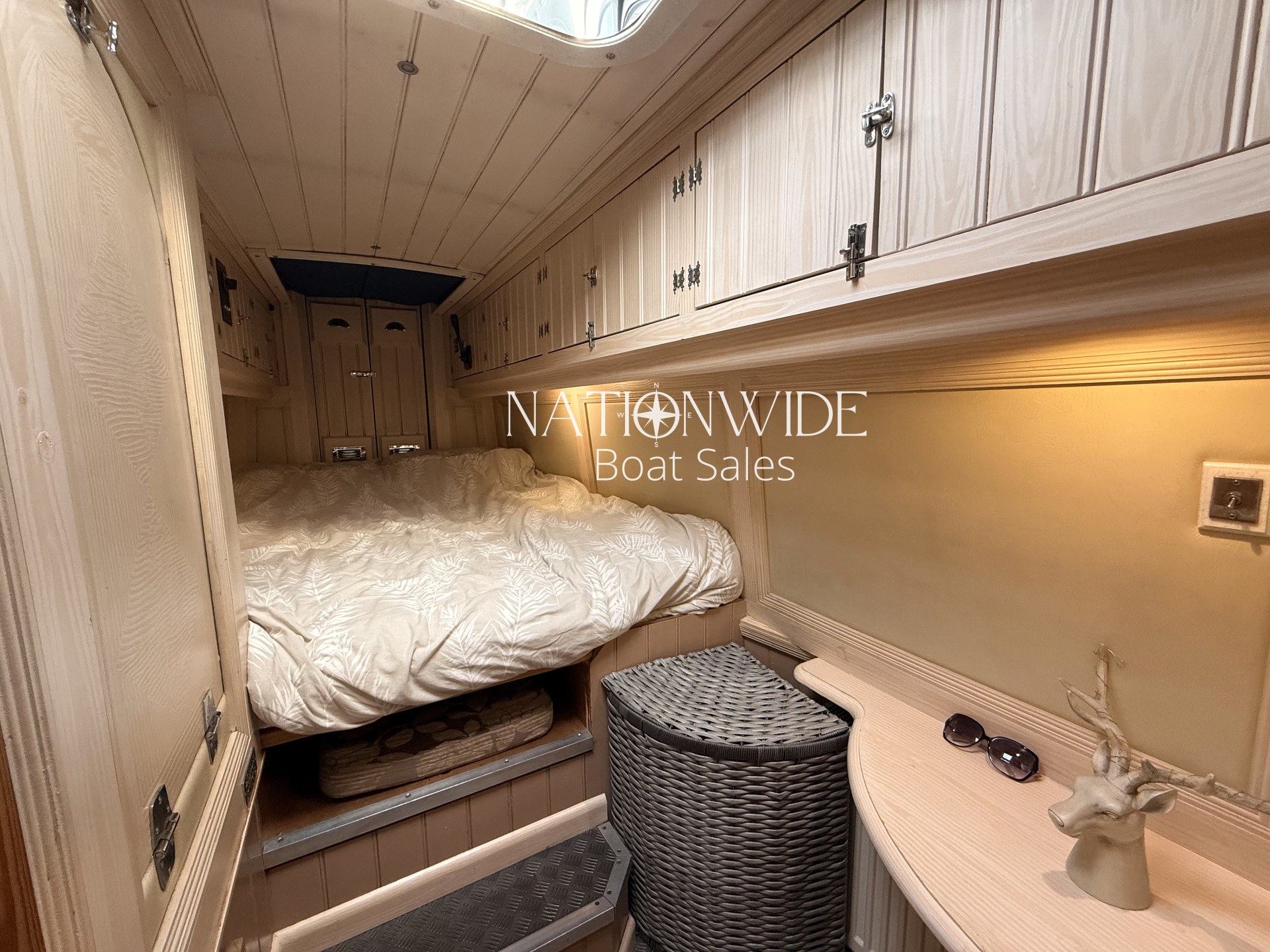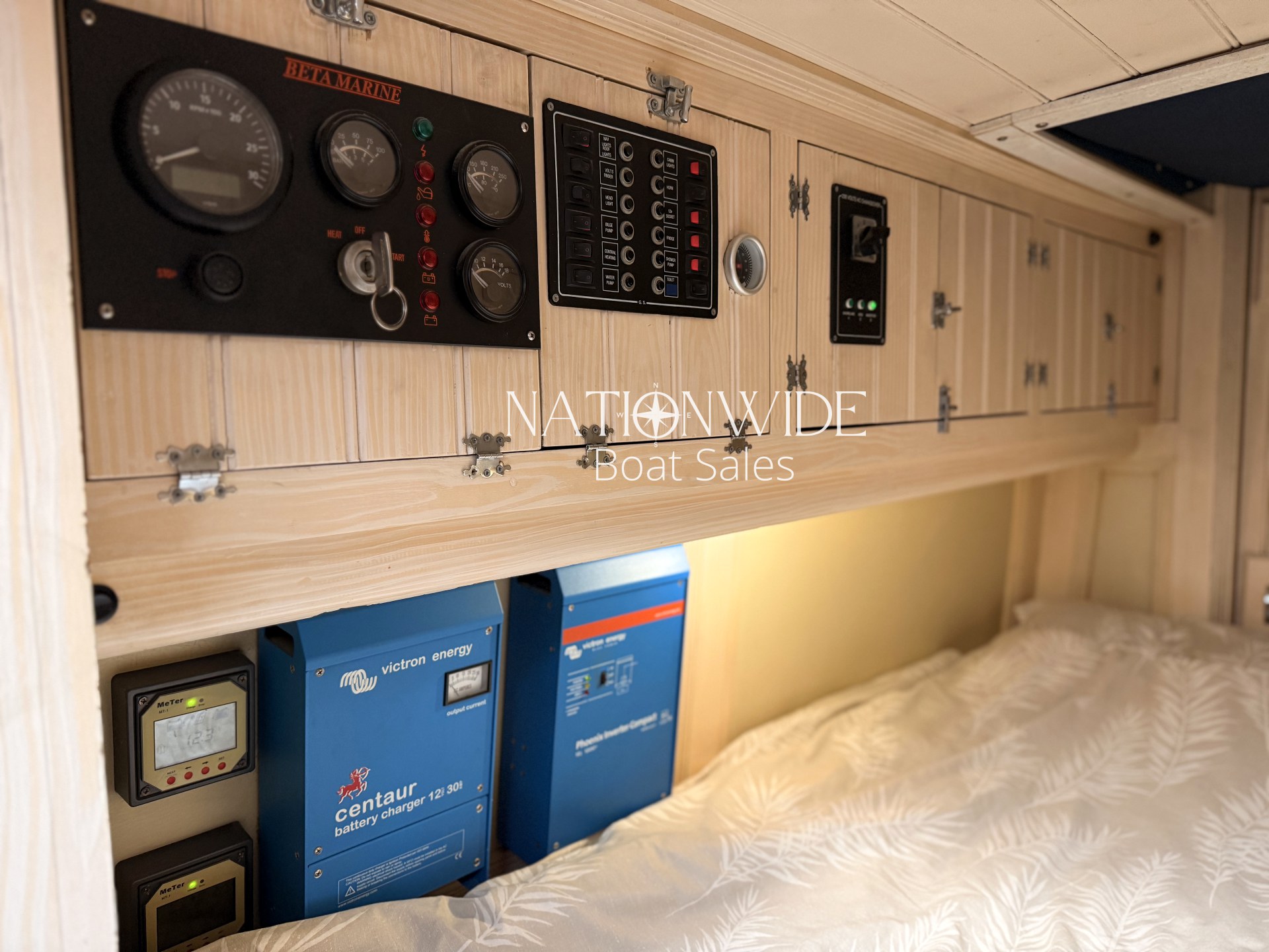 Powered by a dependable Beta 50hp engine with PRM 150 gearbox, The Jammy Dodger delivers reliable cruising performance. Her steel 10/6/4 hull was last blacked in 2022, and the engine serviced in August 2023. Additional features include a cratch cover, four side hatches, and four Houdini hatches, all contributing to light, ventilation, and practical use of space.