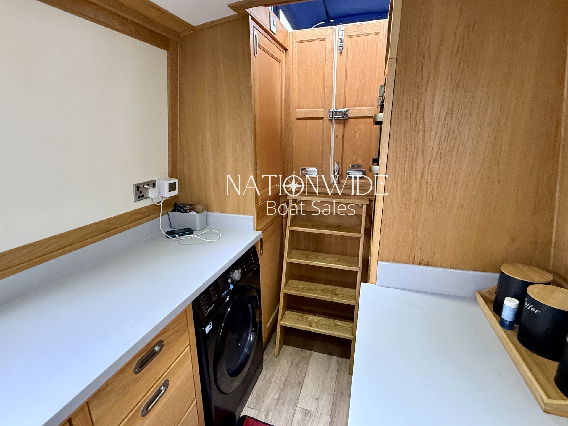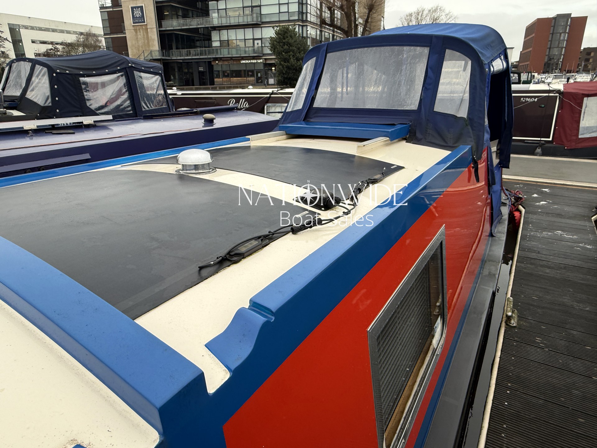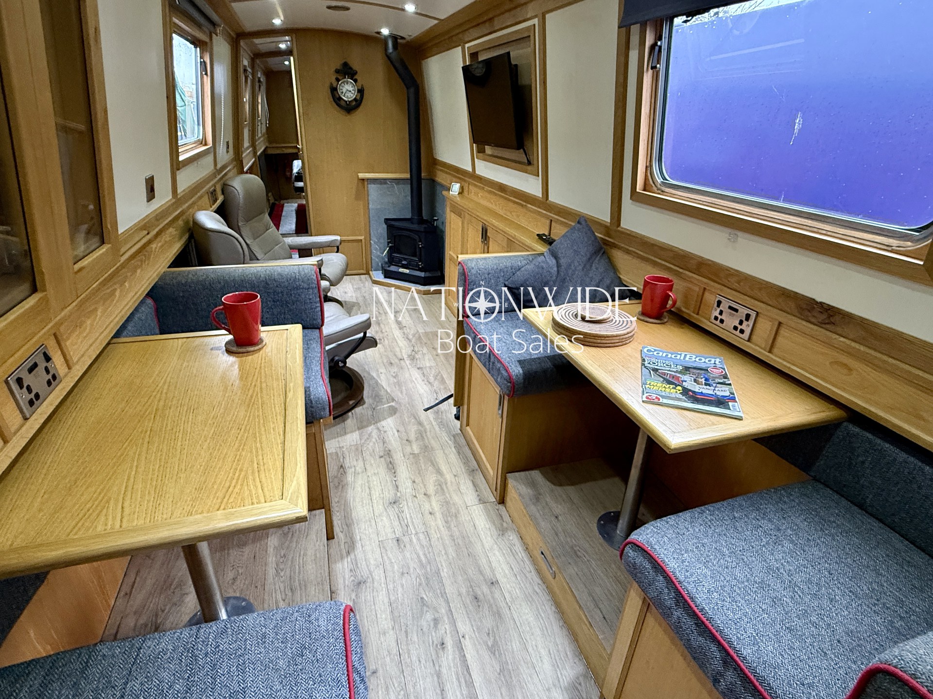 Powered by a smooth and capable Beta Marine 43hp engine with a hospital silencer and a Vetus 75 KGF bow thruster, Vanguard handles easily whether you’re navigating tight marinas or open stretches of canal. A generous 200-litre fuel tank and flat-bottomed 10/6/4 steel hull provide both range and stability, making her equally suited to long-term cruising or comfortable mooring life