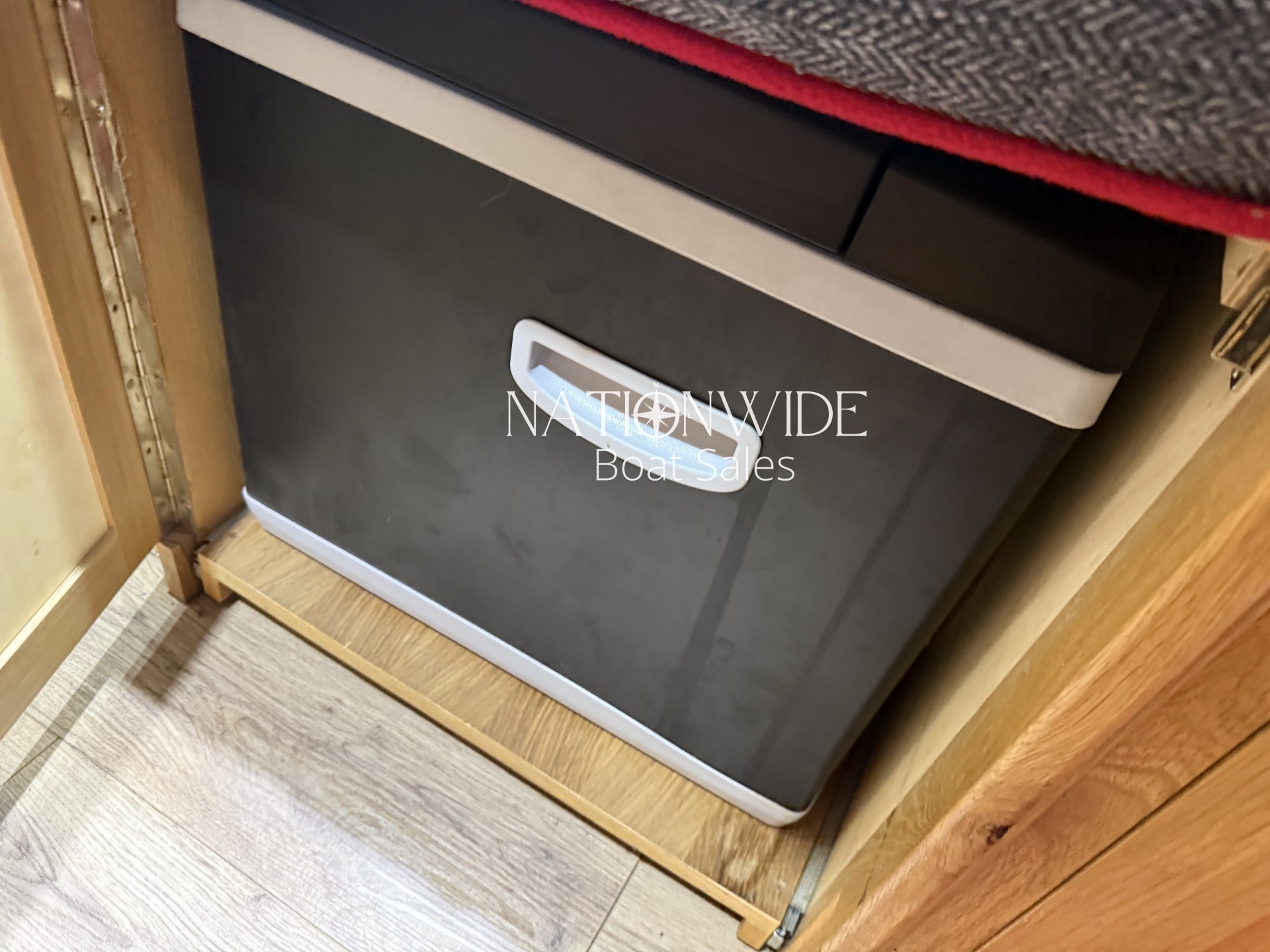Onboard, the layout has been designed for practical living without compromise. The oak-finish luxury vinyl flooring, spray-foam insulation and painted ply cabin sides give a bright, warm and modern interior. The galley is exceptionally well equipped with a Thetford cooker and hob, shoreline fridge, wine storage and even an Indesit washer/dryer, making day-to-day life on board refreshingly effortless. Also benefitting from a freezer and cool box under the dinette seating. With sleeping arrangements in place for four comprising of a fixed double bed which can extend and two single dinettes which convert into two single beds.