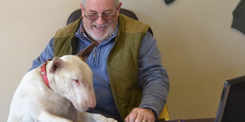 Our Team dog learning the ropes with a member of the team. Its a dogs life.